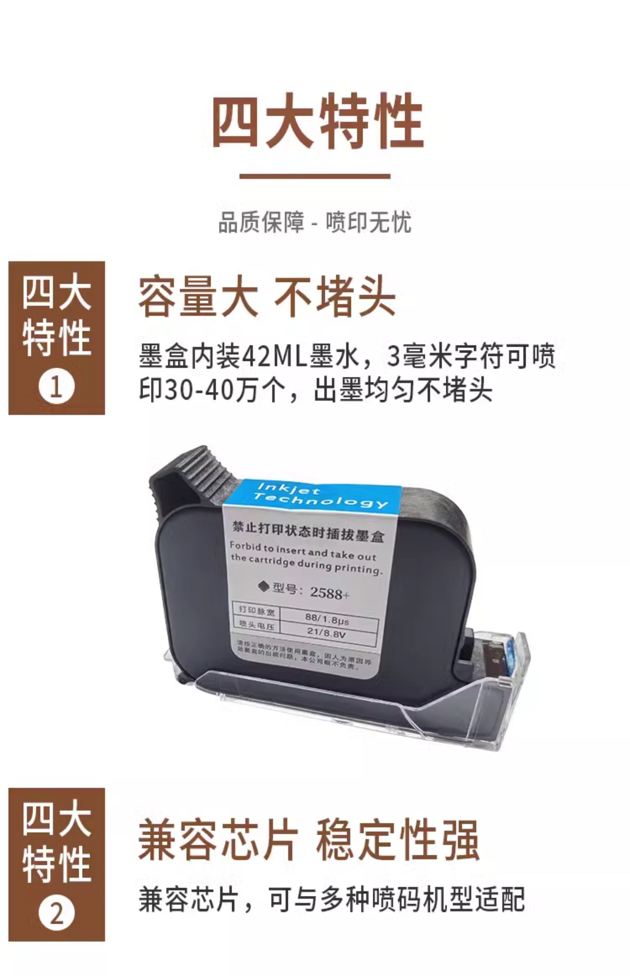 Sort by color Original 2588+ or 2588+M ink cartridge, black, high adhesion and quick drying,Original ZM2588+ or 2588G ink cartridge black high adhesion quick drying,Original SP2588+ ink cartridge black high adhesion quick drying,Original M127K+ ink cartridge black high adhesion quick drying,Original W3T10B-2590 ink cartridge, black, high adhesion, quick drying, dedicated for encryption machines,W3T10B- HY2590 ink cartridge black high adhesion quick drying,Original JS10M ink cartridge black high adhesion quick drying,Original JS12M ink cartridge black high adhesion quick drying,Original JW11 water-based ink cartridge black,Original JS21M ink cartridge white high adhesion quick drying,Original 1704K/2790K ink cartridge black high adhesion quick drying,Original IQ800 ink cartridge black high adhesion quick drying,Original F0L13B ink cartridge black high adhesion quick drying,Original IQ314 ink cartridge white high adhesion quick drying,Original 53S+/531S ink cartridge black high adhesion quick drying,Original 53SW ink cartridge white high adhesion quick drying,Original G1309S+ ink cartridge black 25.4mm large nozzle,Domestic 308SV ink cartridge black 25.4mm large nozzle,Universal ink cartridge black, high adhesion and quick drying, suitable for non-encrypted machines,Universal ink cartridge 25.4mm nozzle, red, blue, green, yellow and white, high adhesion and quick drying, please note the color when placing an order,Universal ink cartridge 12.7mm nozzle, red, blue, green and yellow, high adhesion and quick drying, please note the color when placing an order
