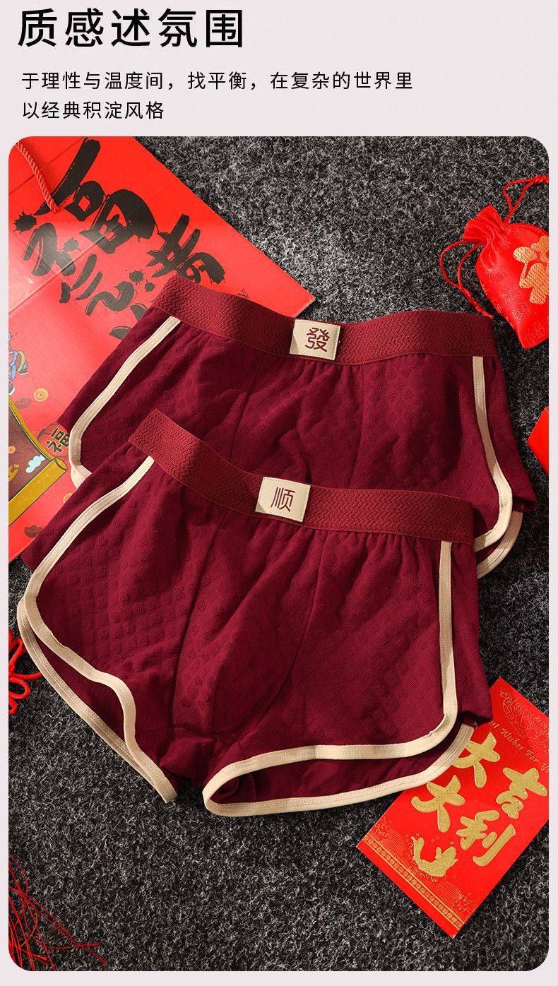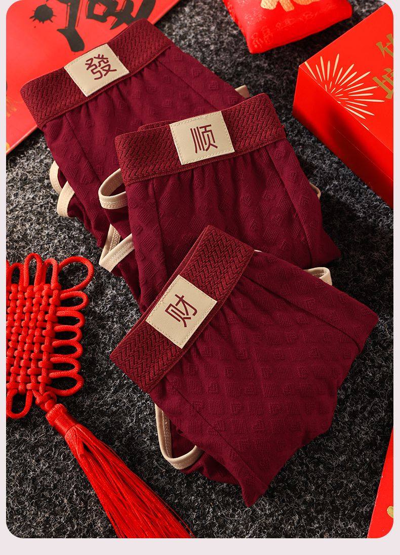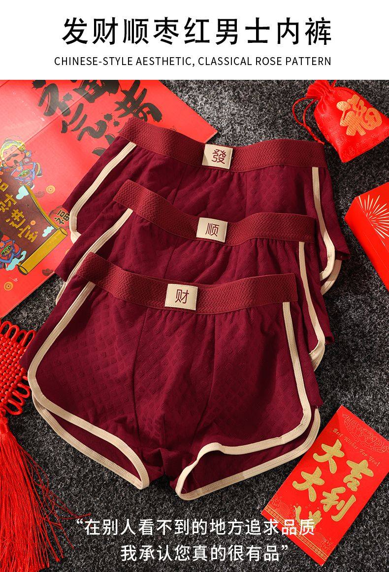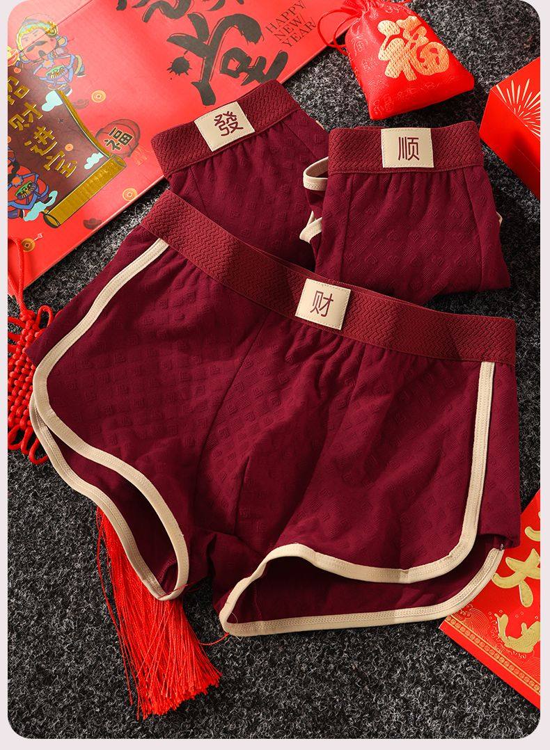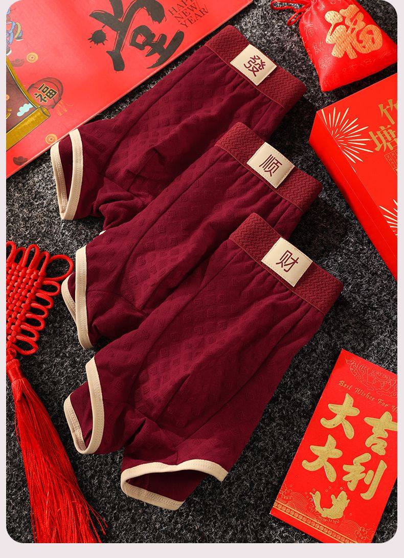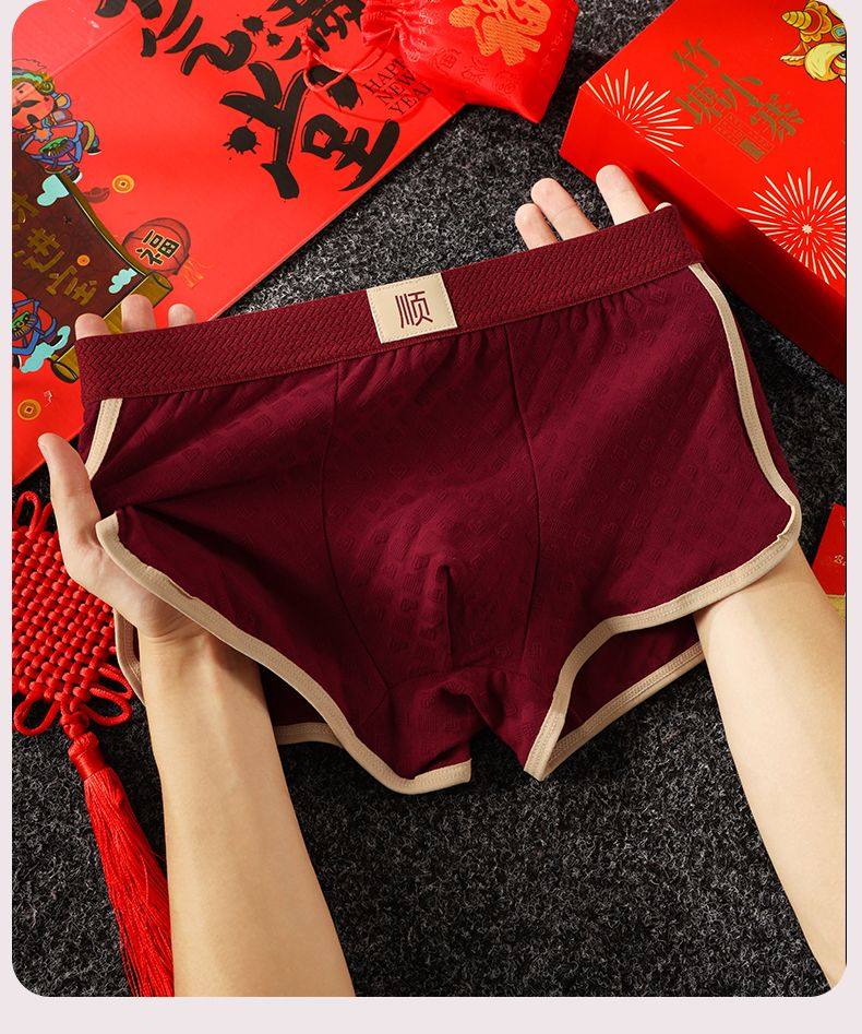 Men's Zodiac Year Underwear, Wedding Skin-Friendly Breathable Red Mid-Waist Comfortable Boxer Briefs, Men's Boxer Shorts