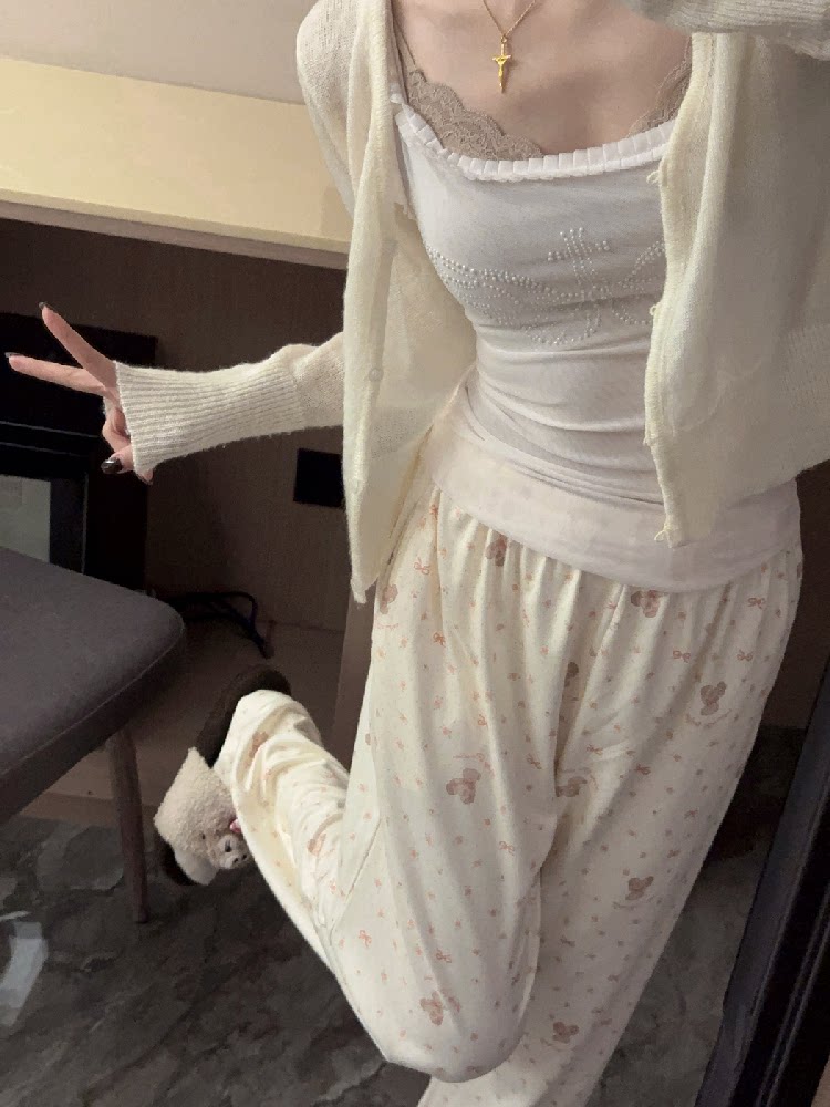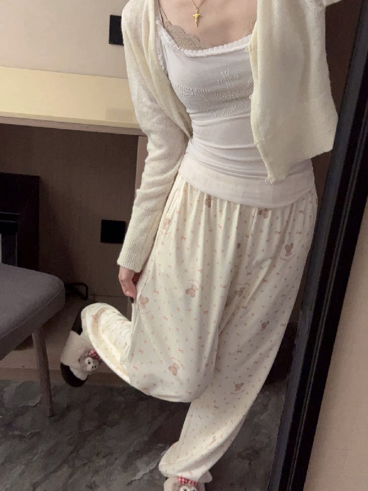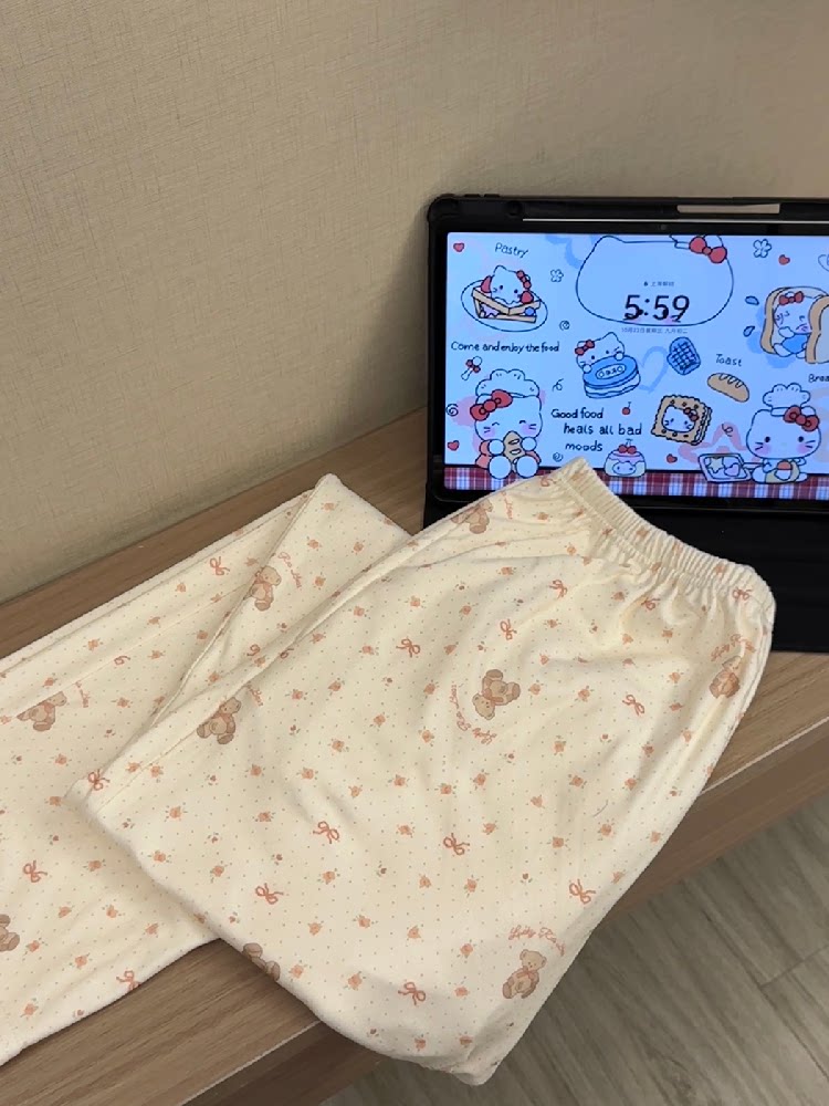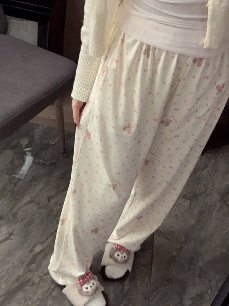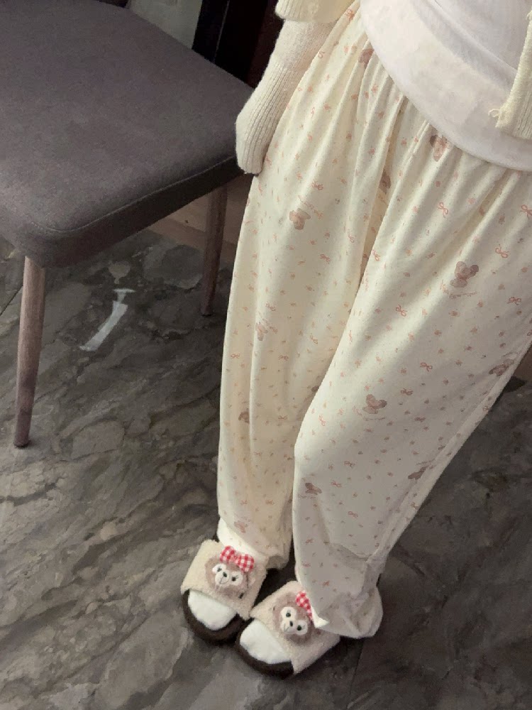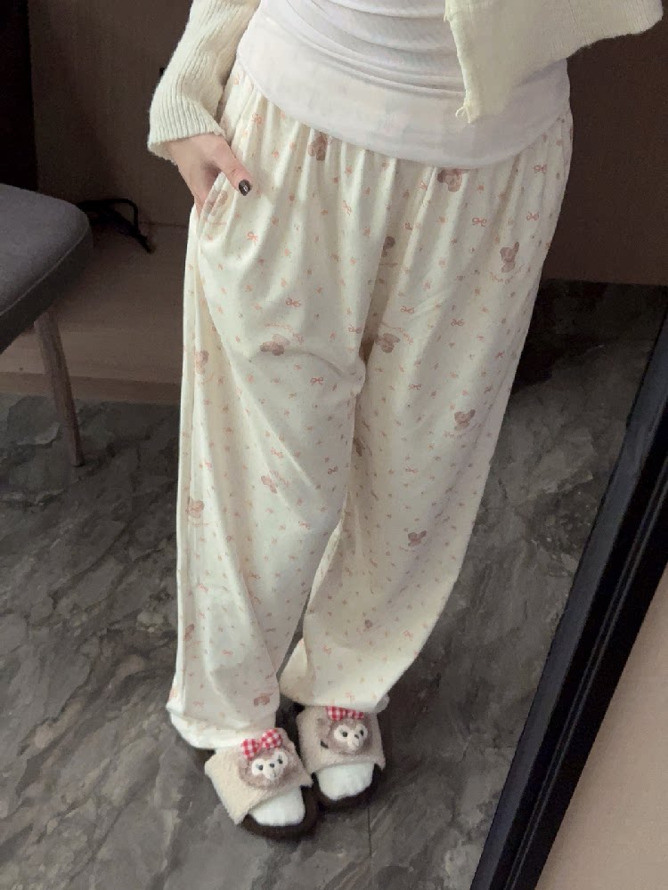 Bear pajama pants for women in autumn and winter thick German velvet soft and waxy home pants loose casual pockets can be worn outside walking pants