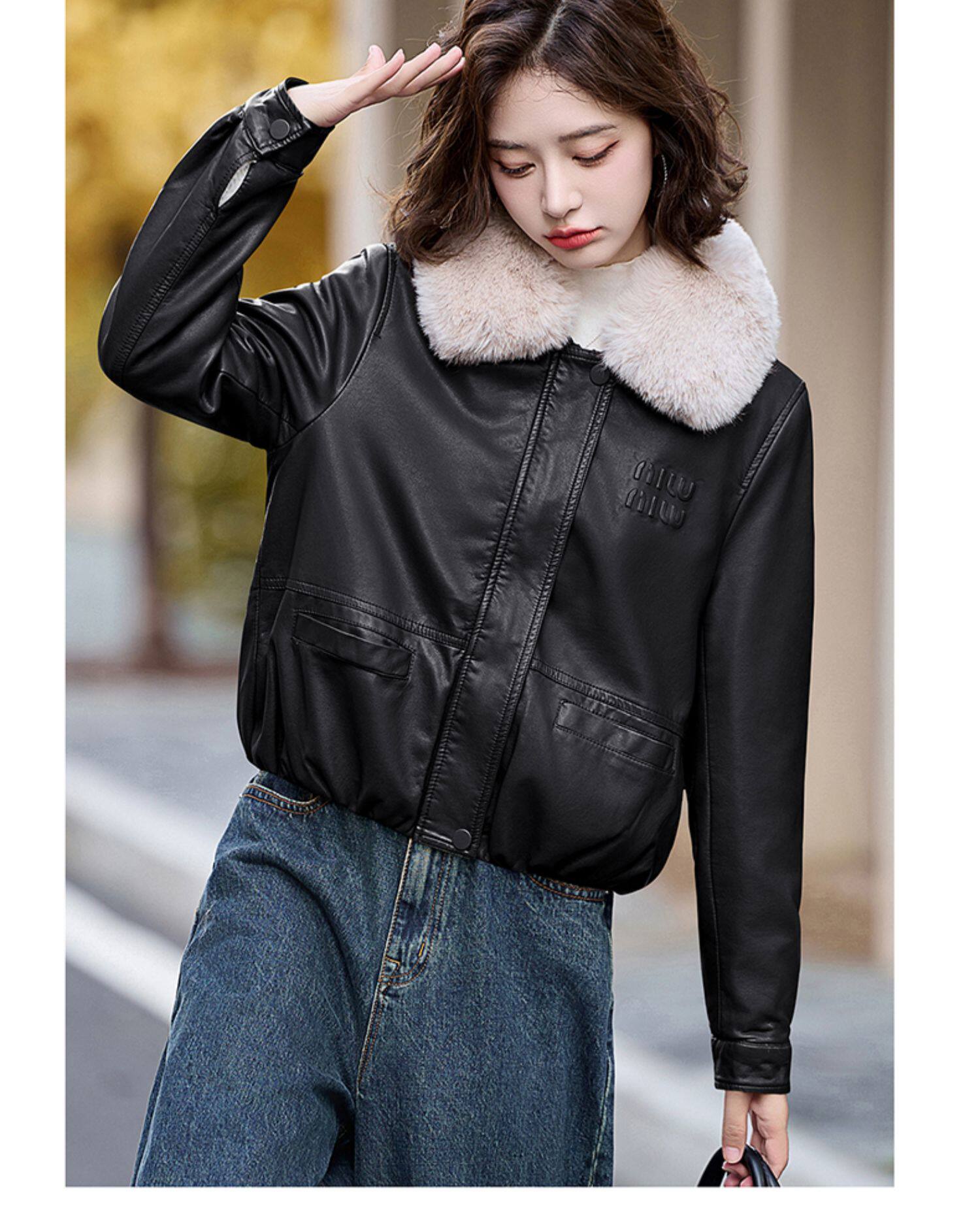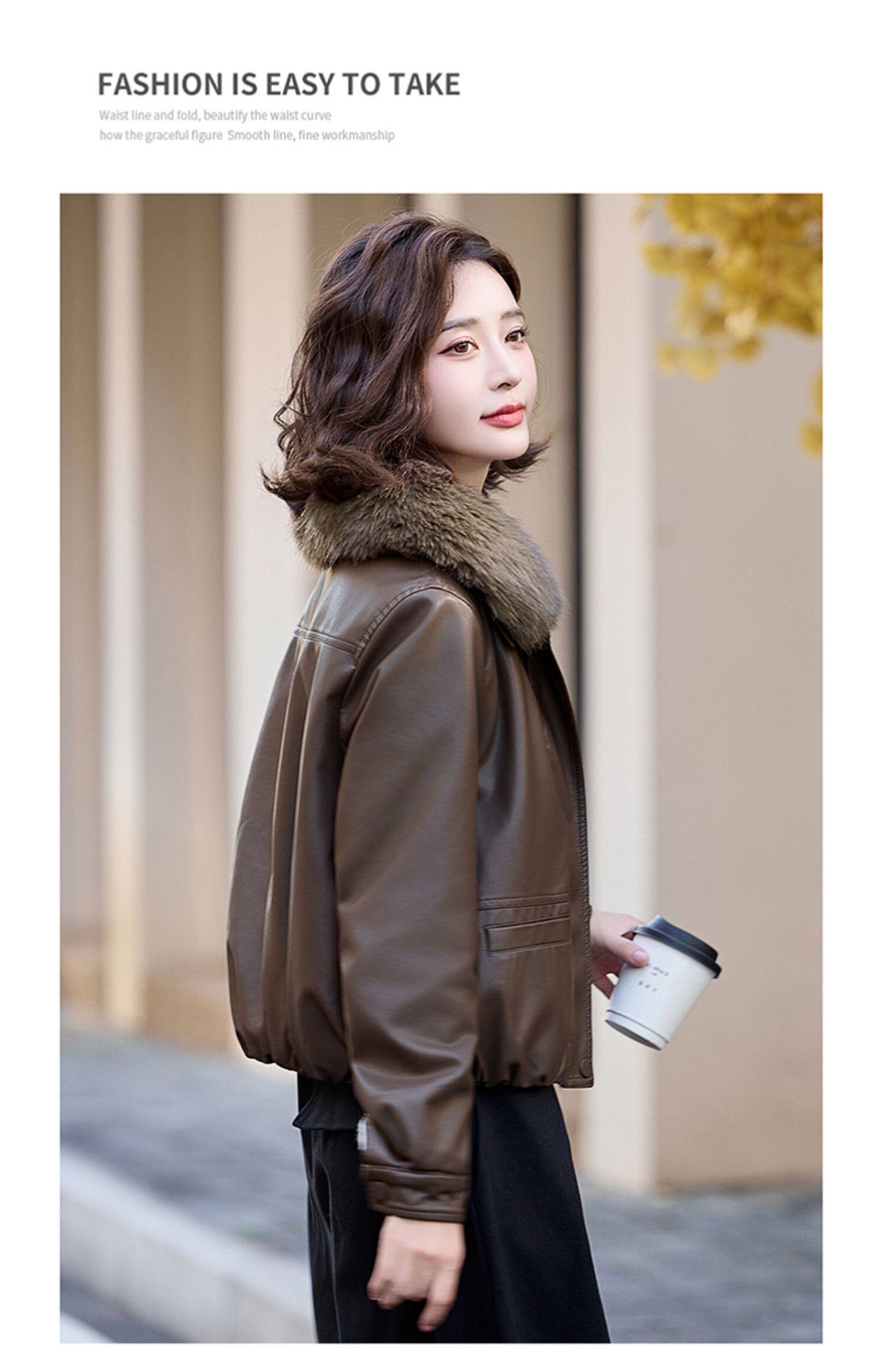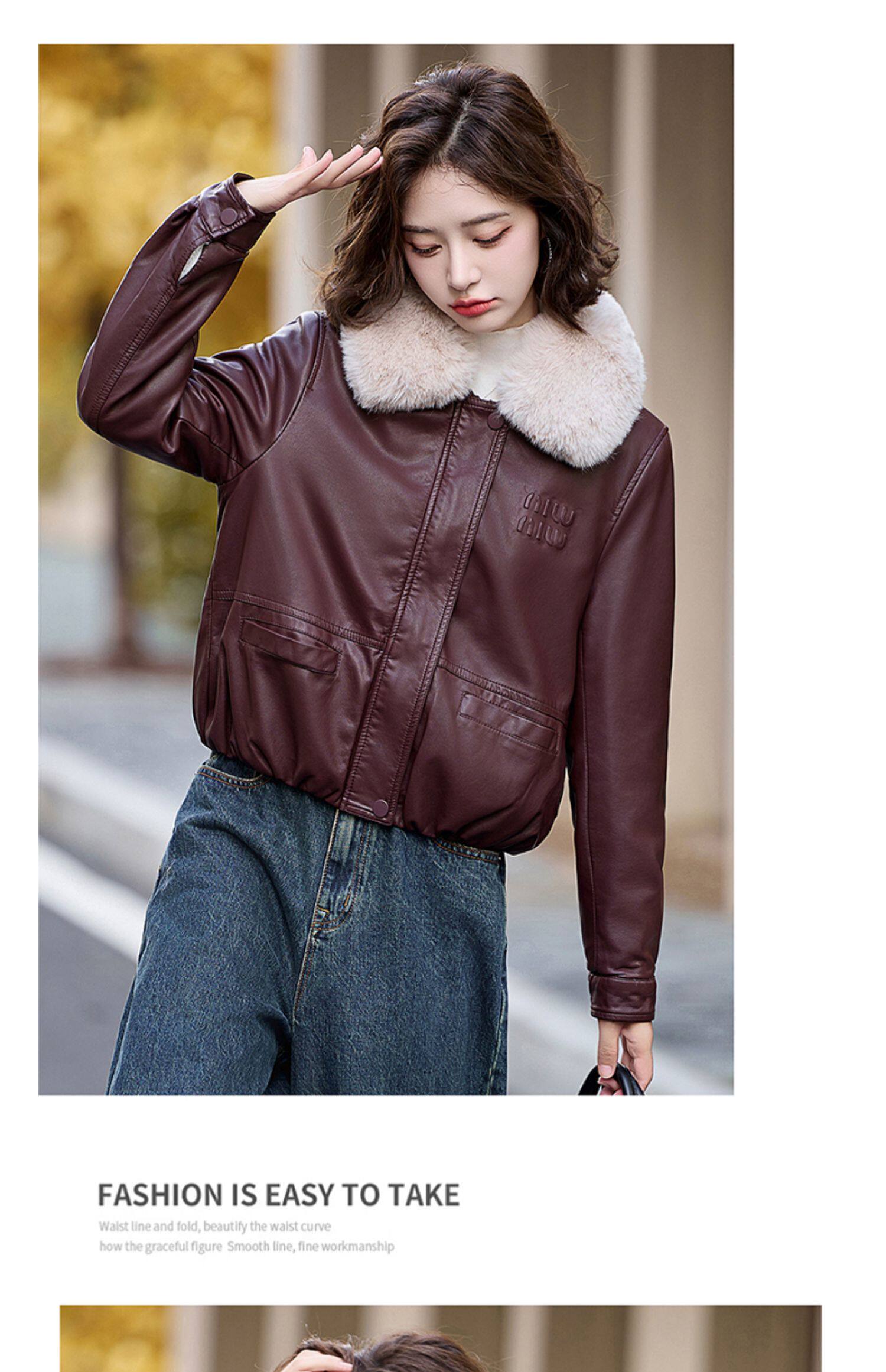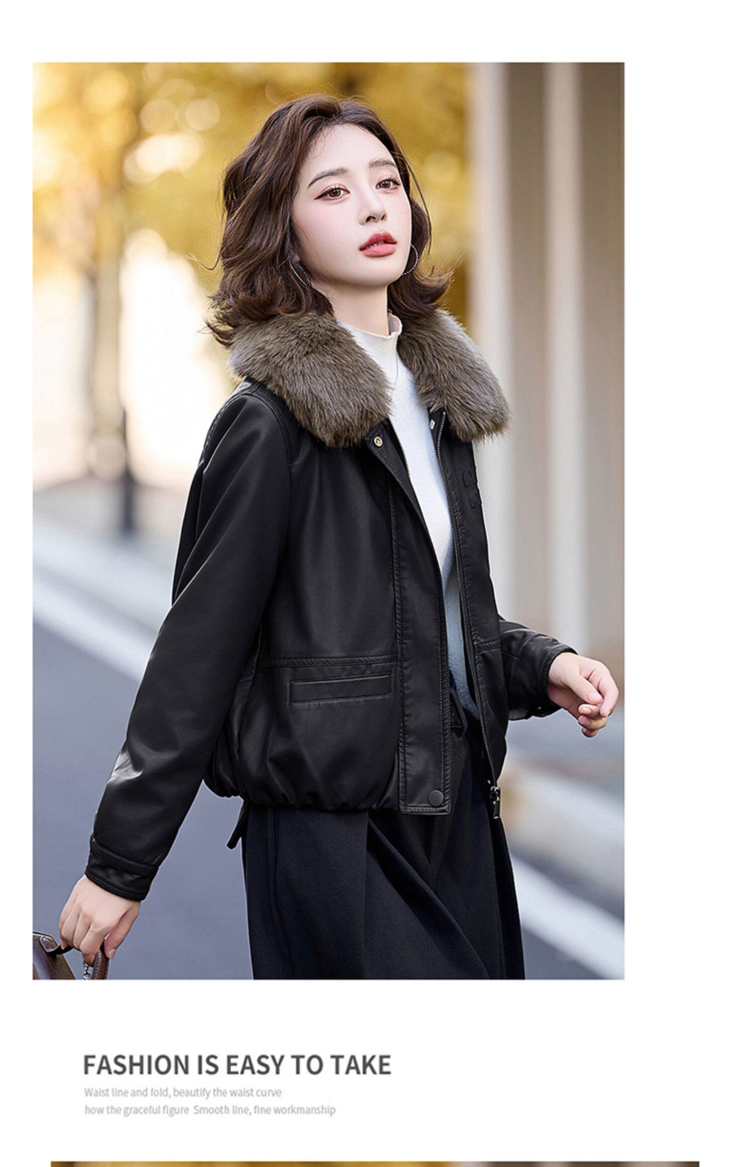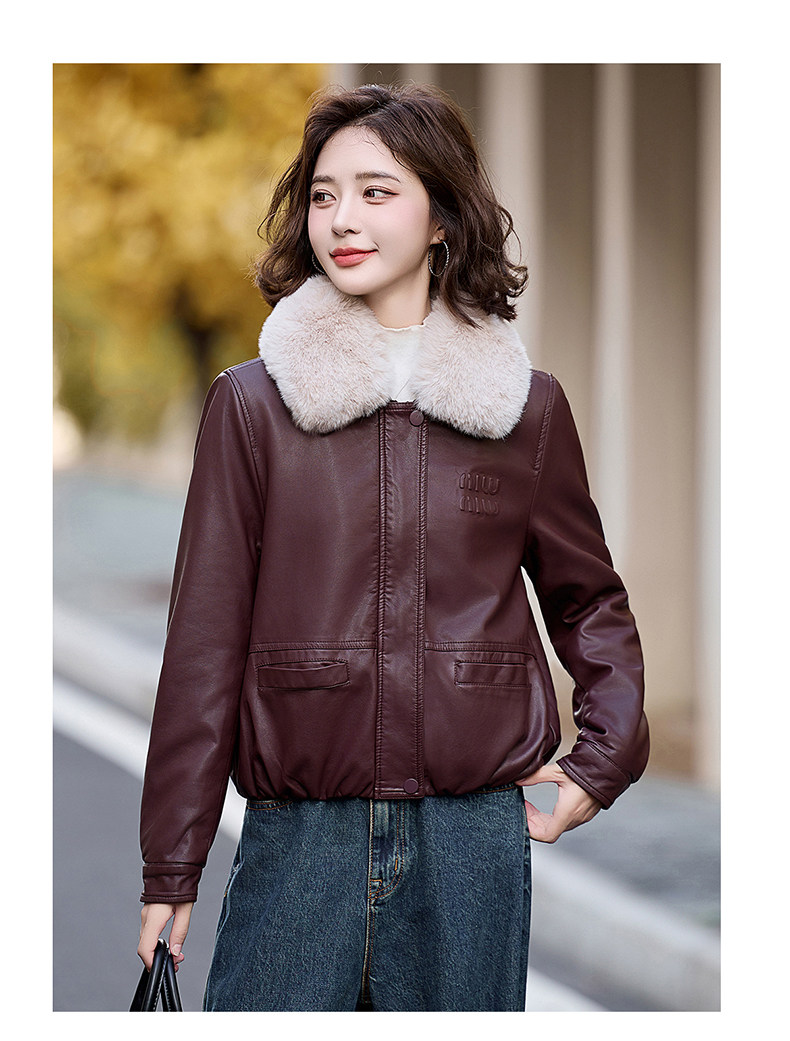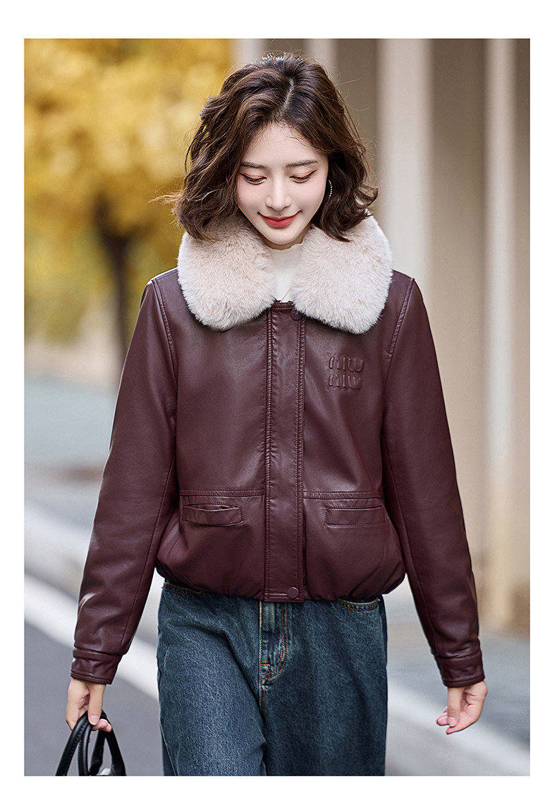 Cormusse velvet thickened short leather jacket for women 2025 winter new retro casual fur collar leather jacket