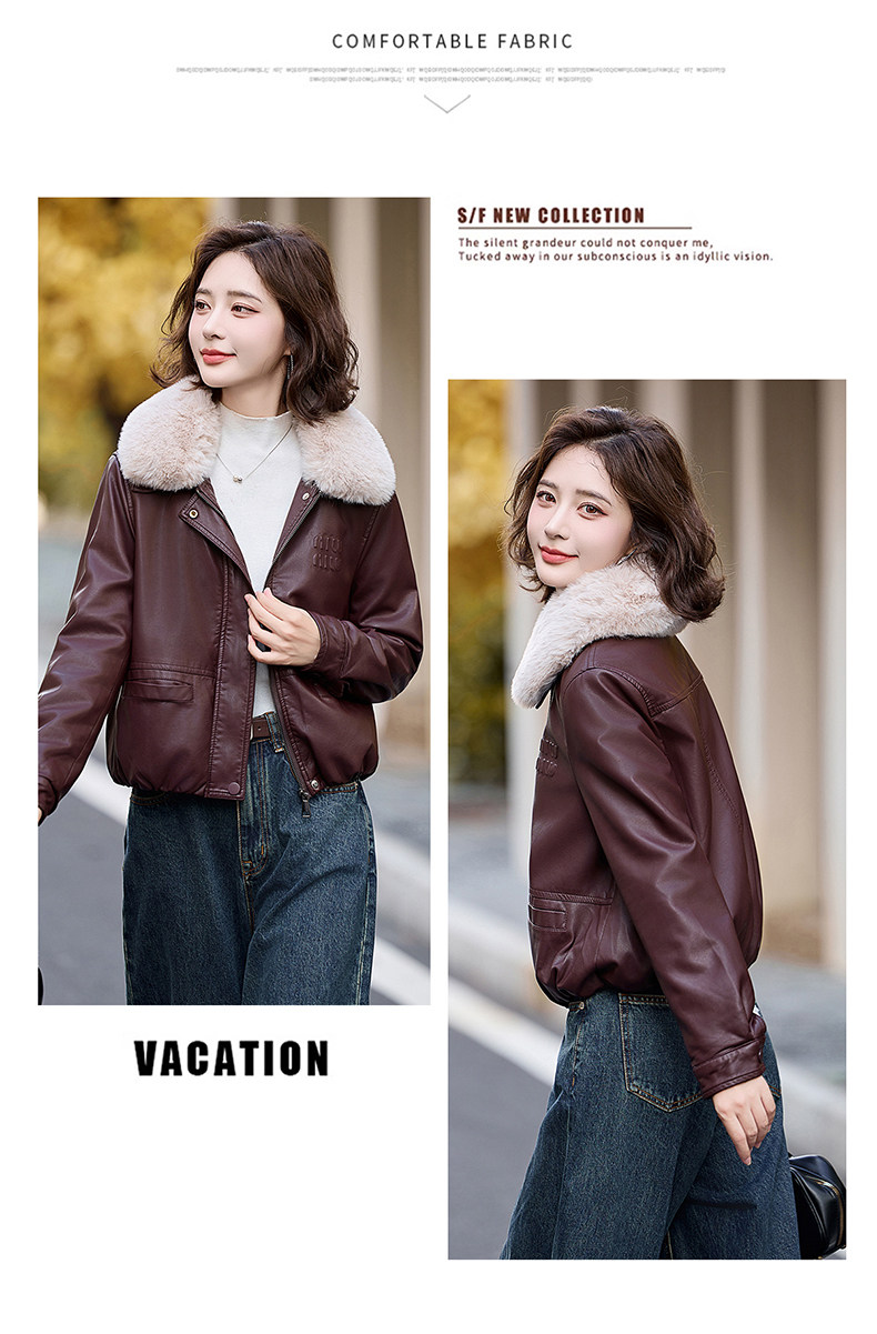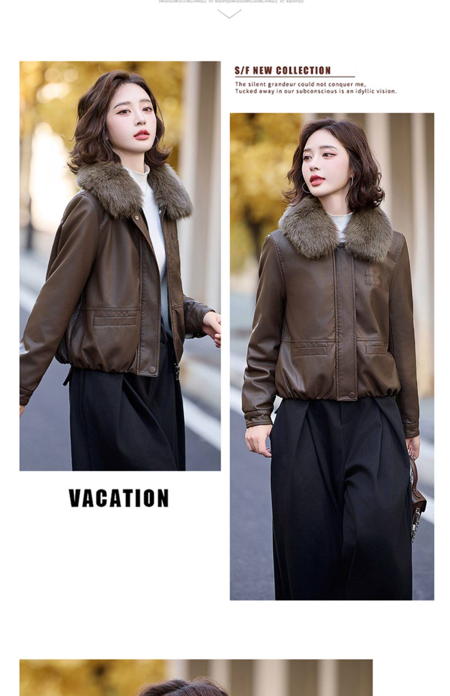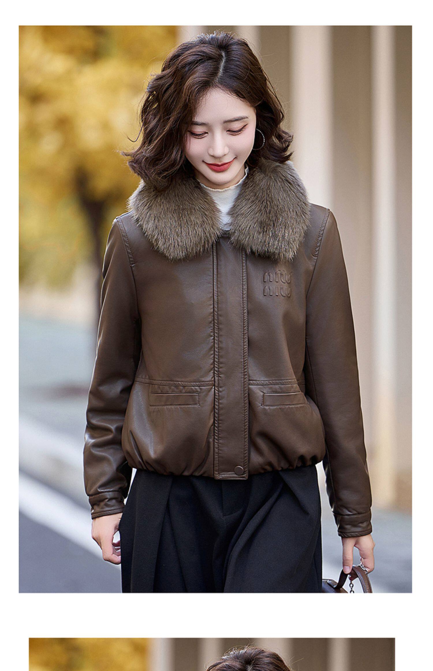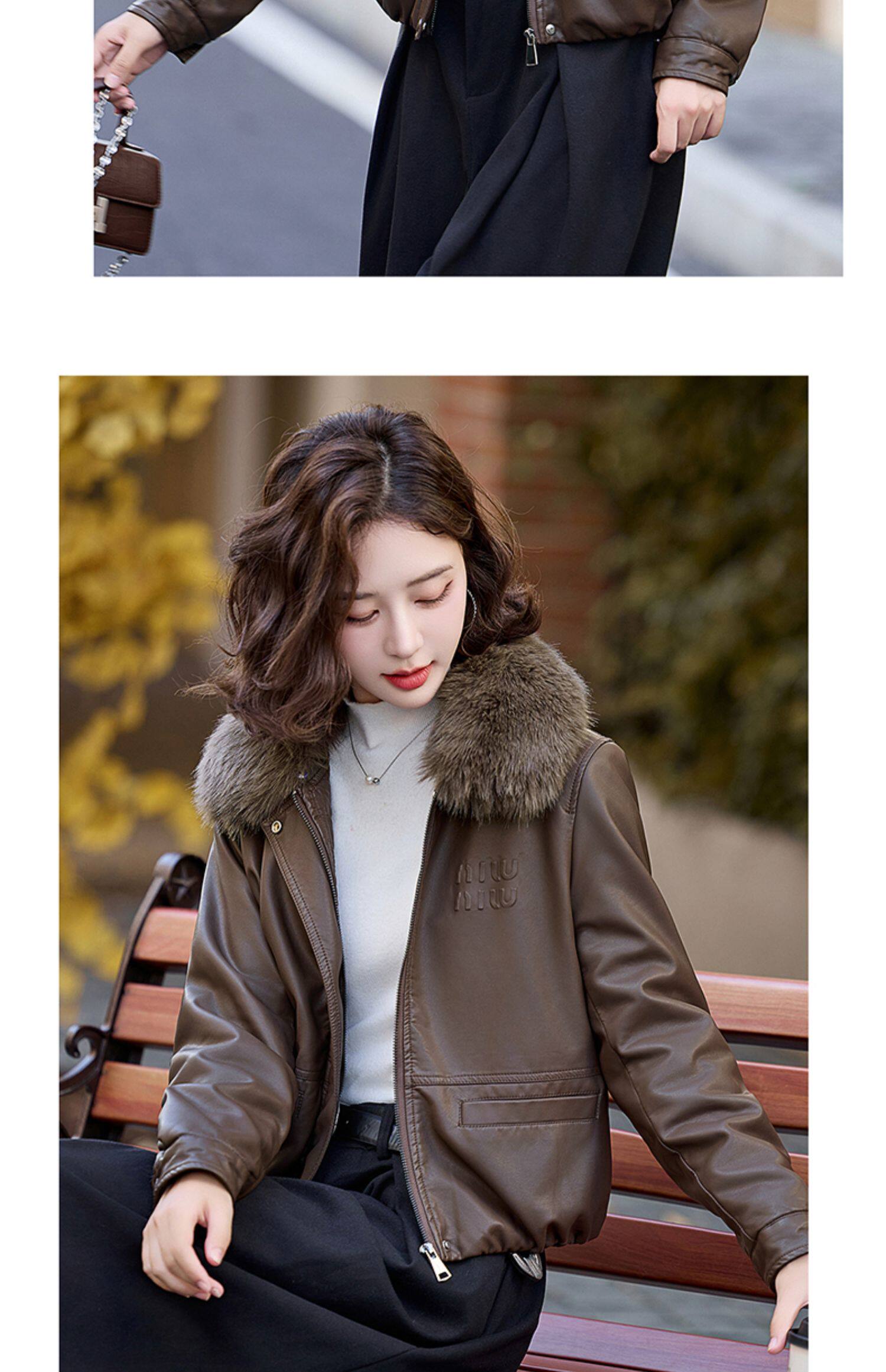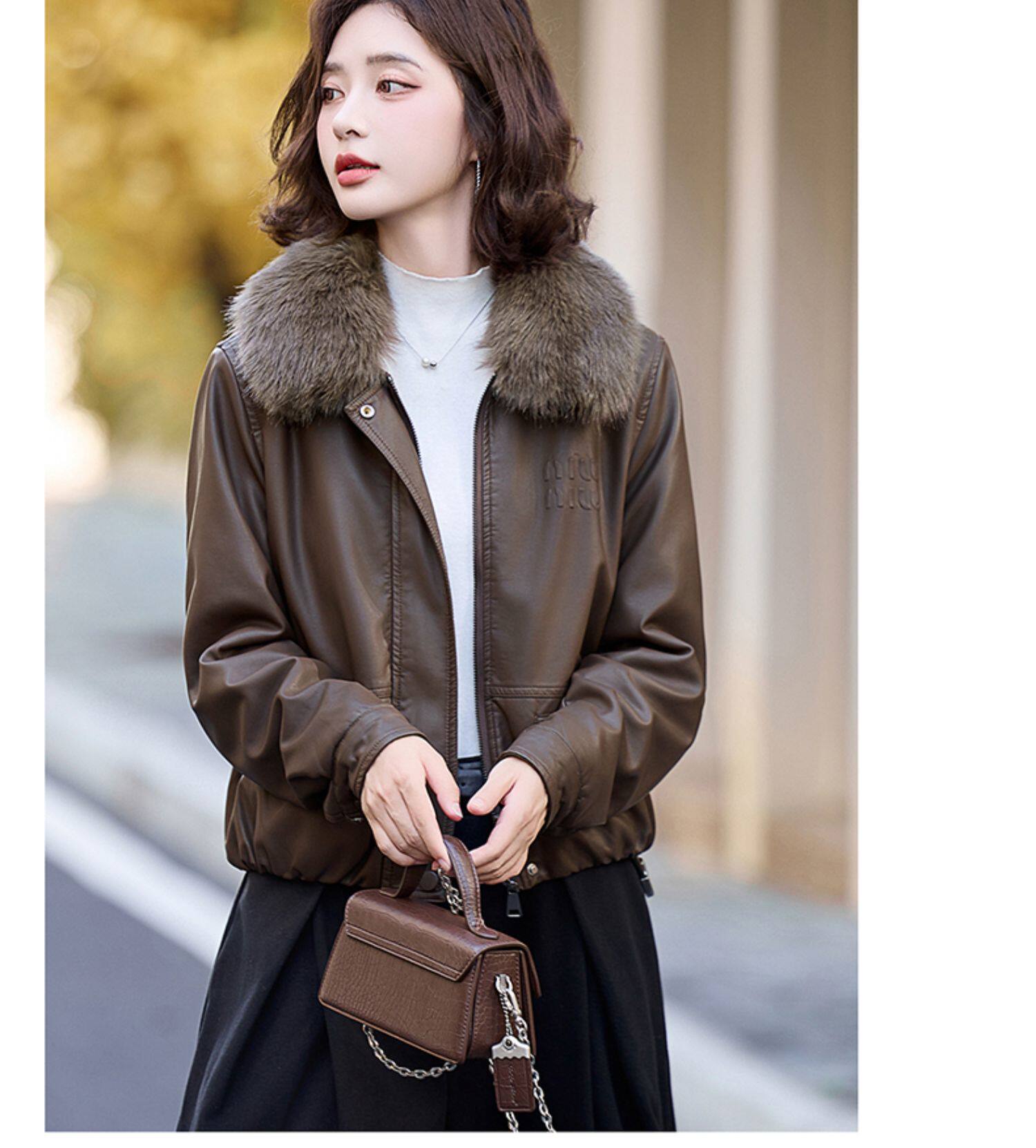 Cormusse velvet thickened short leather jacket for women 2025 winter new retro casual fur collar leather jacket