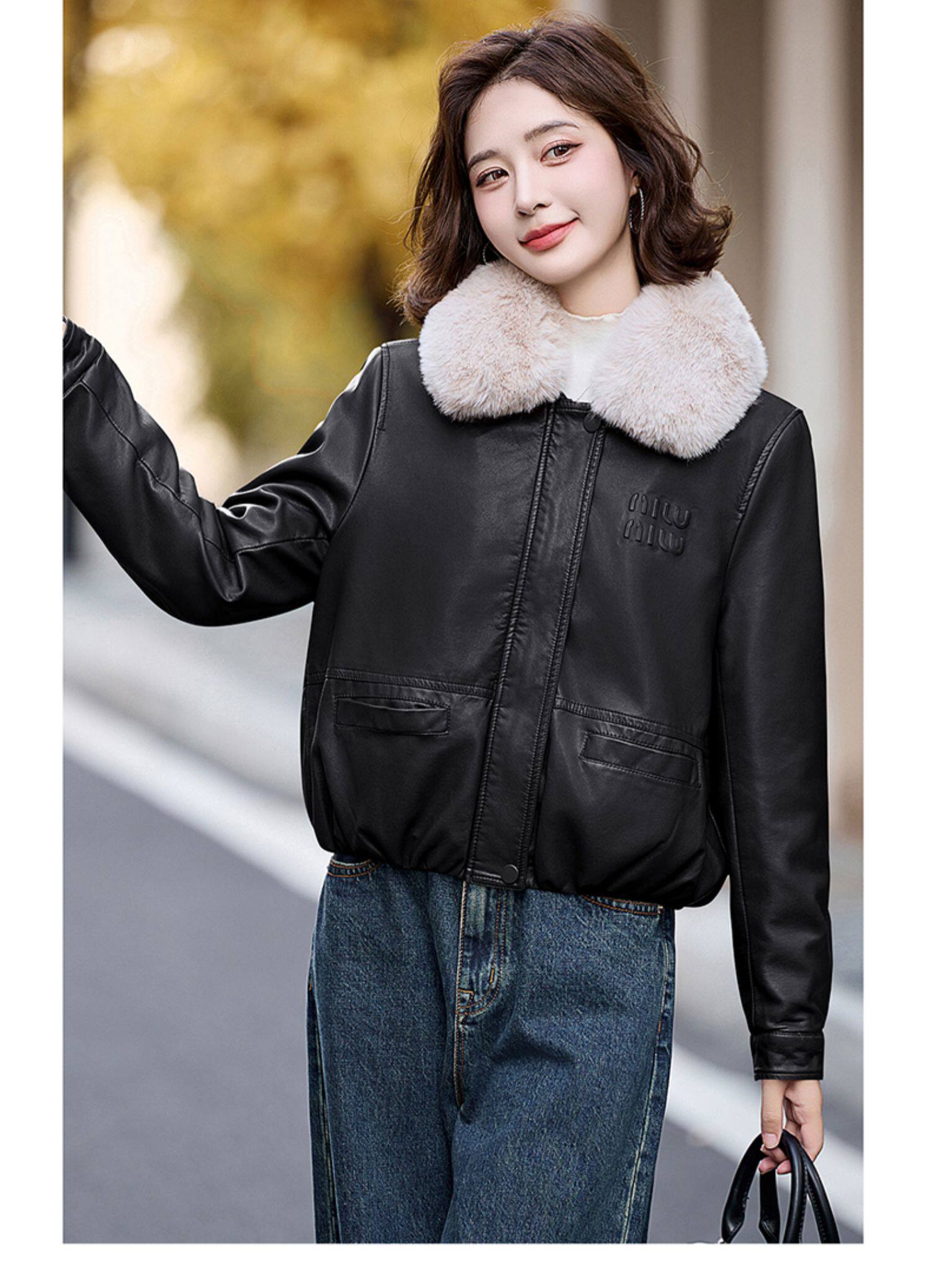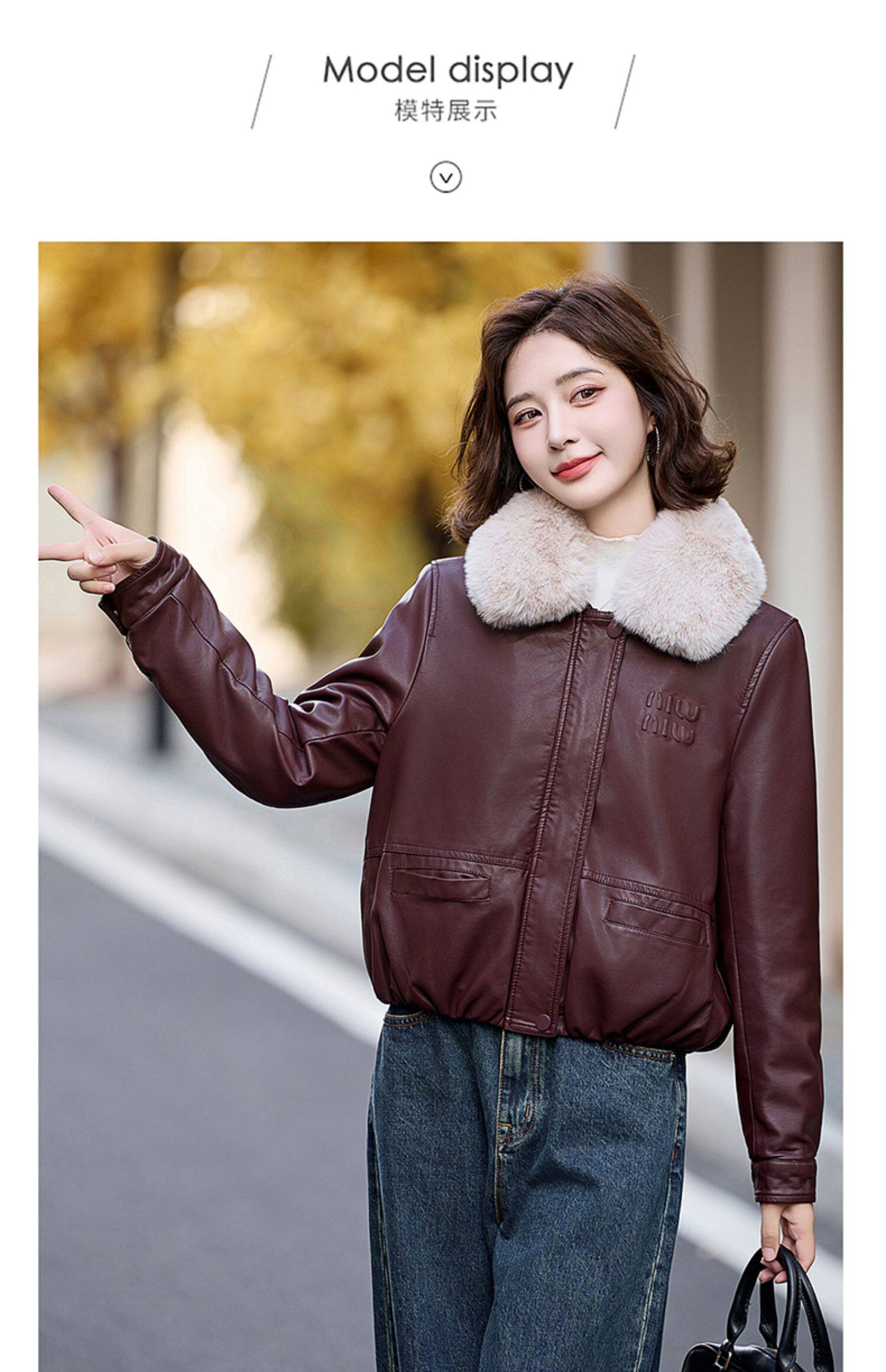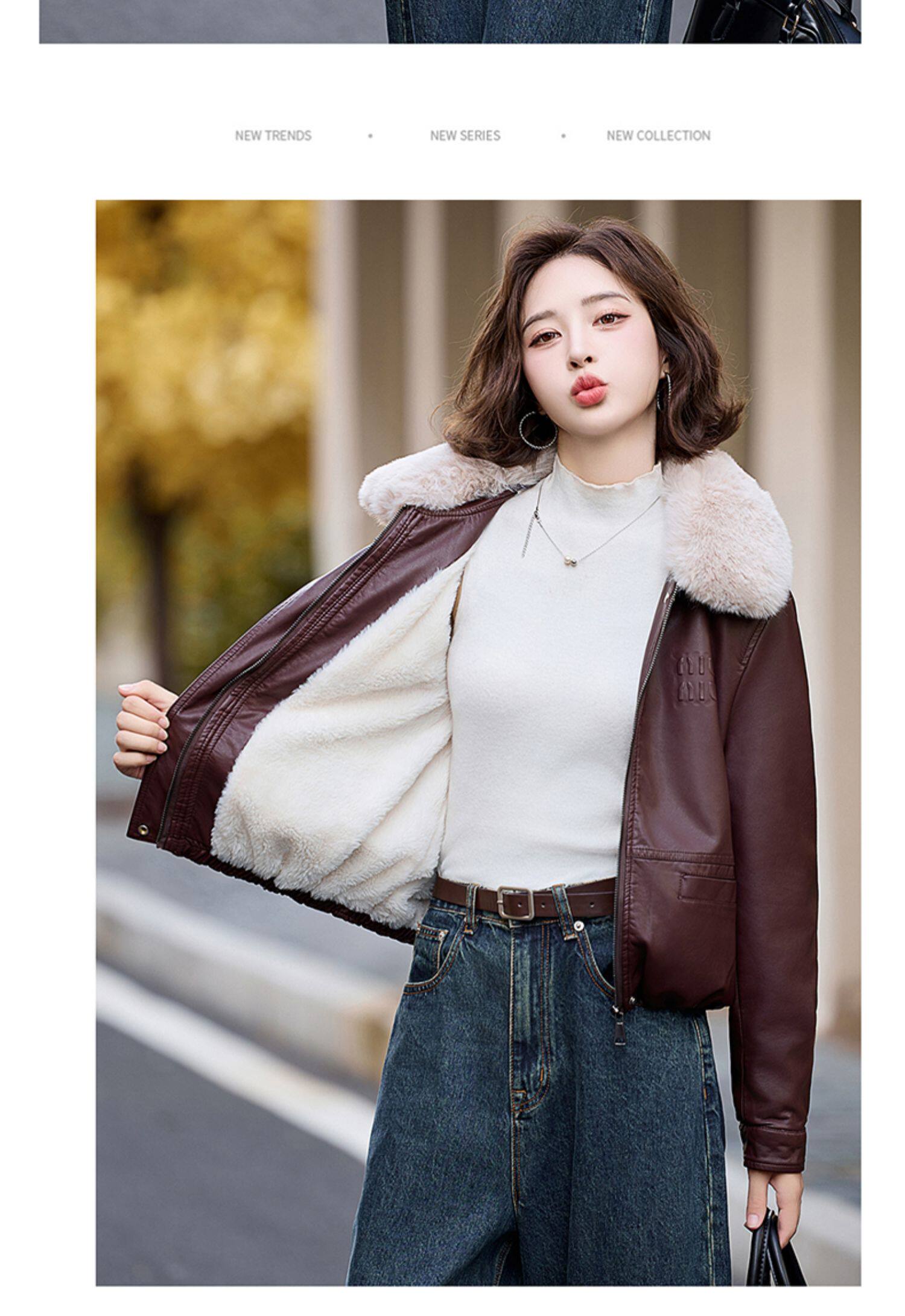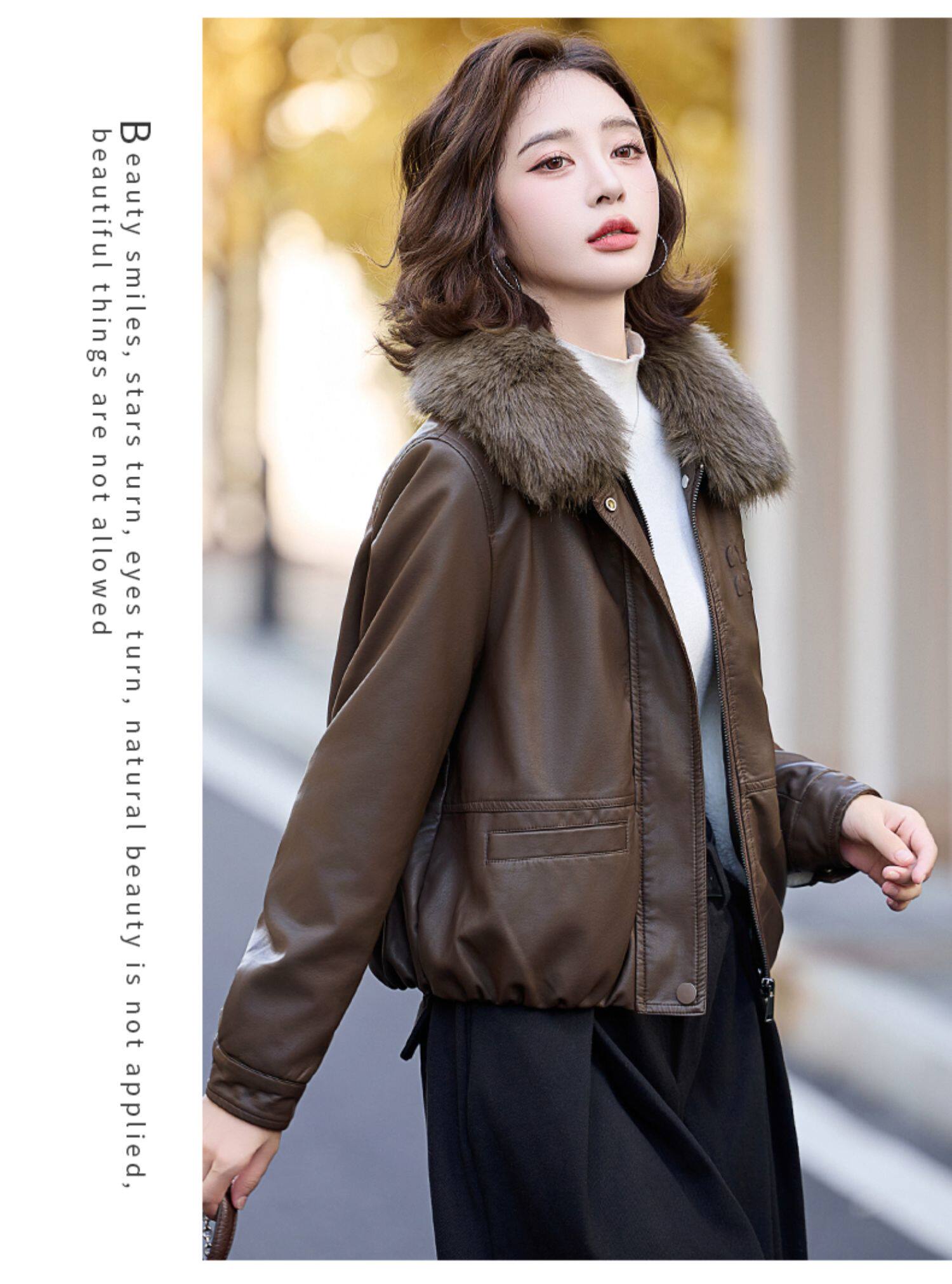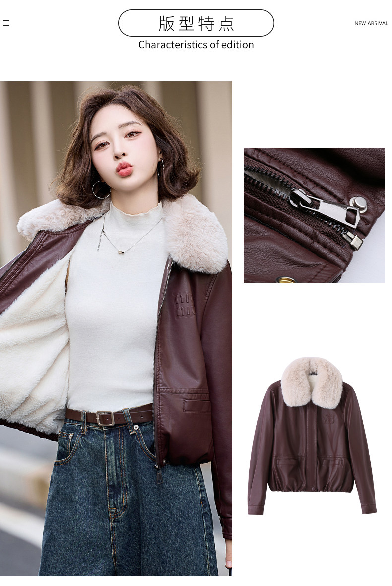 Cormusse velvet thickened short leather jacket for women 2025 winter new retro casual fur collar leather jacket