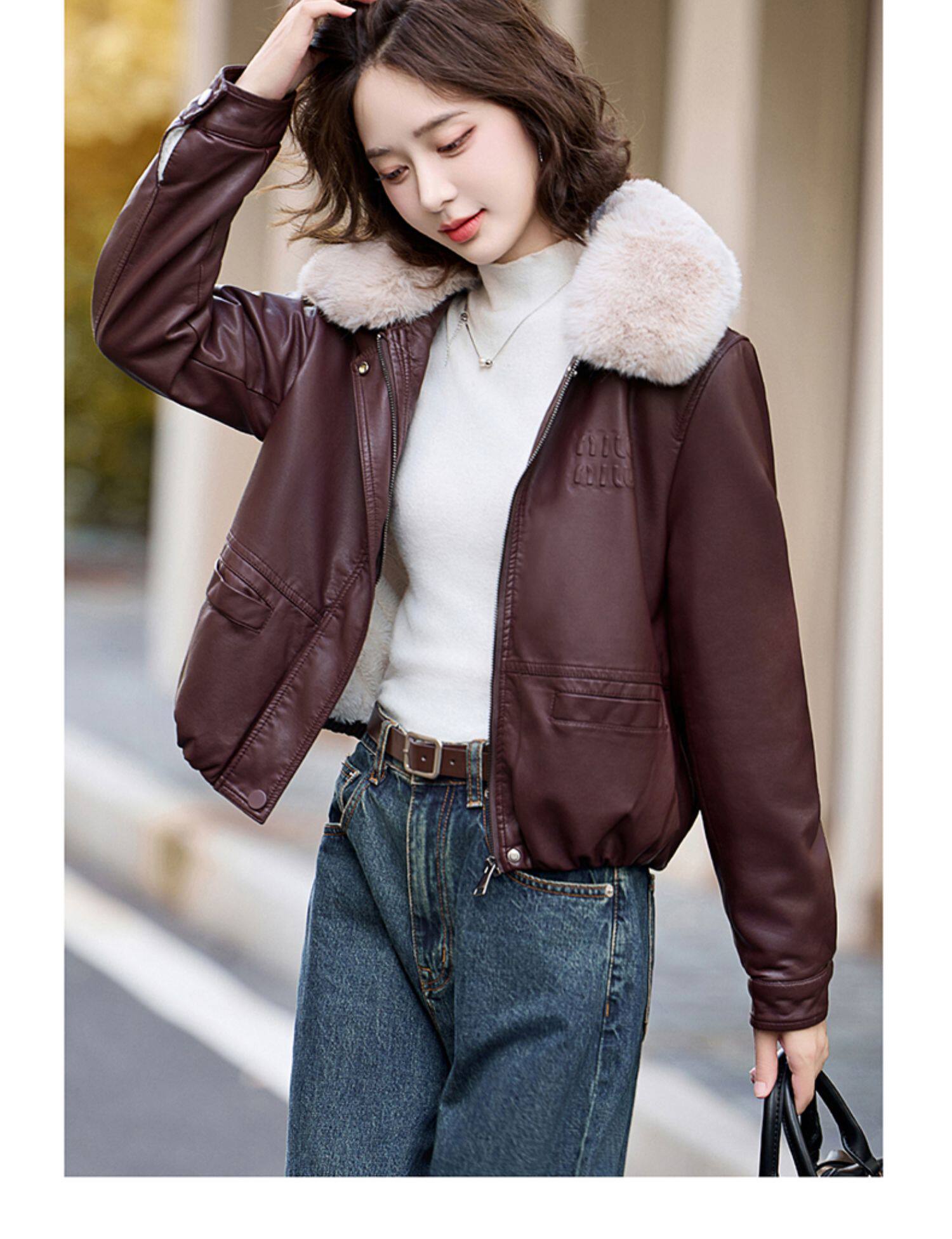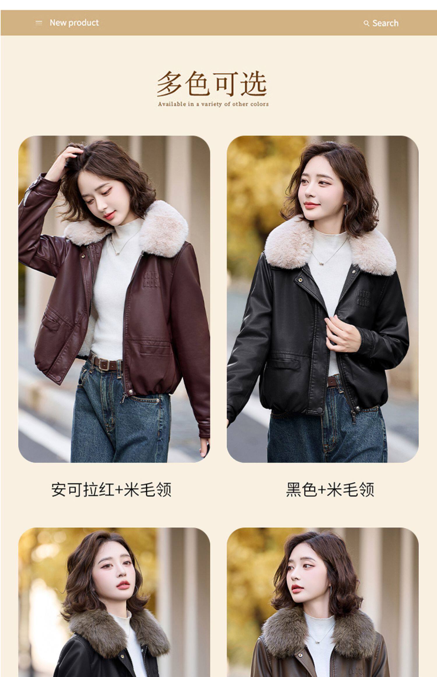 Sort by color Brown brown fur collar (the fur collar is removable),Anchor red rice fur collar (the fur collar is removable),Black rice fur collar (the fur collar is removable),Black coffee fur collar (the fur collar is removable)