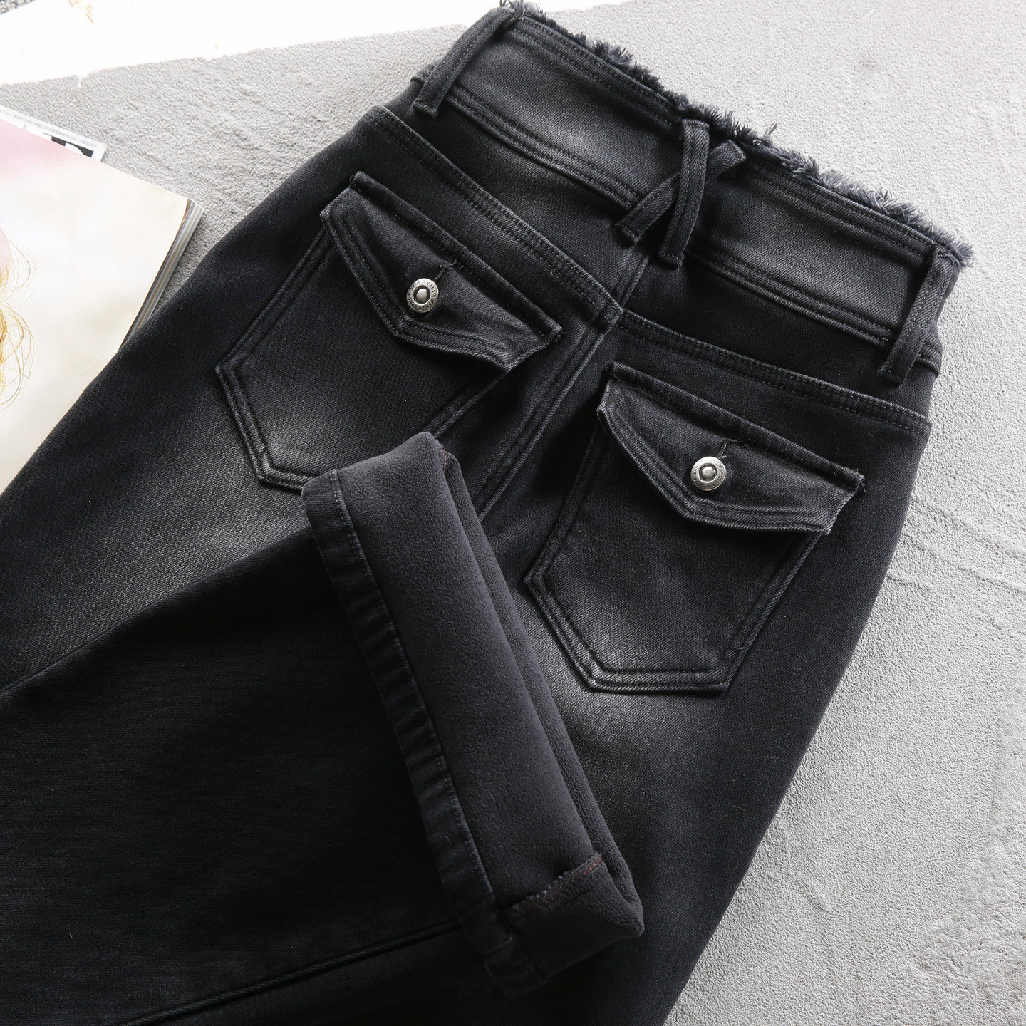 Thickened Fleece-Lined Flared Pants for Women, Autumn and Winter 2025 New Style, Black Slim Fit, Hip-Lifting, High-Waisted, Petite, Slightly Flared Jeans