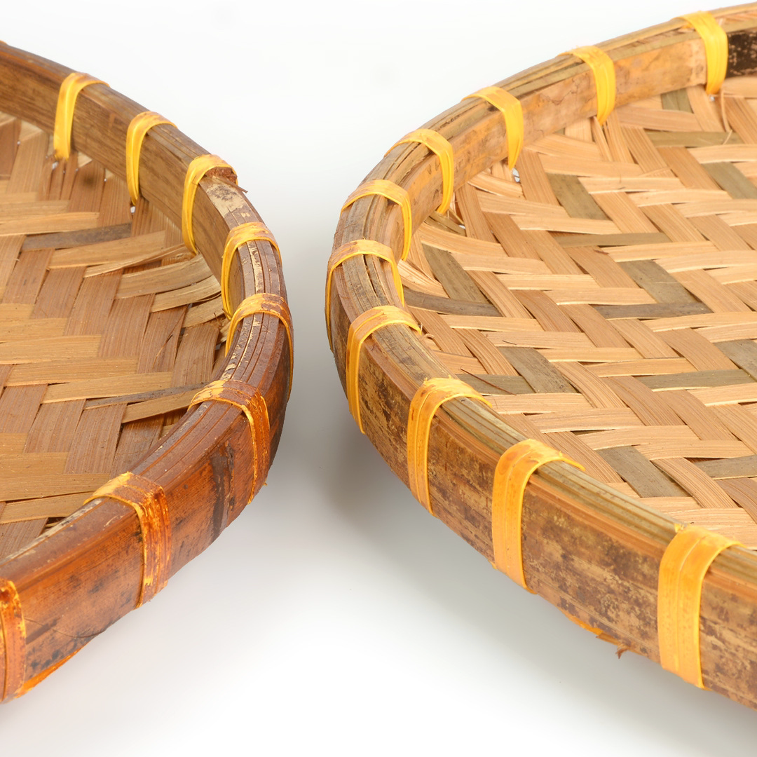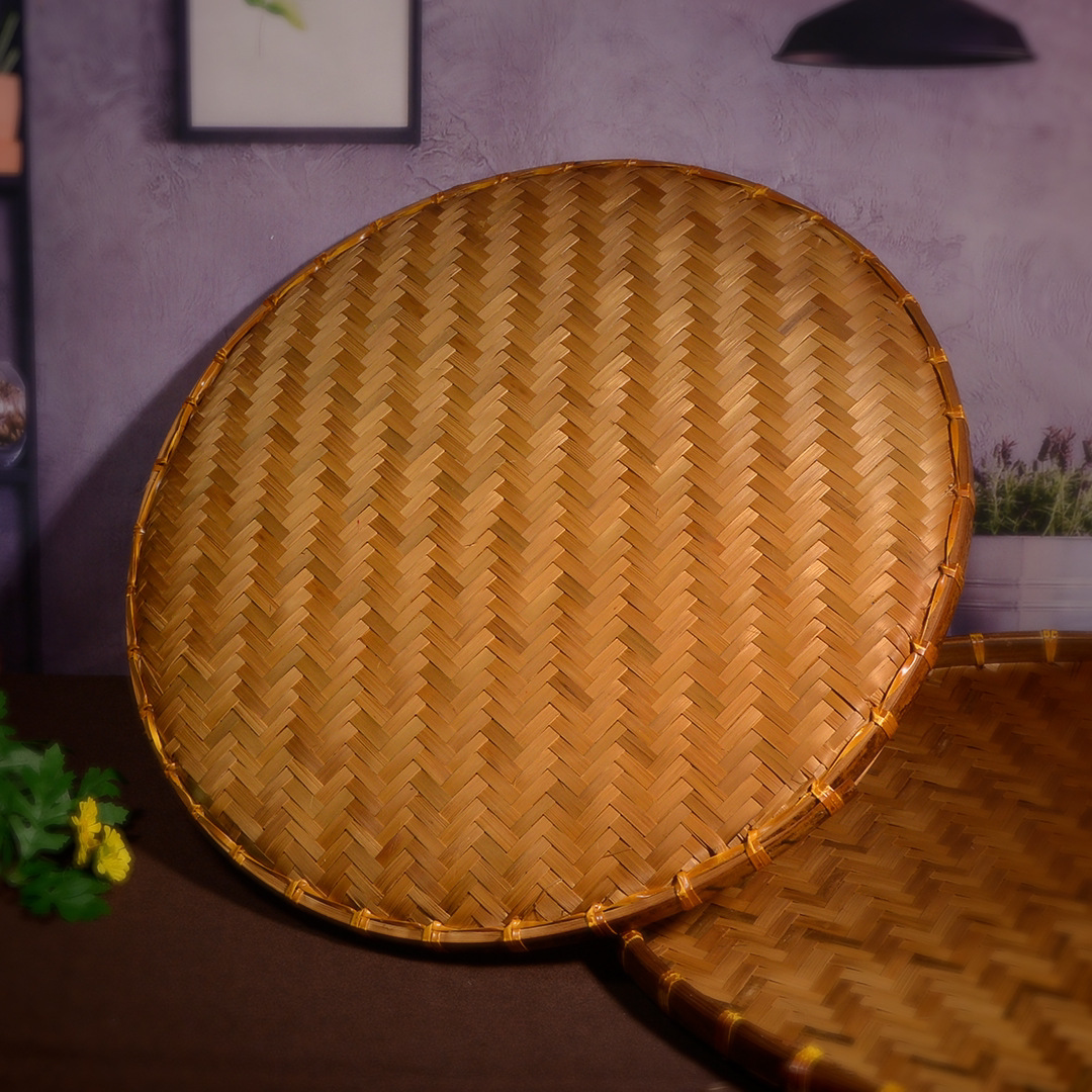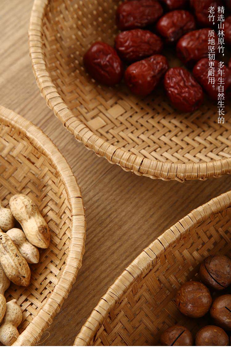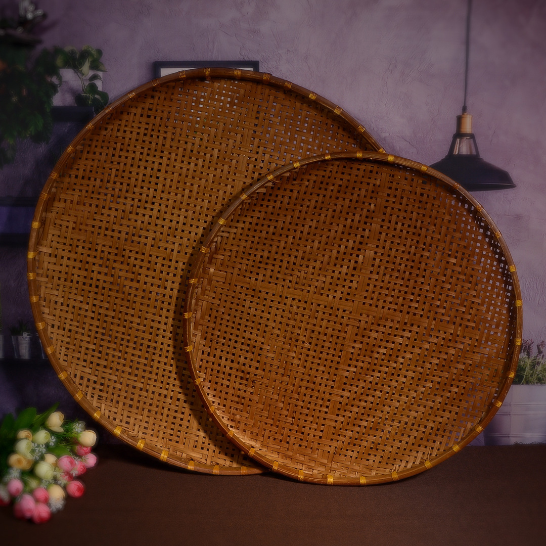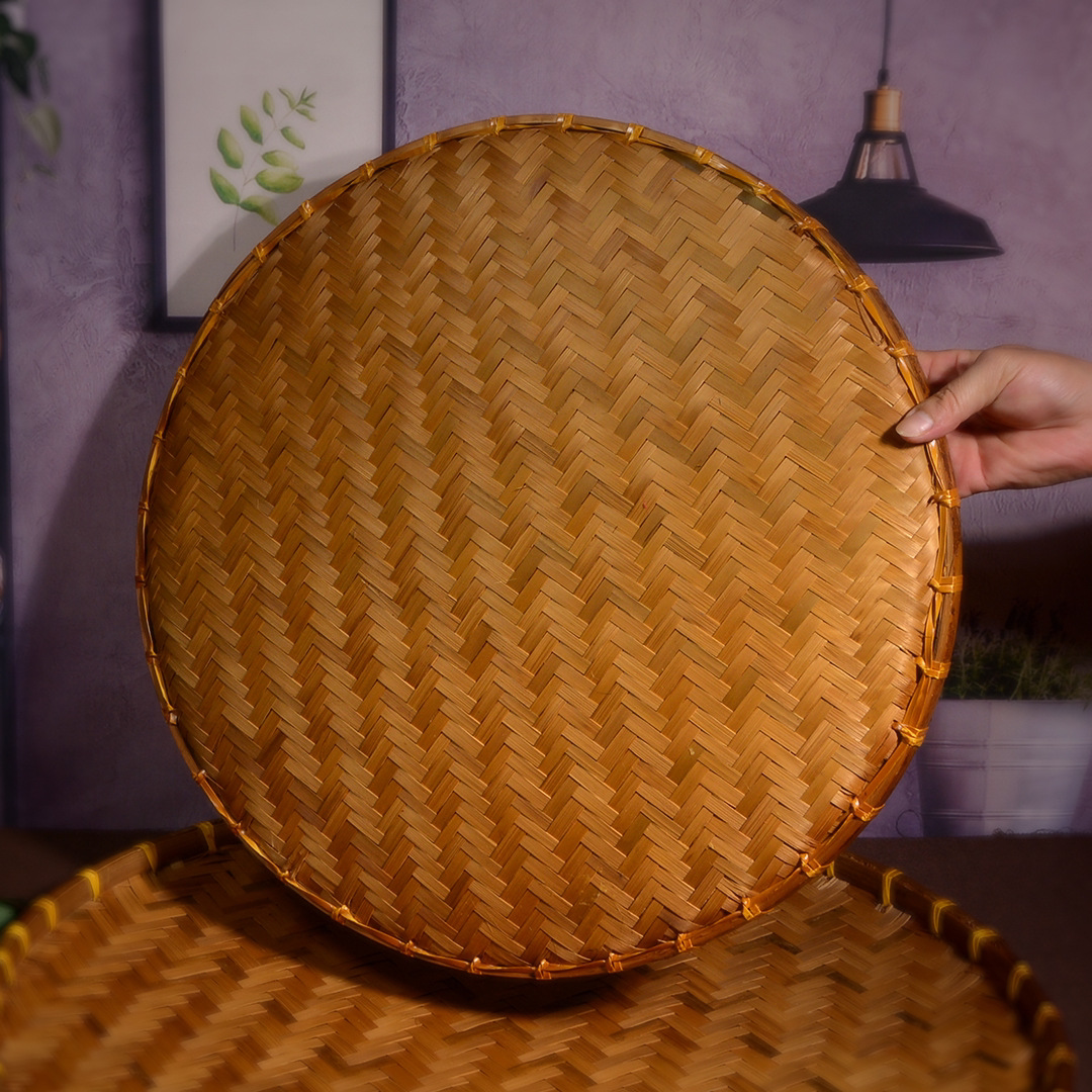 Hand-woven smoked natural bamboo perforated round steamed bun storage basket for drying round dustpan fruit basket basket sieve