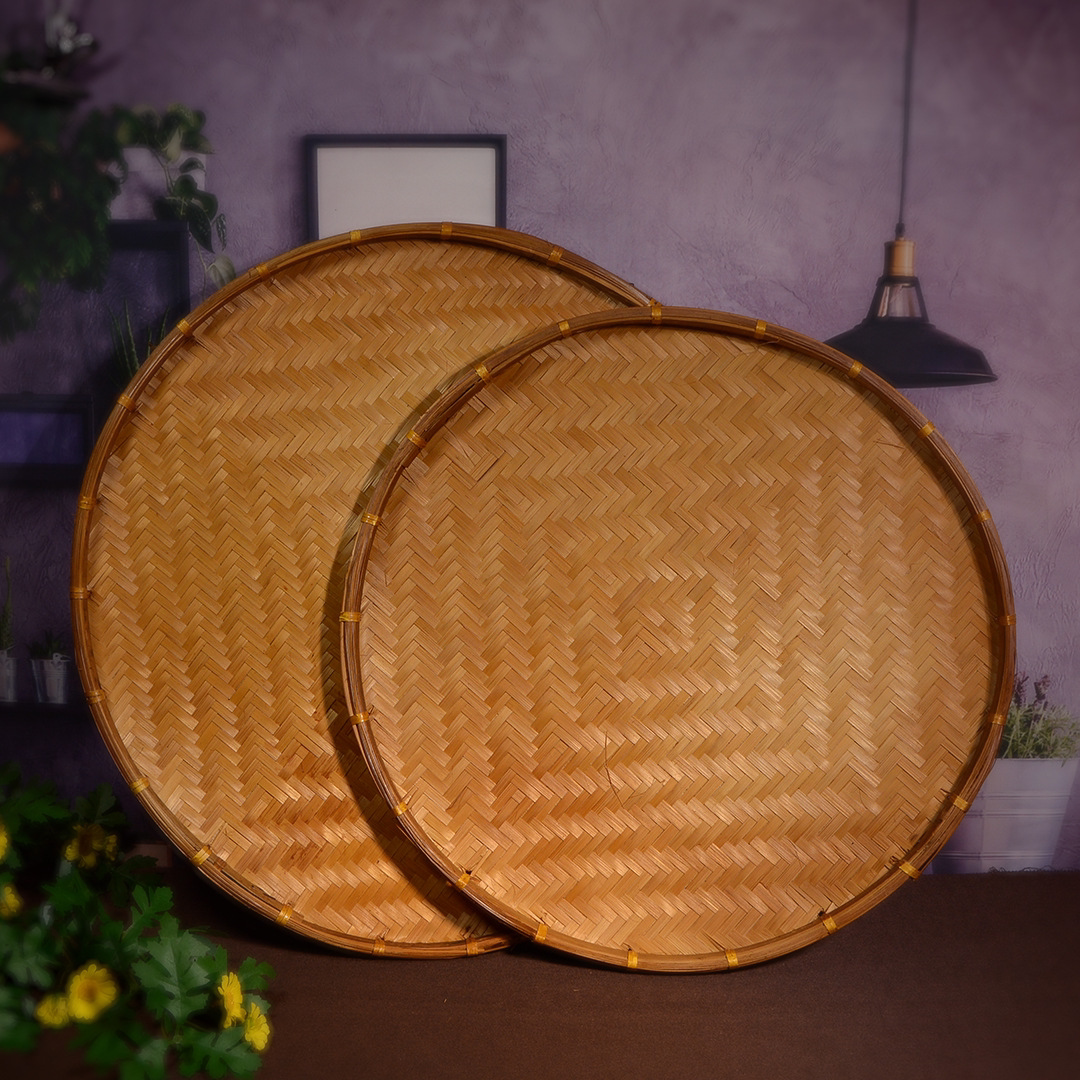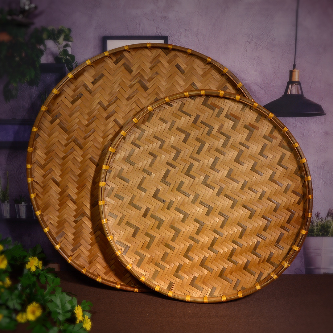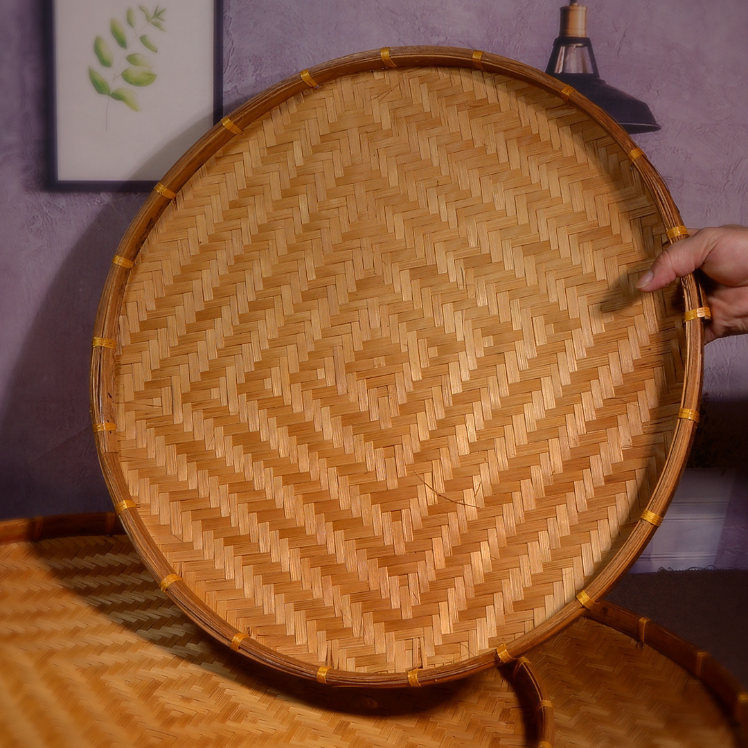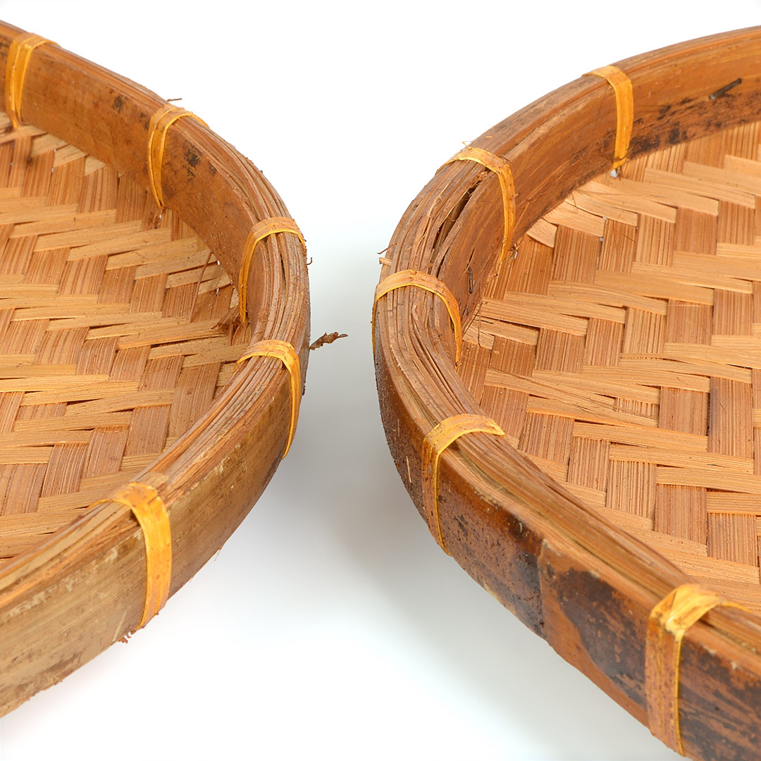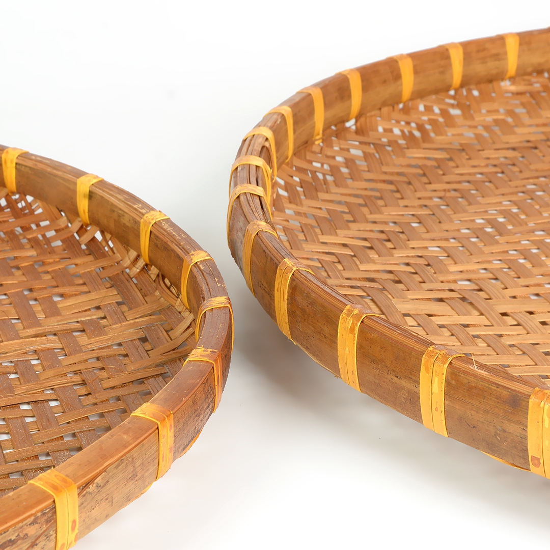 Hand-woven smoked natural bamboo perforated round steamed bun storage basket for drying round dustpan fruit basket basket sieve