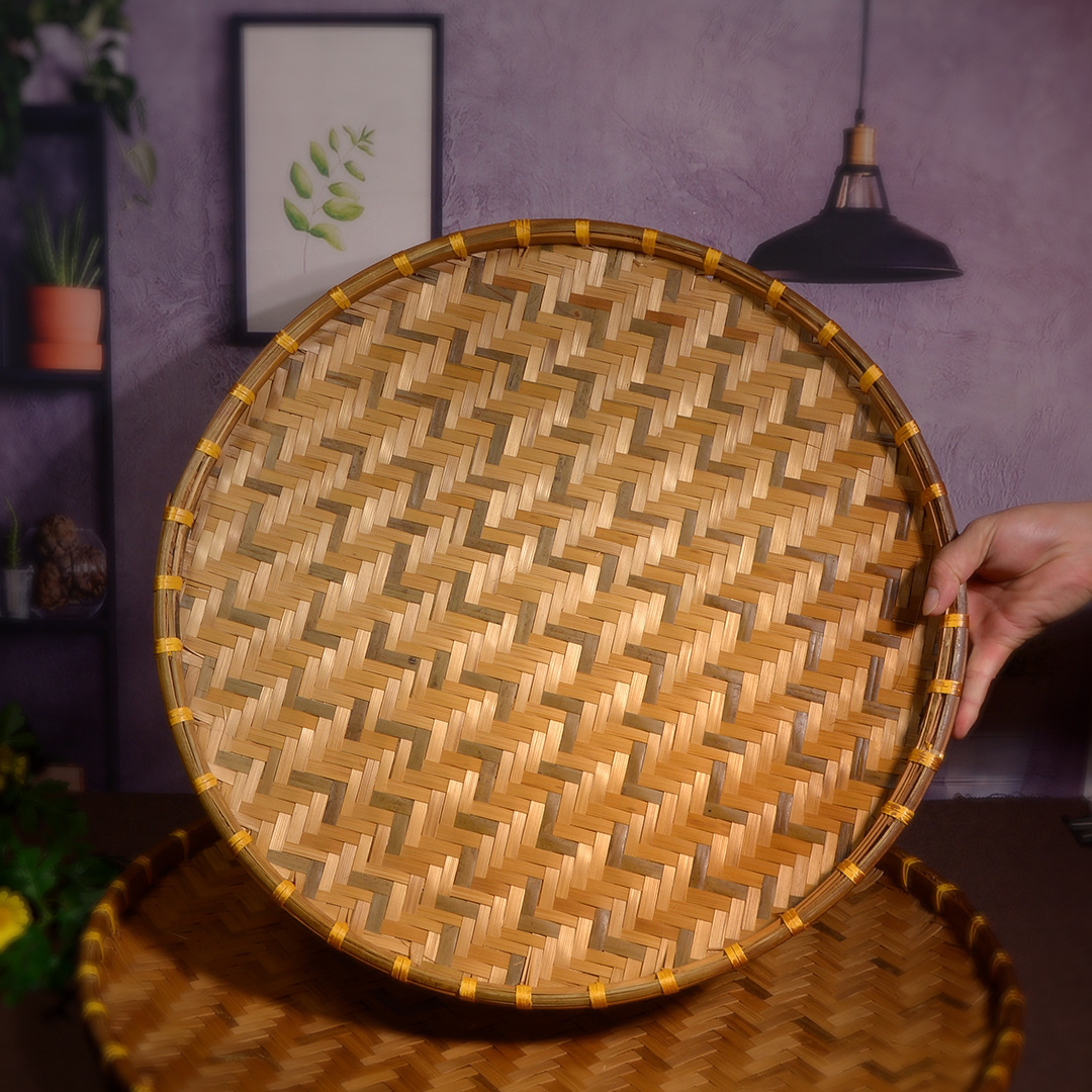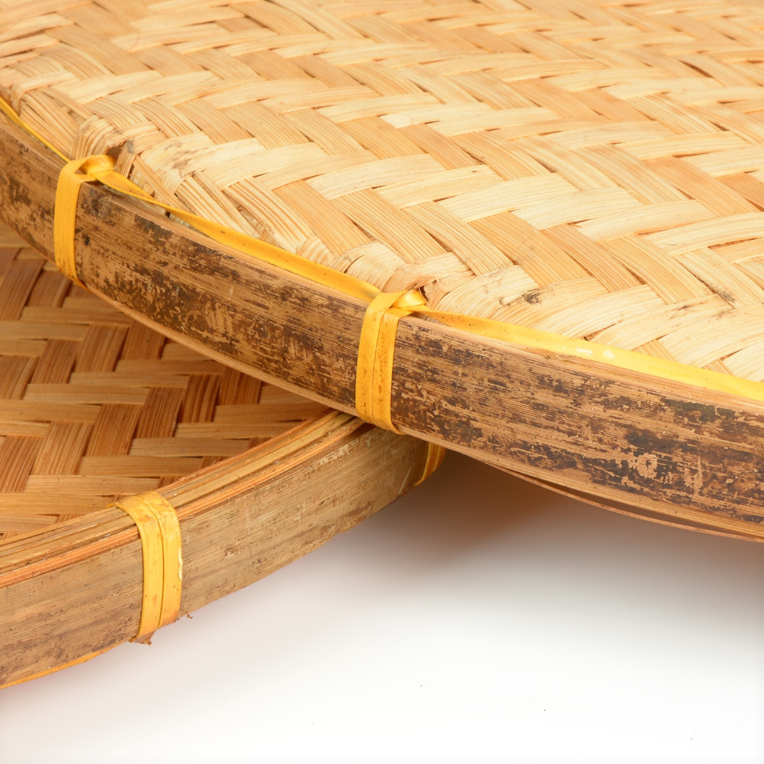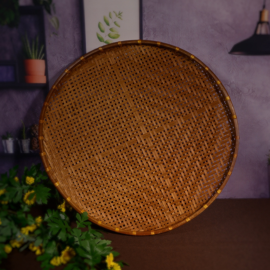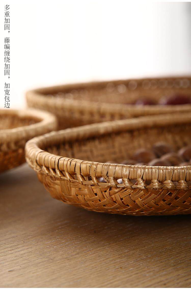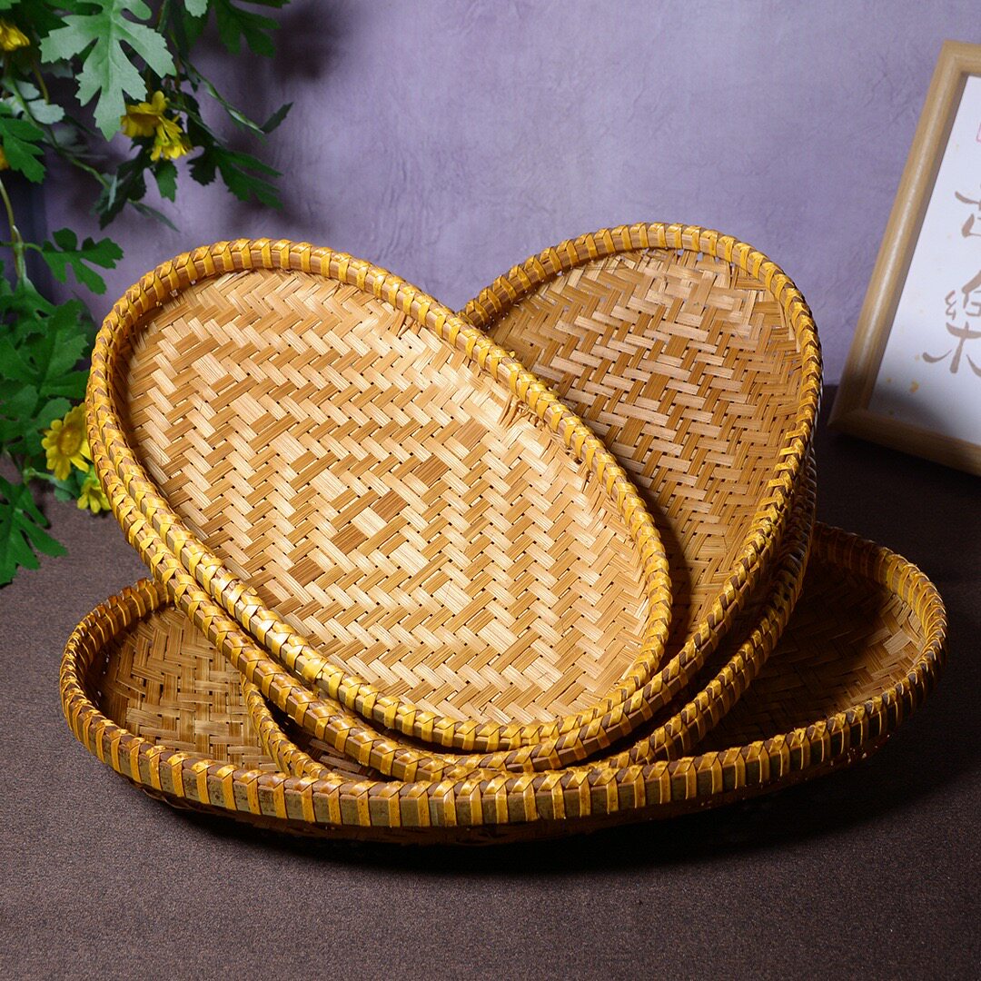 Hand-woven smoked natural bamboo perforated round steamed bun storage basket for drying round dustpan fruit basket basket sieve
