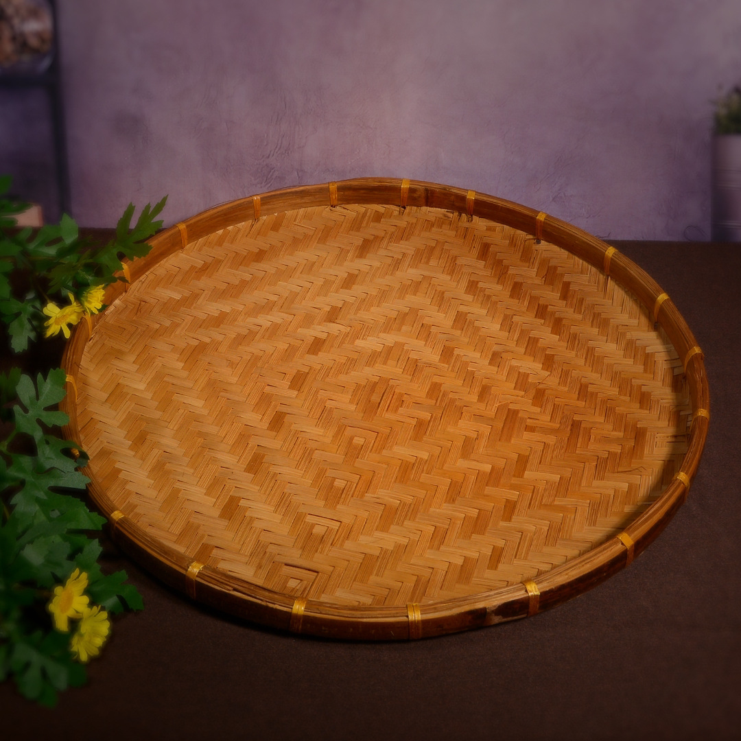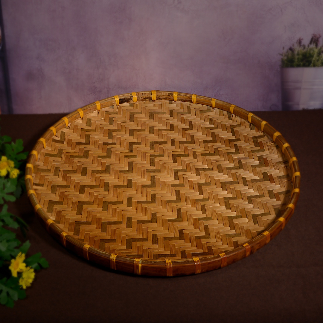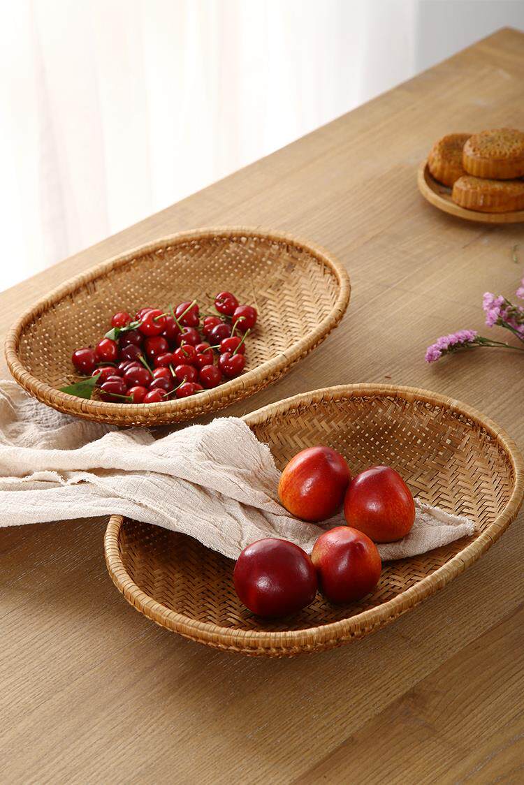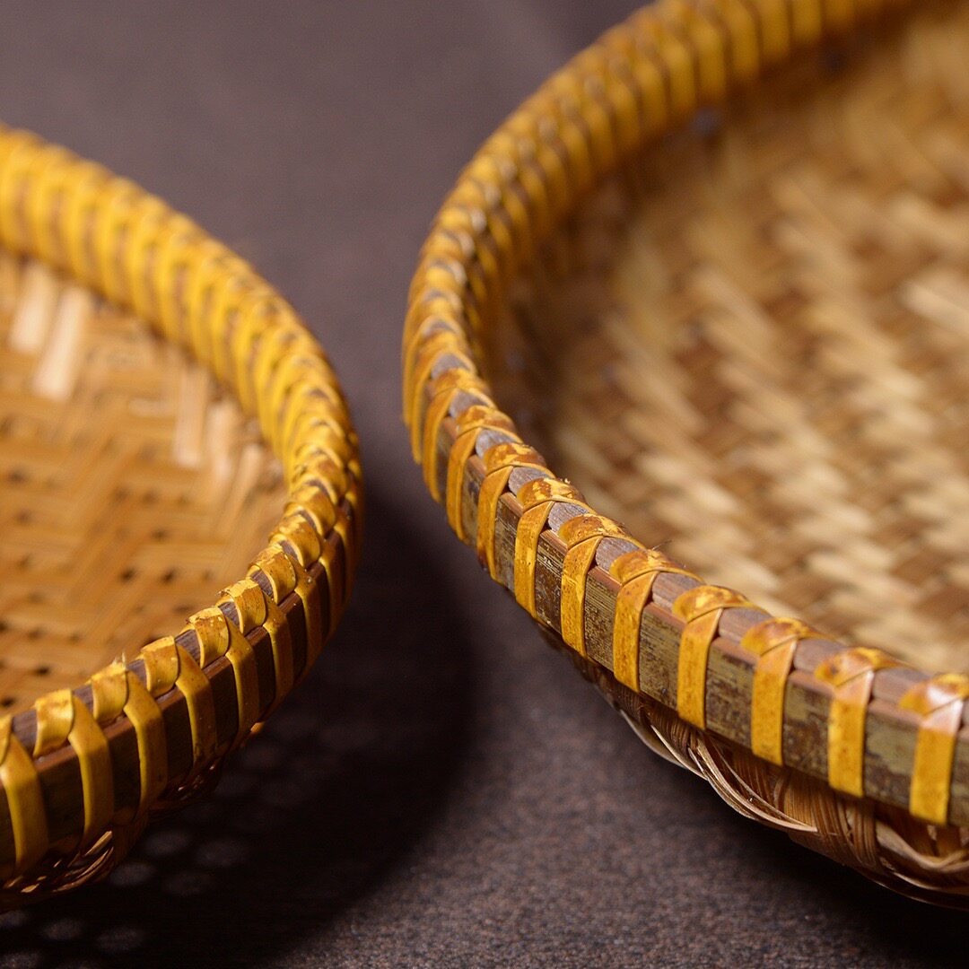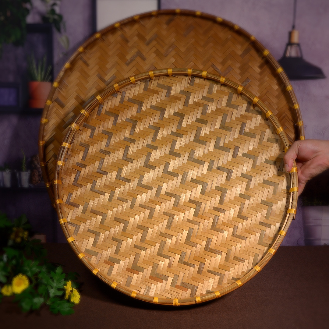 Hand-woven smoked natural bamboo perforated round steamed bun storage basket for drying round dustpan fruit basket basket sieve