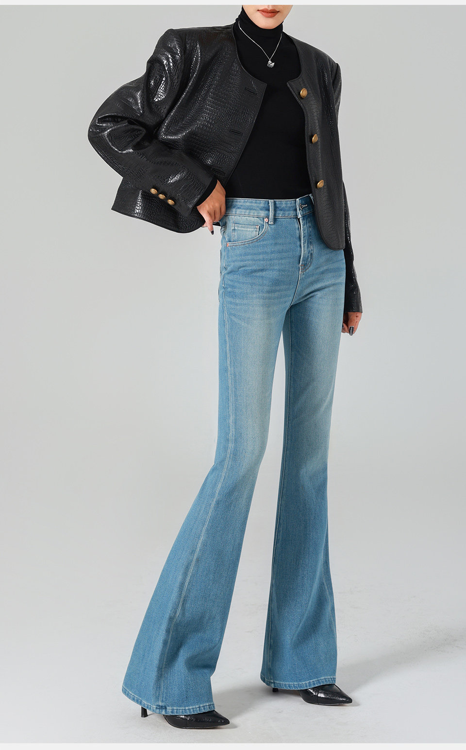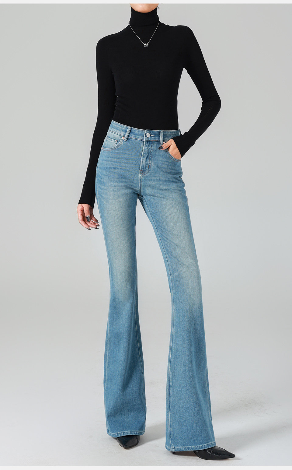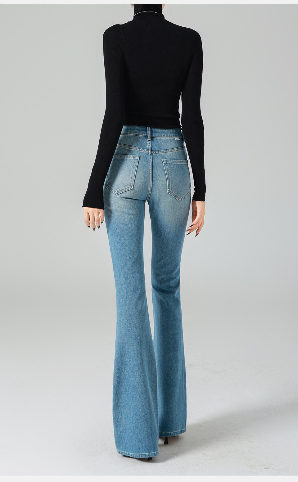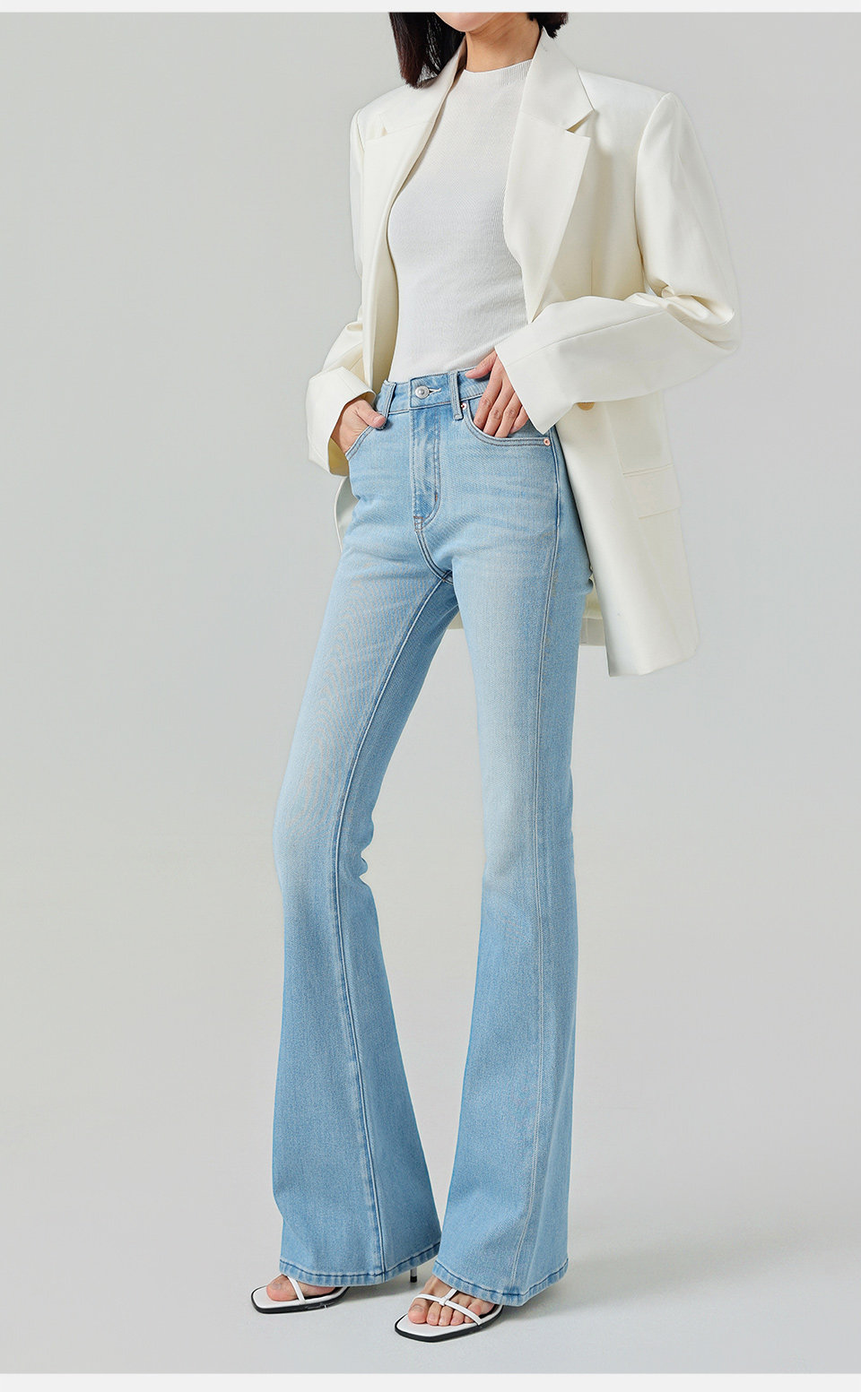 Light Blue Flared Jeans for Women 2025 New High-Waisted Four-Way Stretch Slimming Butt-Lifting Supermodel Pants Versatile and Fashionable