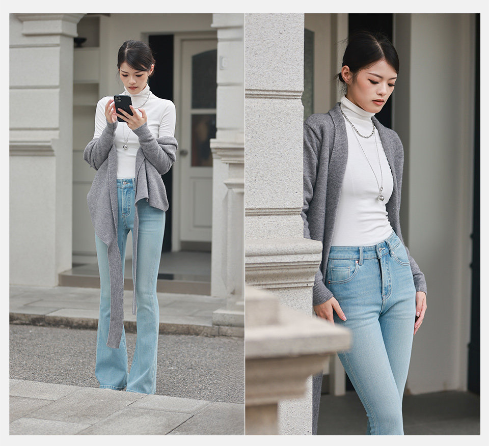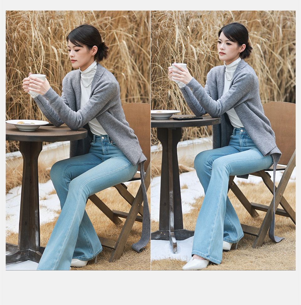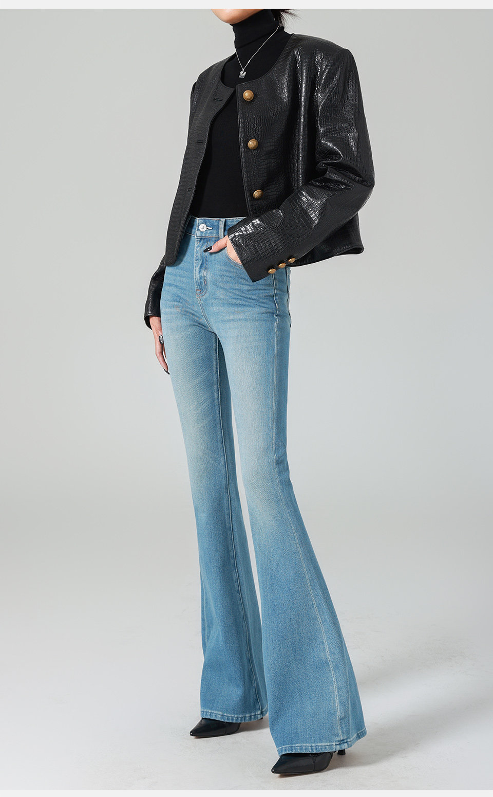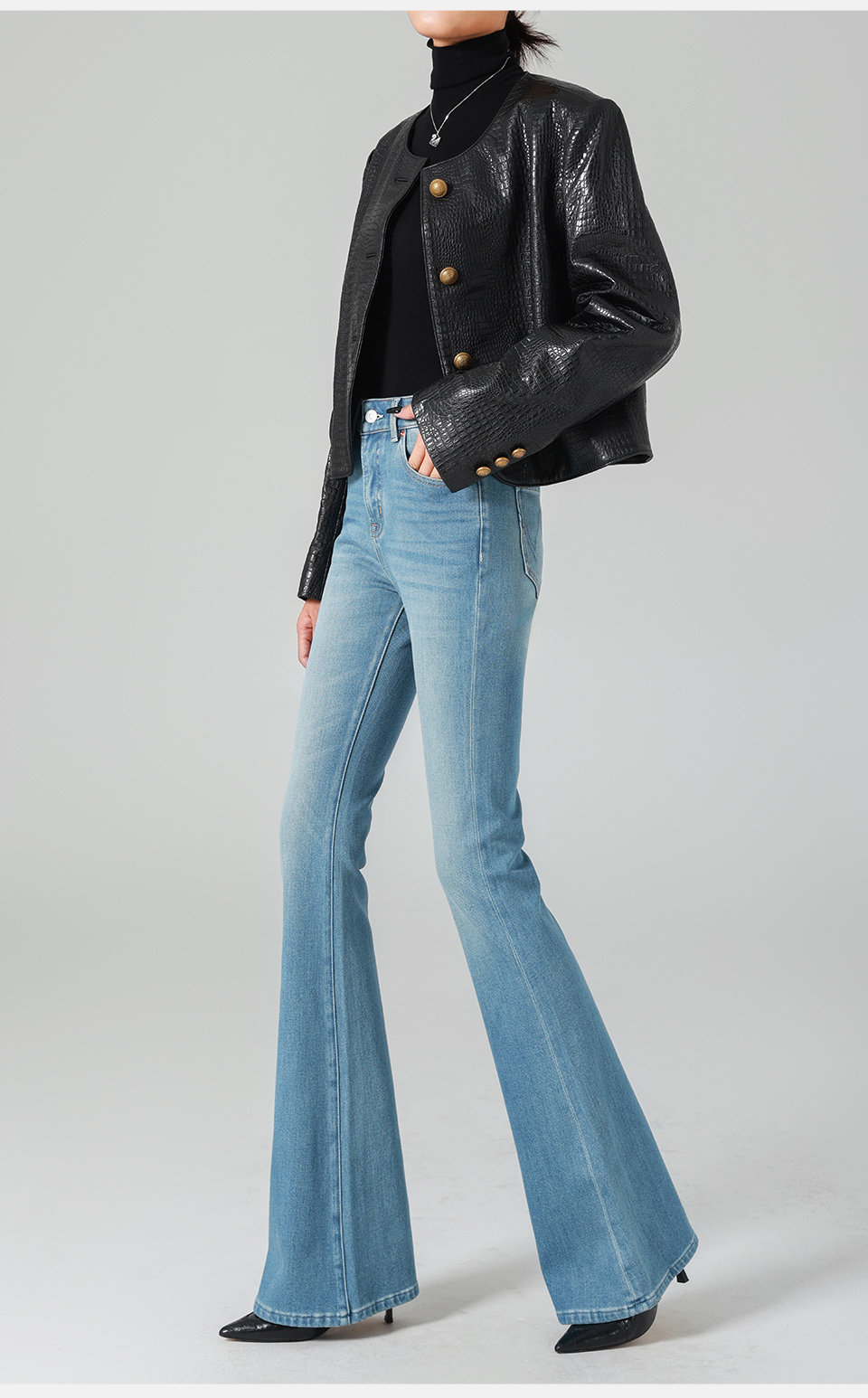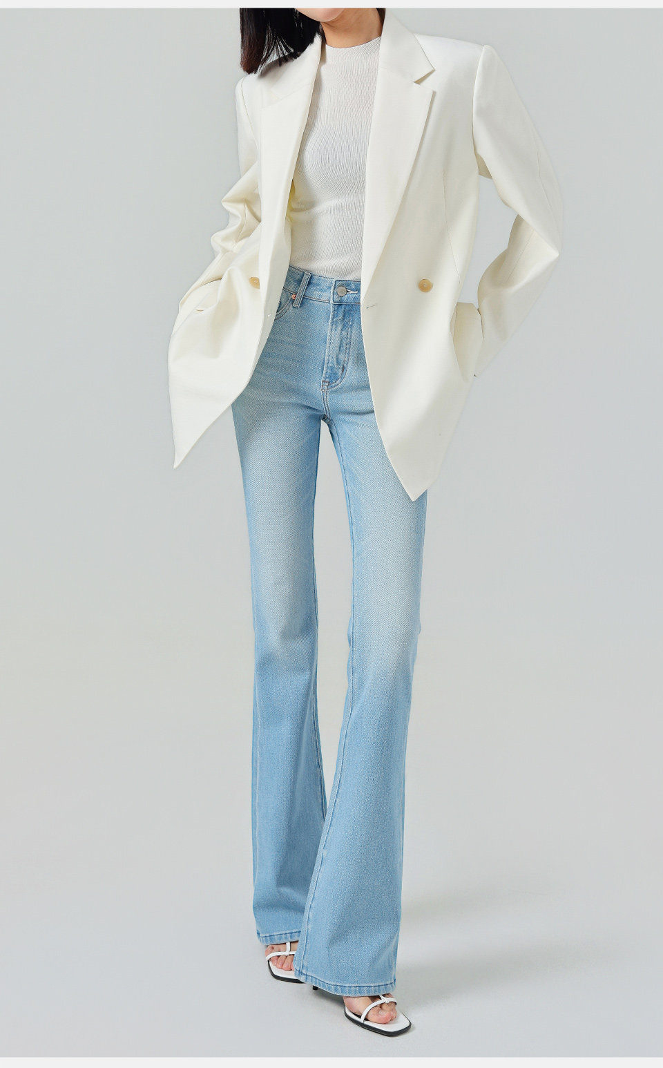 Light Blue Flared Jeans for Women 2025 New High-Waisted Four-Way Stretch Slimming Butt-Lifting Supermodel Pants Versatile and Fashionable