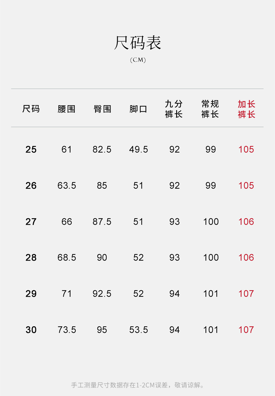Outseam (cm) 99 cm 101.5 cm 104 cm 106.5 cm 109 cm