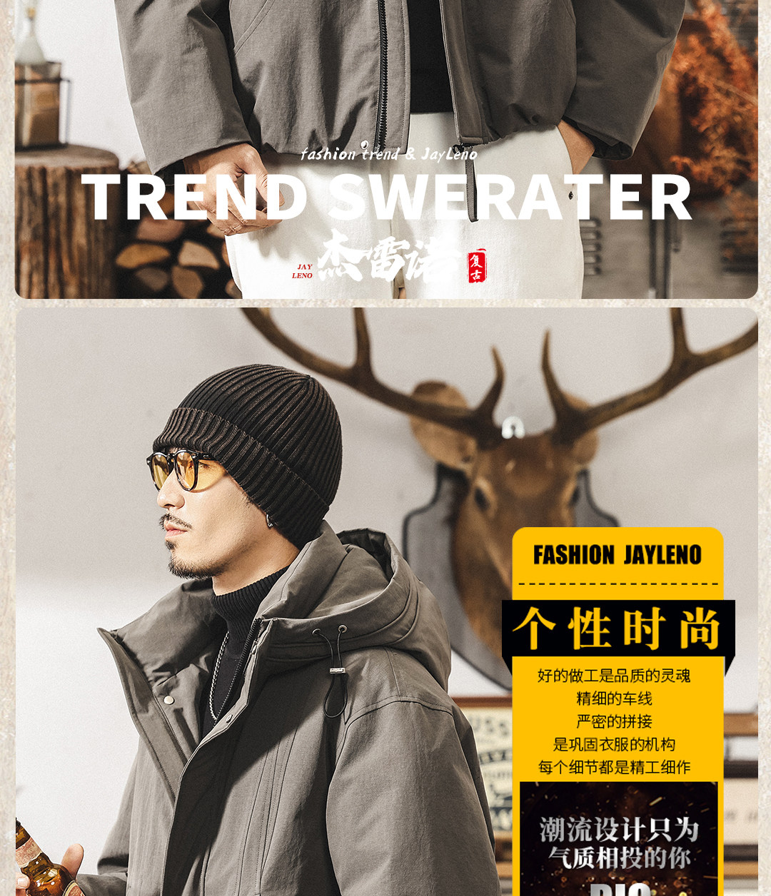 American retro high fluffy 90 white duck down hooded down jacket men's new winter thickened warm jacket