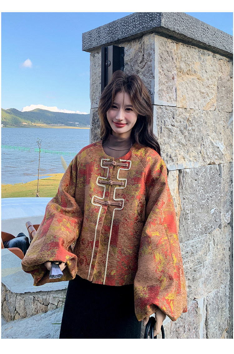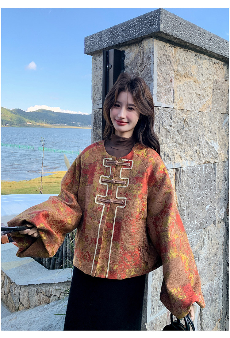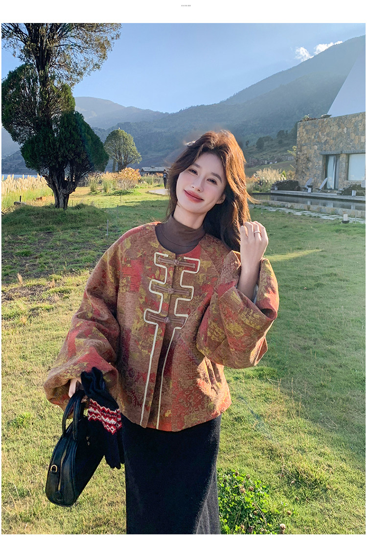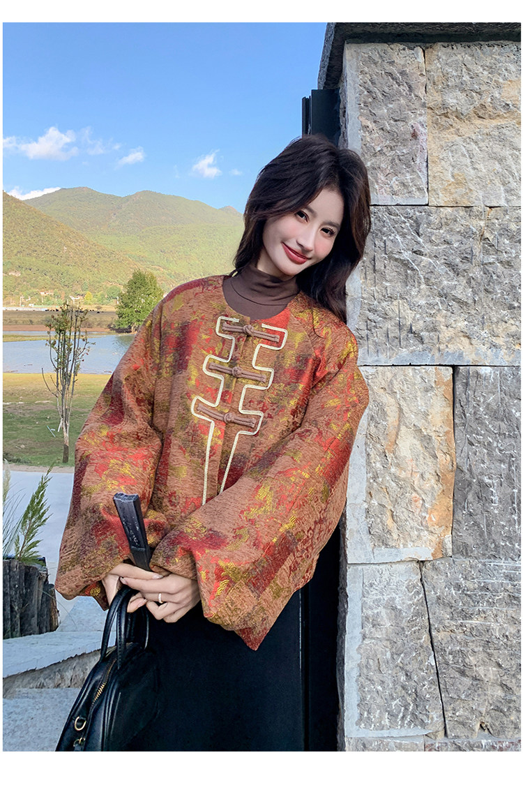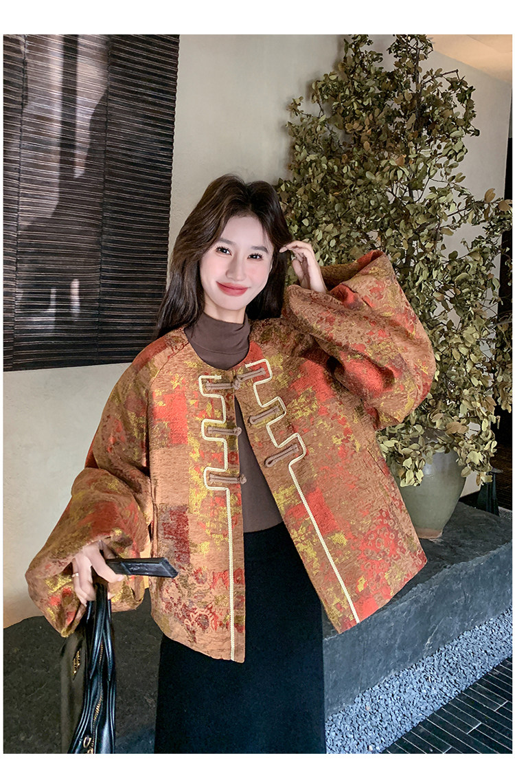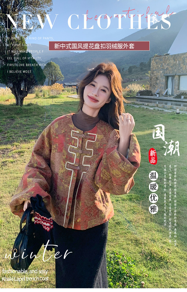 New Chinese-Style Jacquard down Jacket for Women, Winter 2025 New Model, Korean Retro Simple Elegant White Duck down Coat
