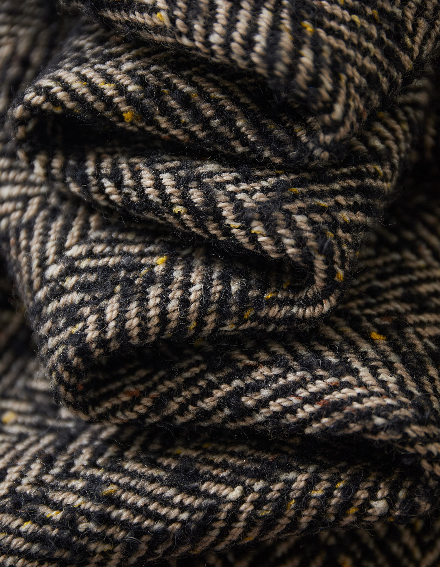 黑与白的纱线以经典的“人”字形轨迹交错层叠