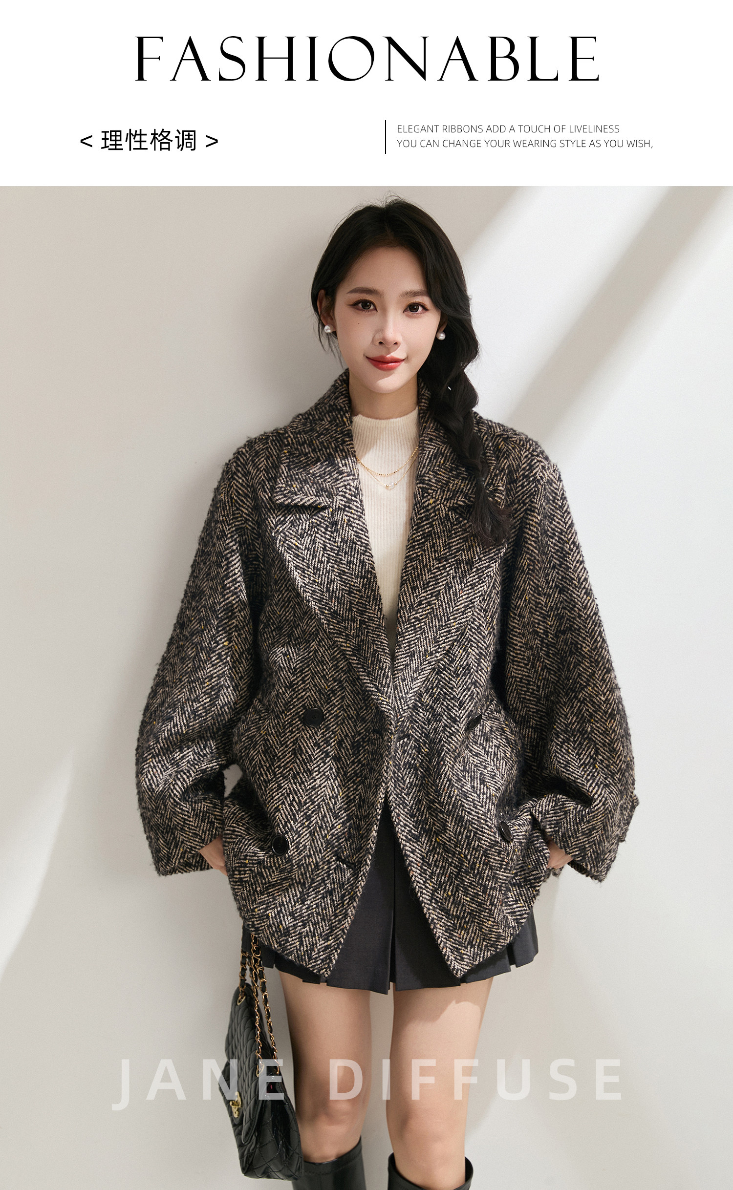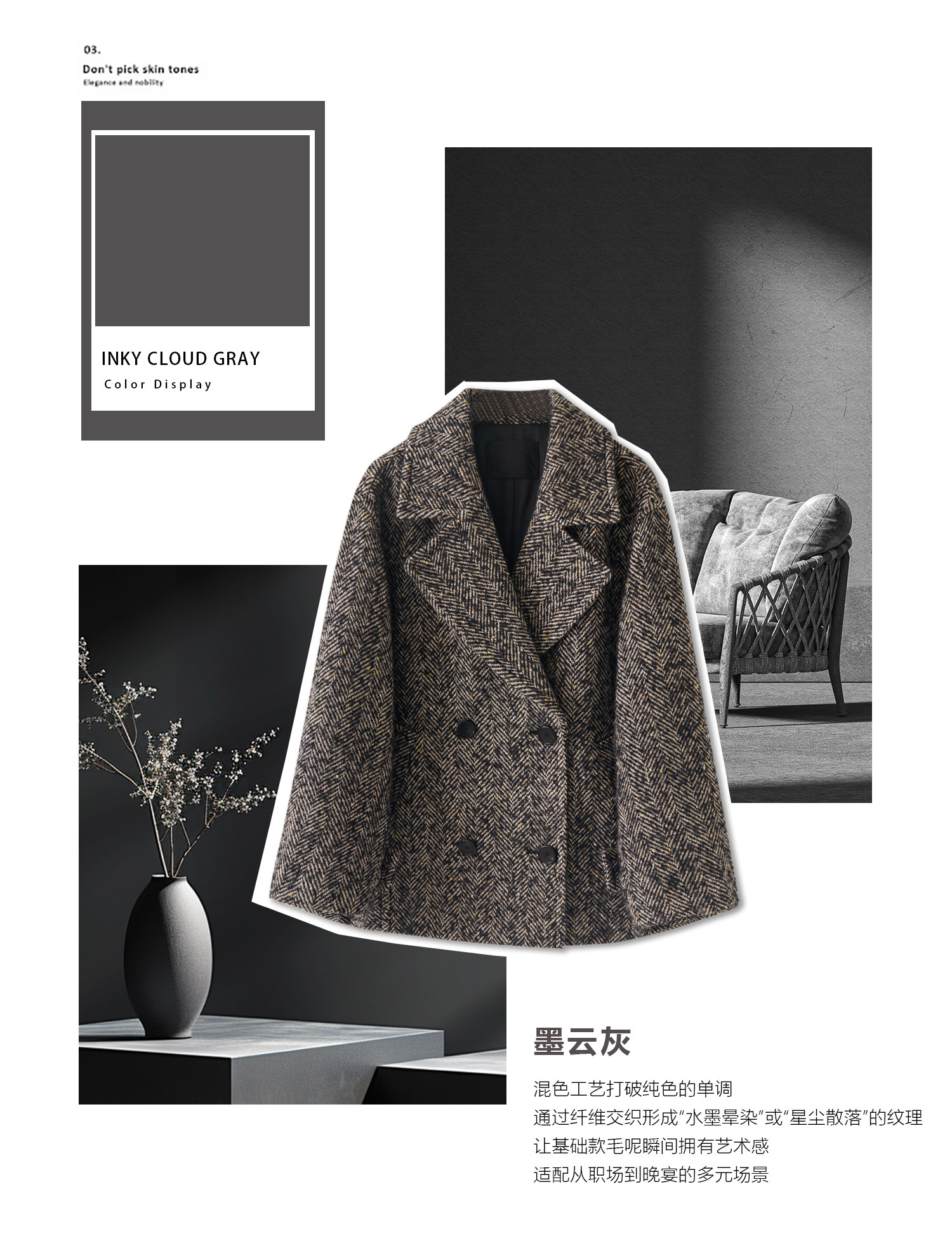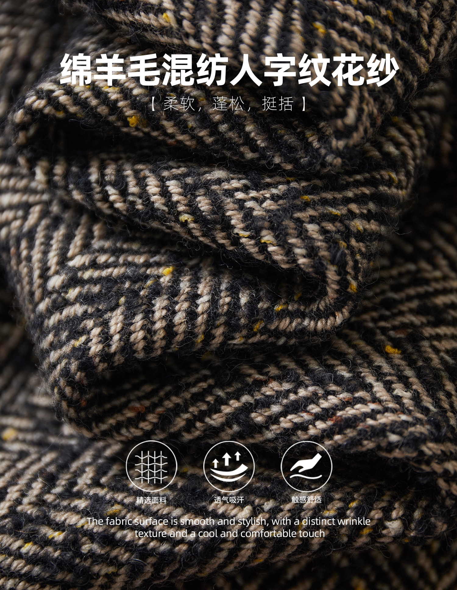 又能触摸到花呢织物独有的、略带粗砺的肌理感