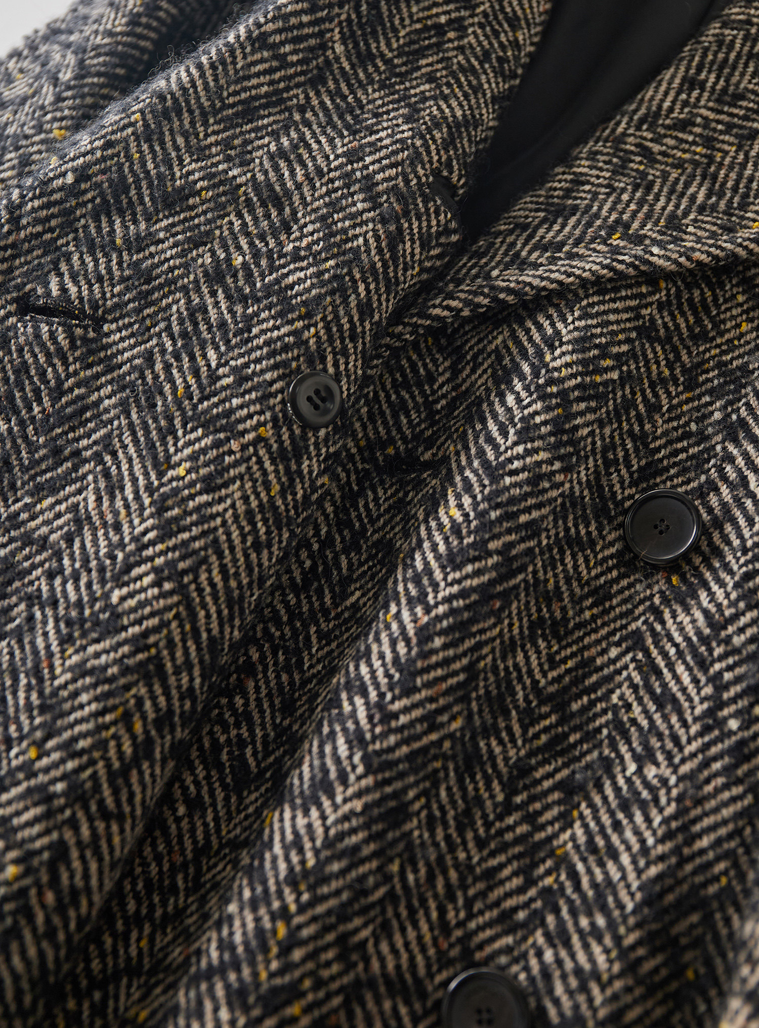 黑白纱线交织的人字纹肌理搭配斑驳的花色点点纱