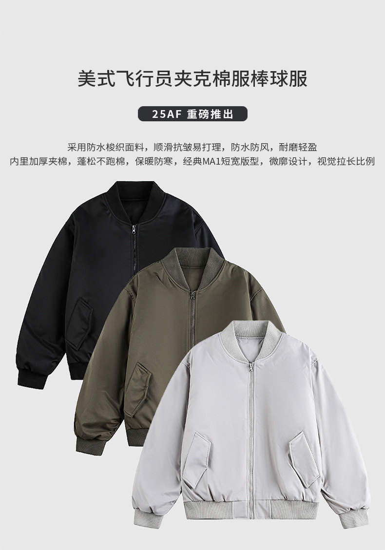 Pure American style MA-1 bomber jacket for men in autumn and winter thickened and warm retro thickened cotton baseball collar jacket