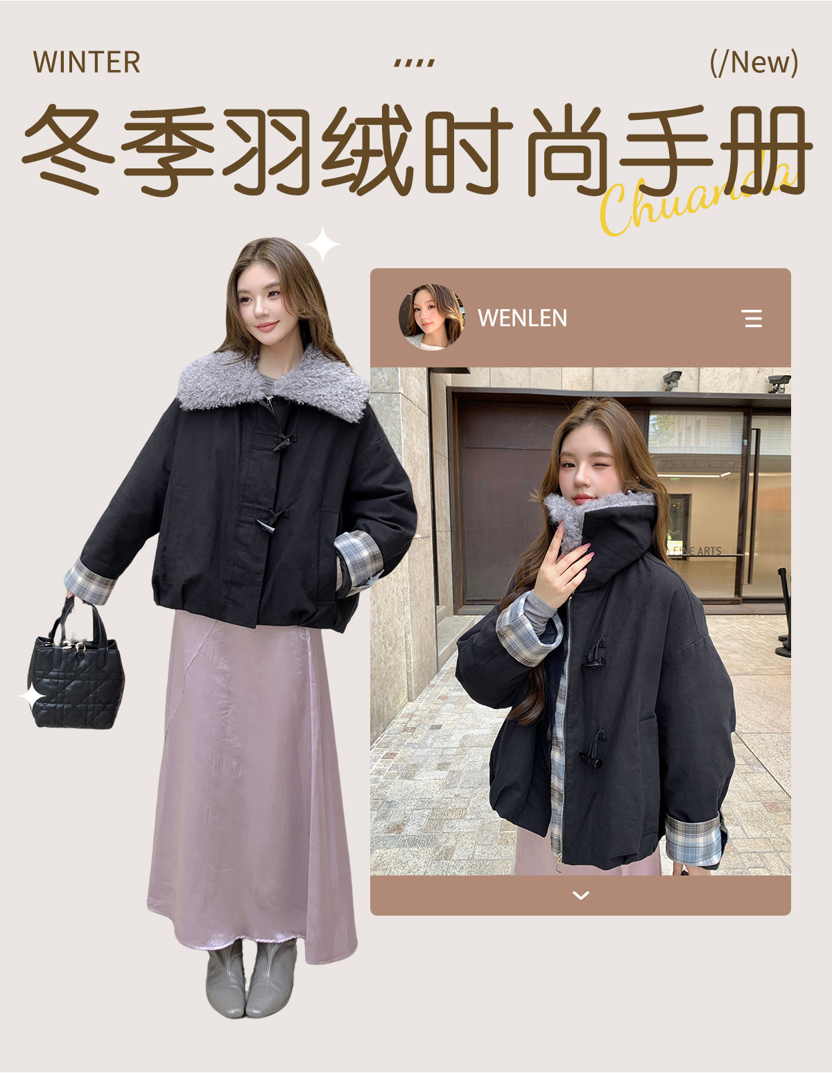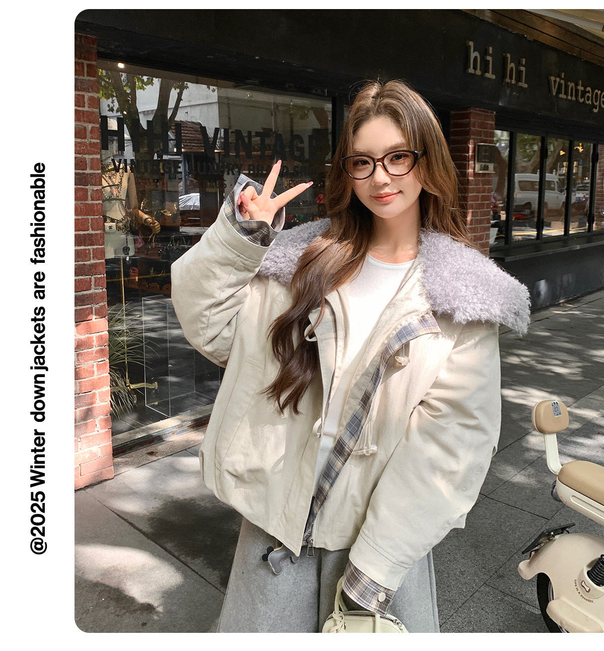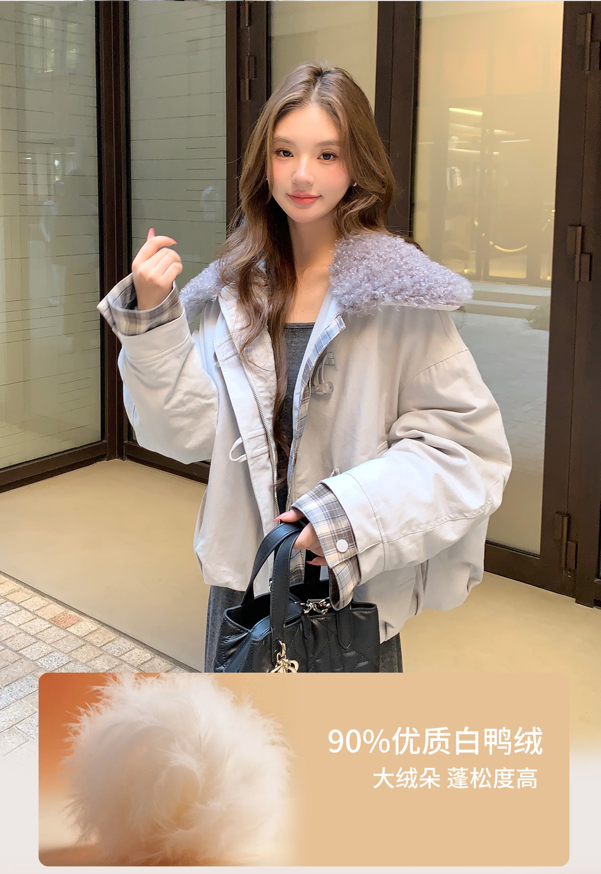 Girls short fashionable jacket 2025 winter new white duck down down jacket large fur collar flight jacket