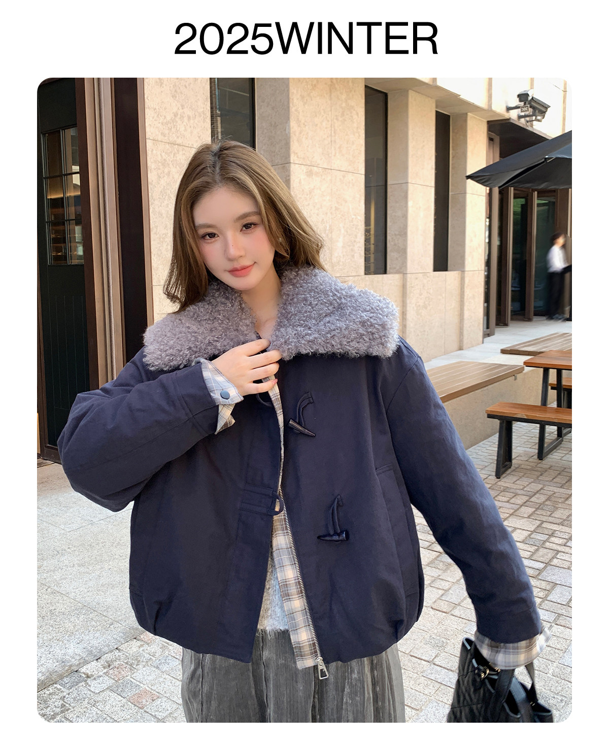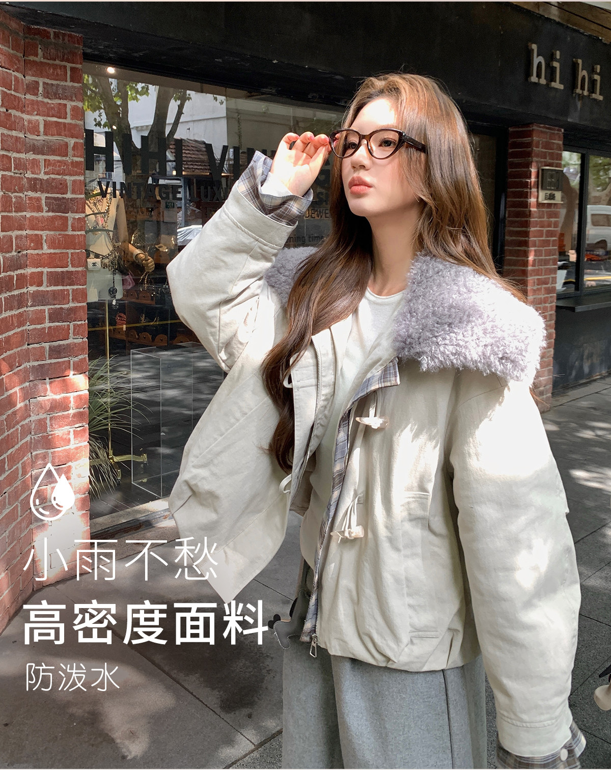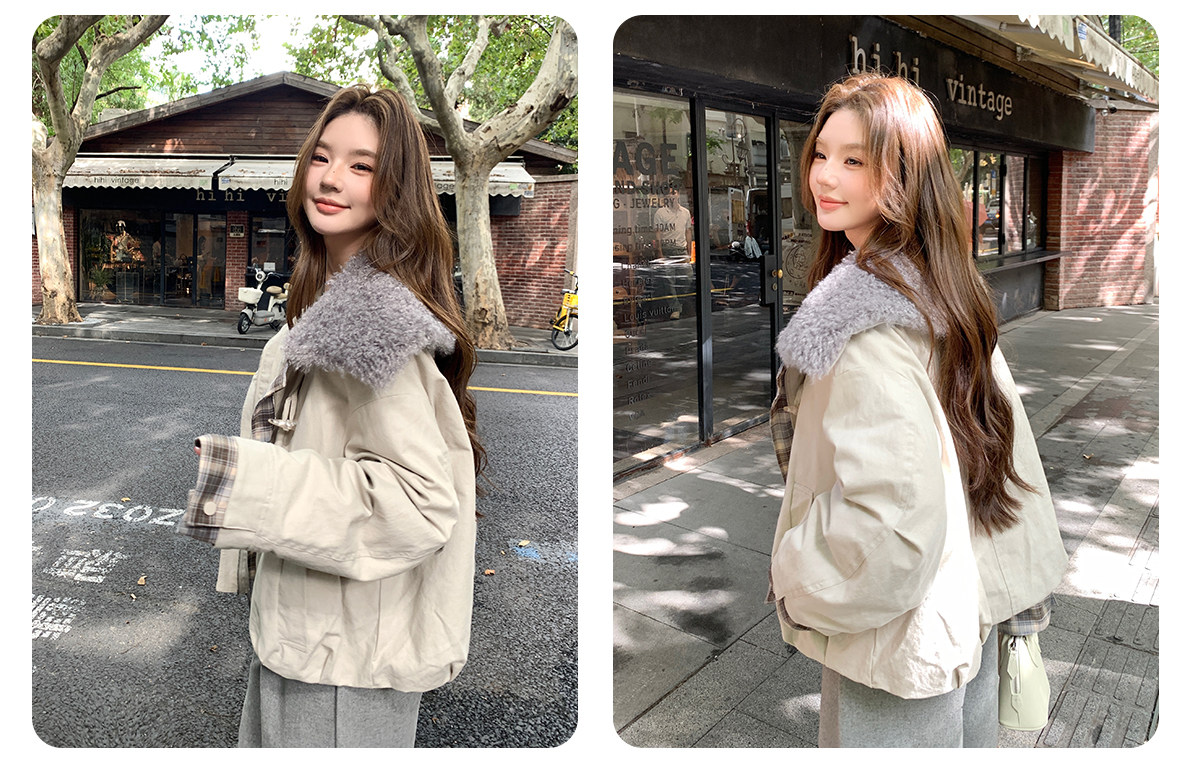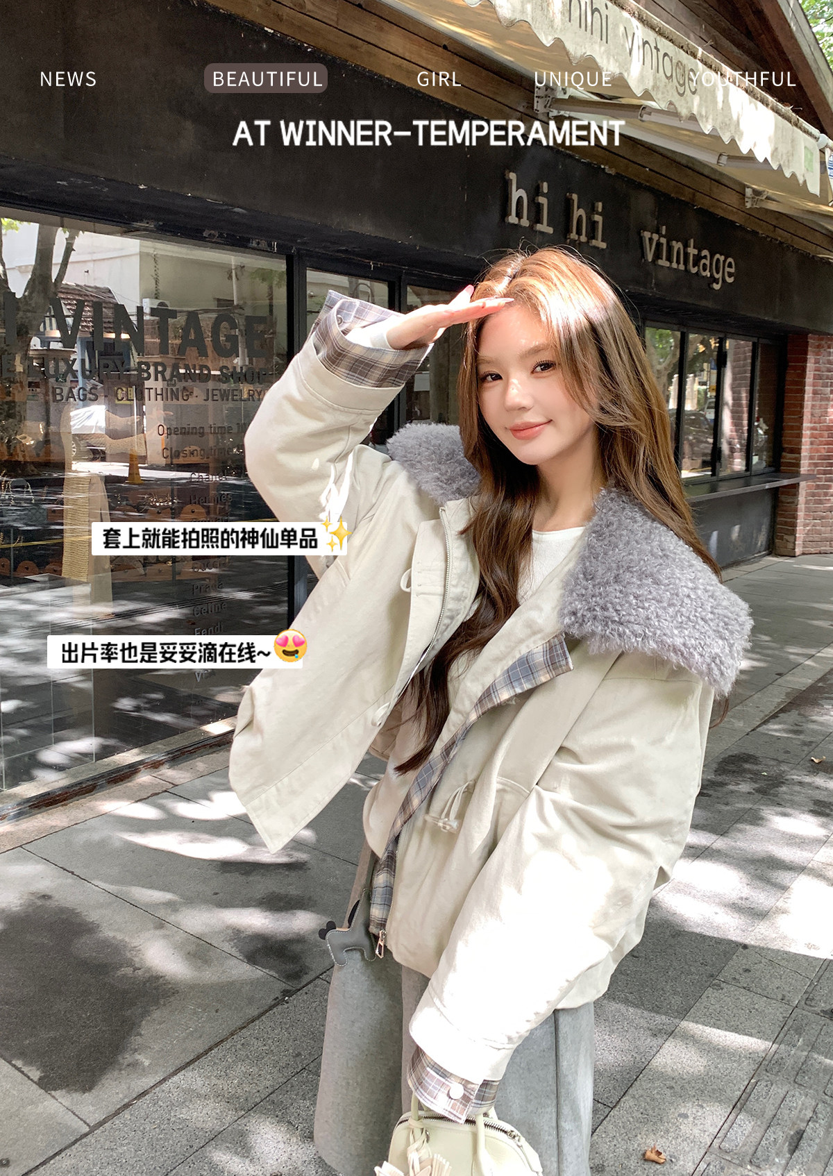 Girls short fashionable jacket 2025 winter new white duck down down jacket large fur collar flight jacket
