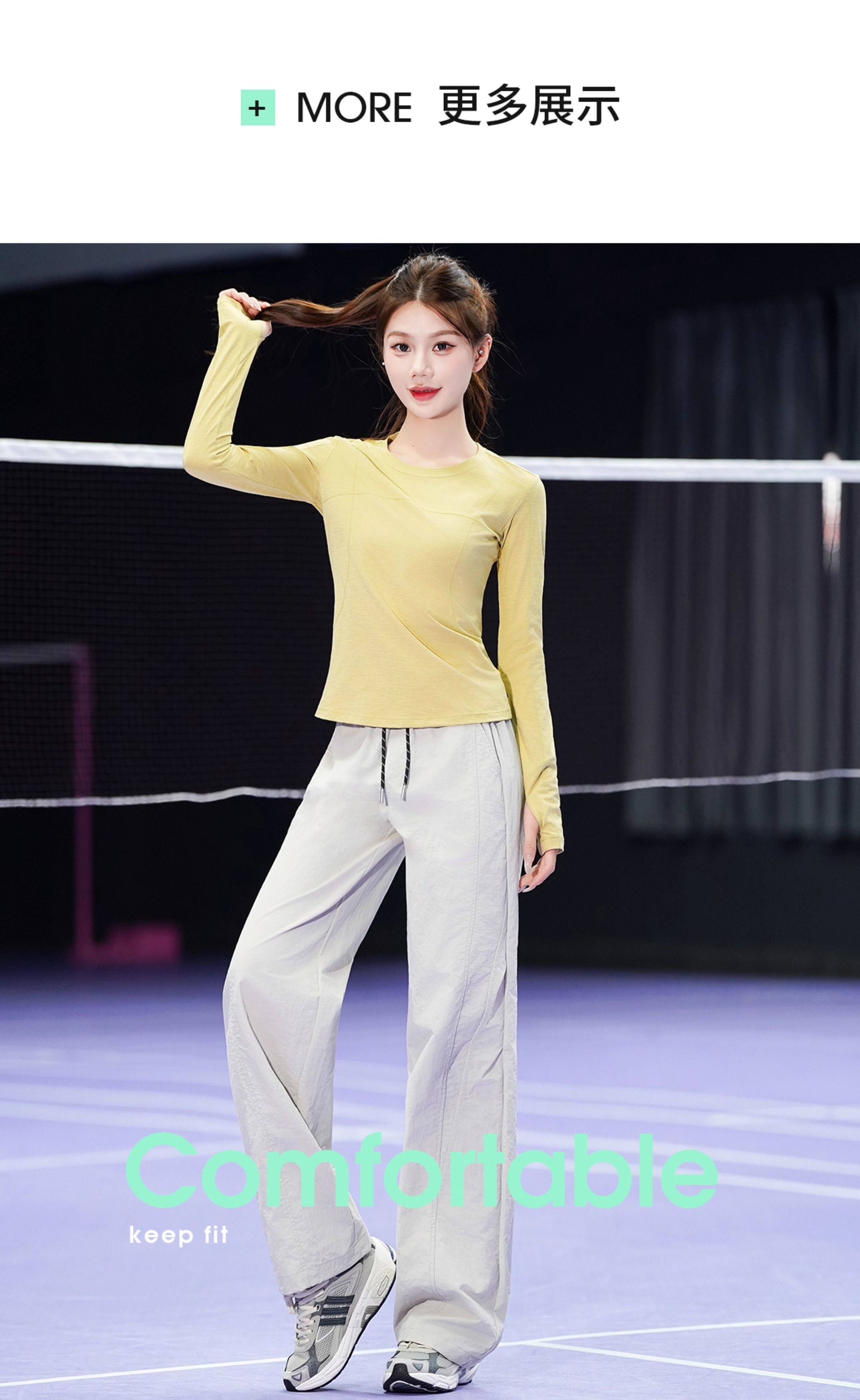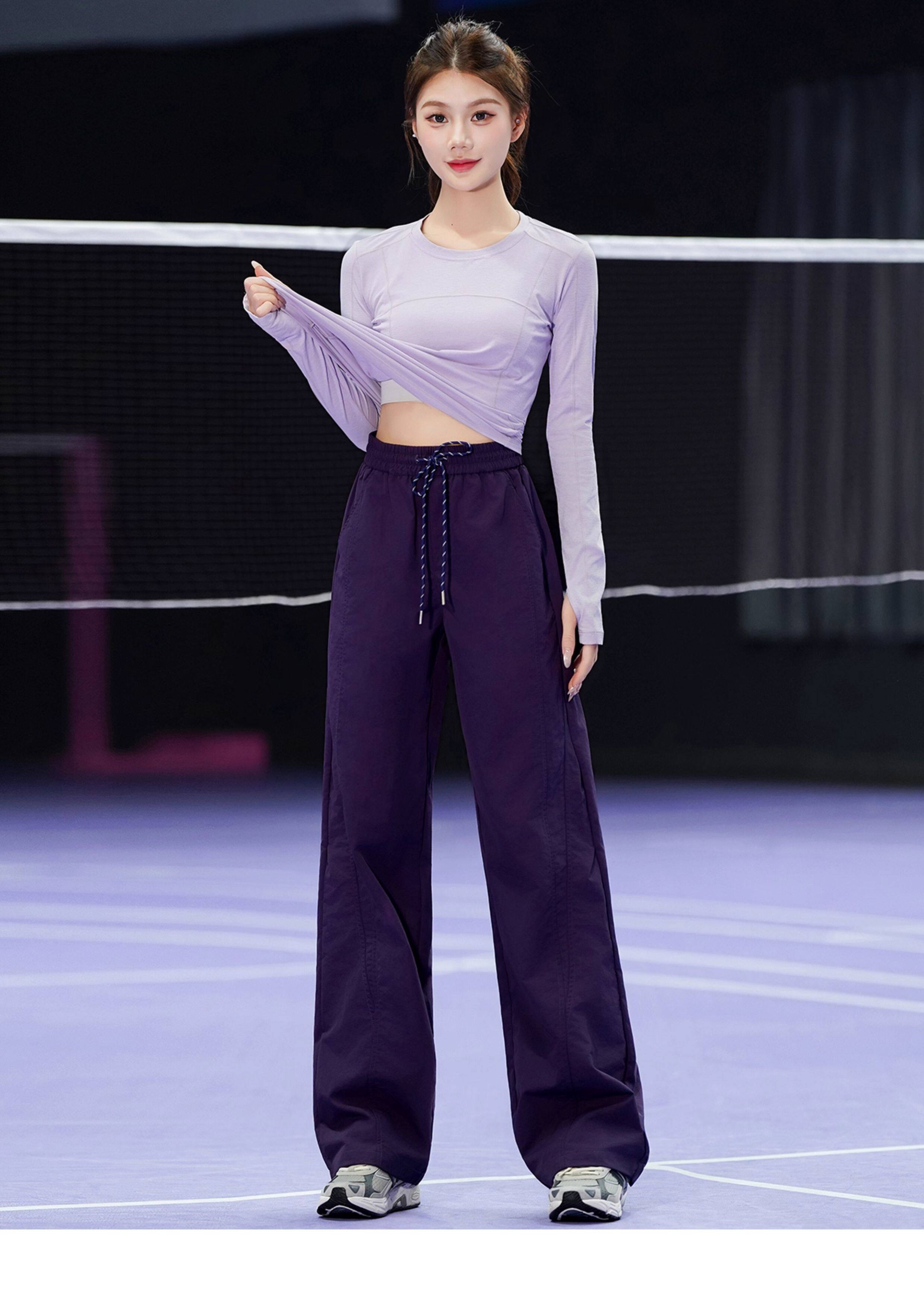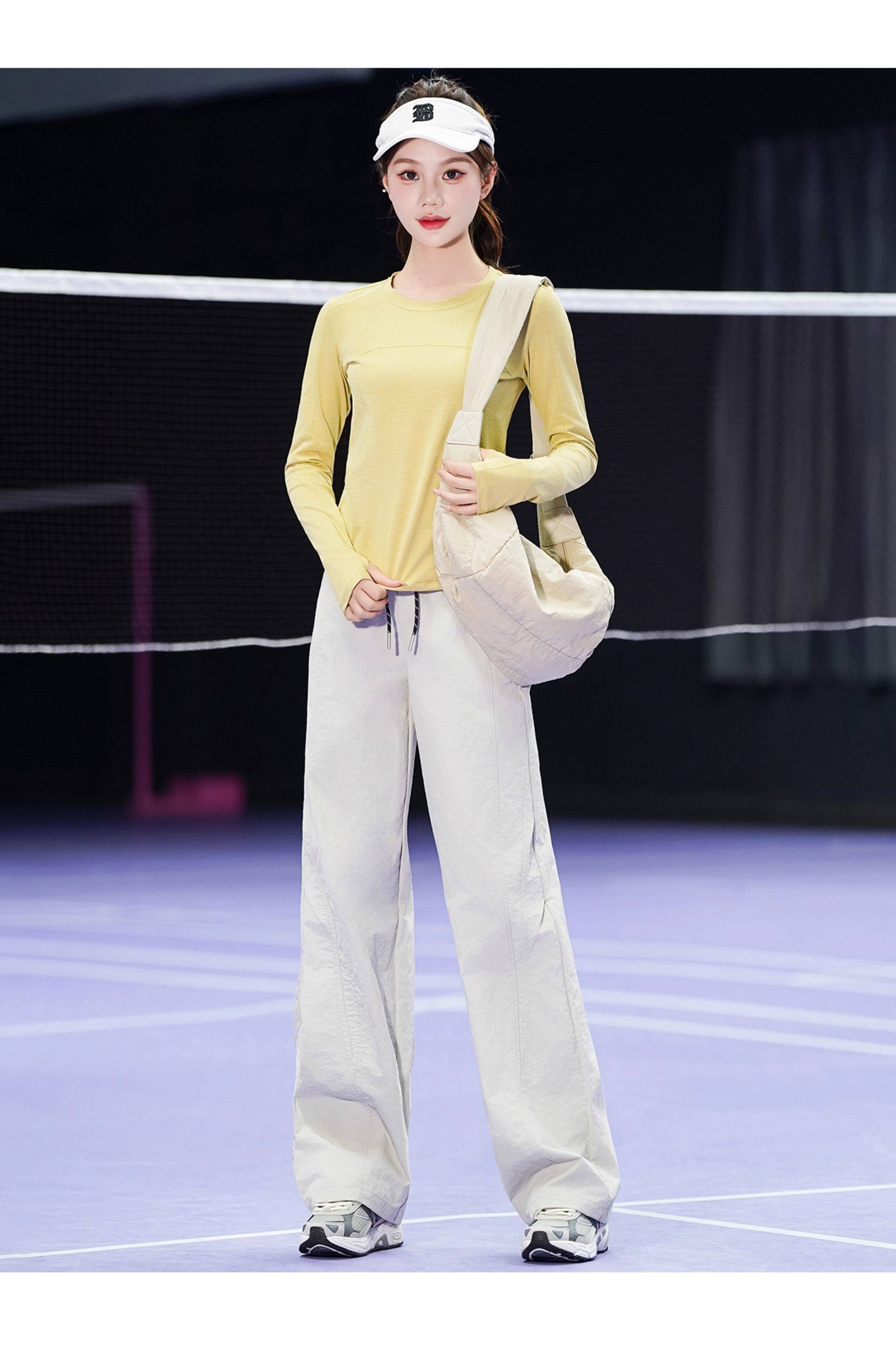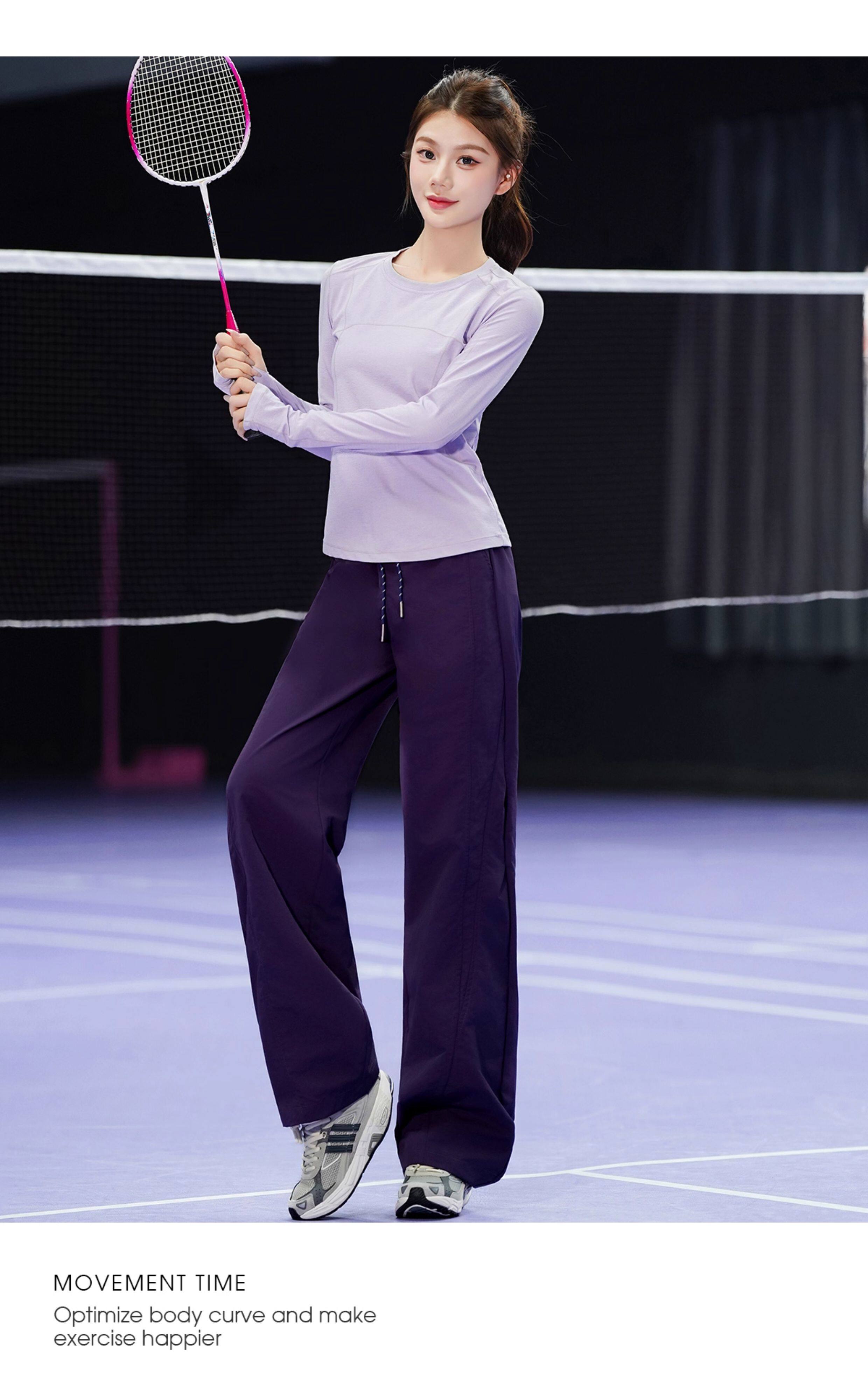 Badminton Suit for Women, Spring Long-Sleeved Top, Wide-Leg Pants, Casual Sportswear, Quick-Drying Clothing, Gym Running Clothing