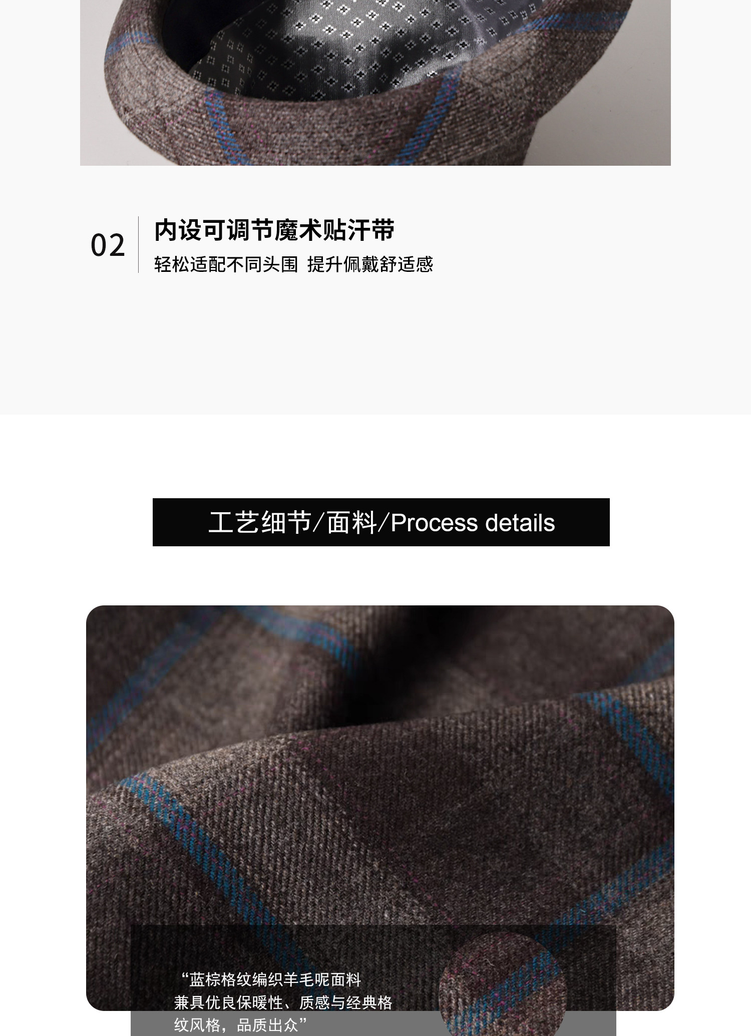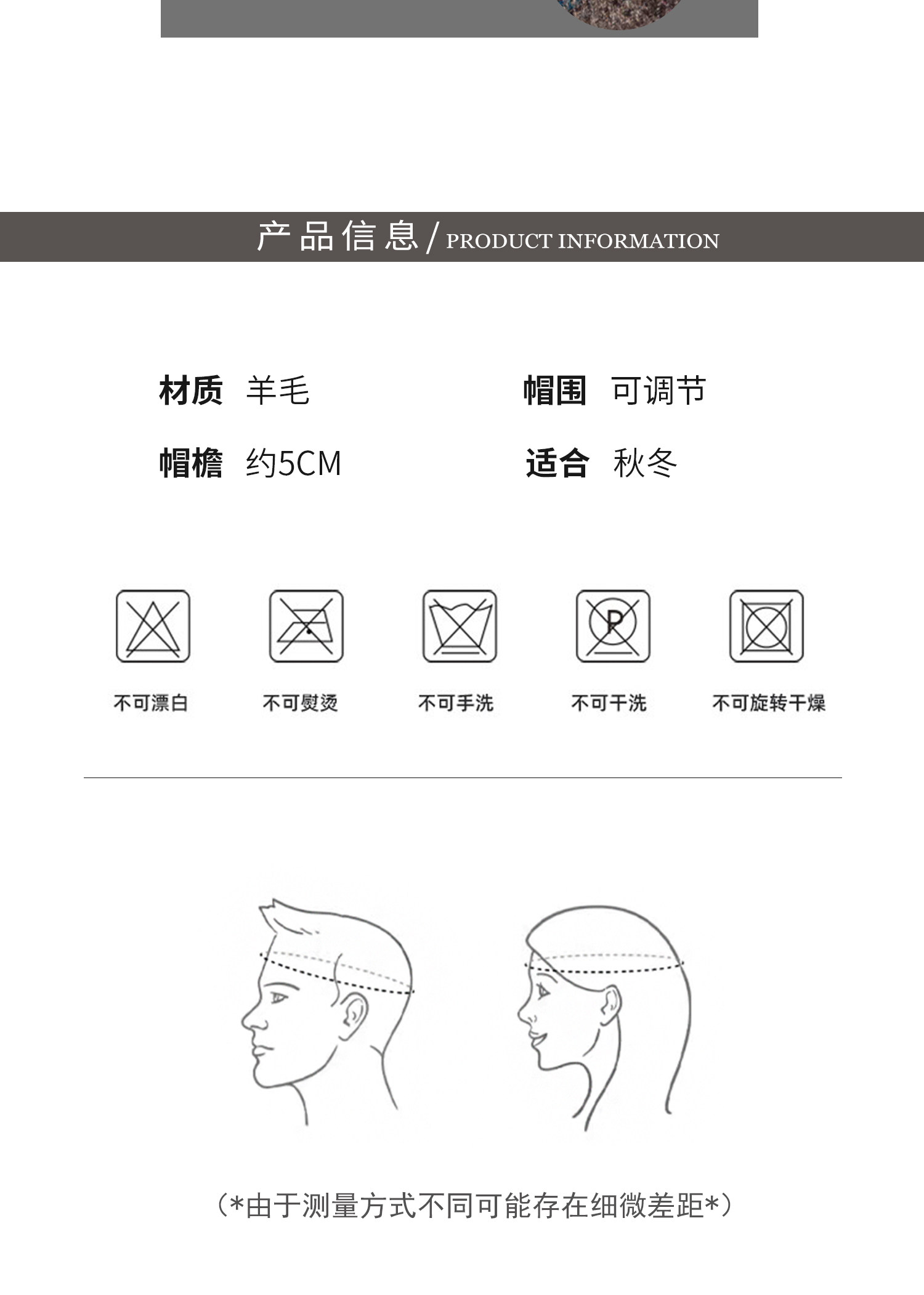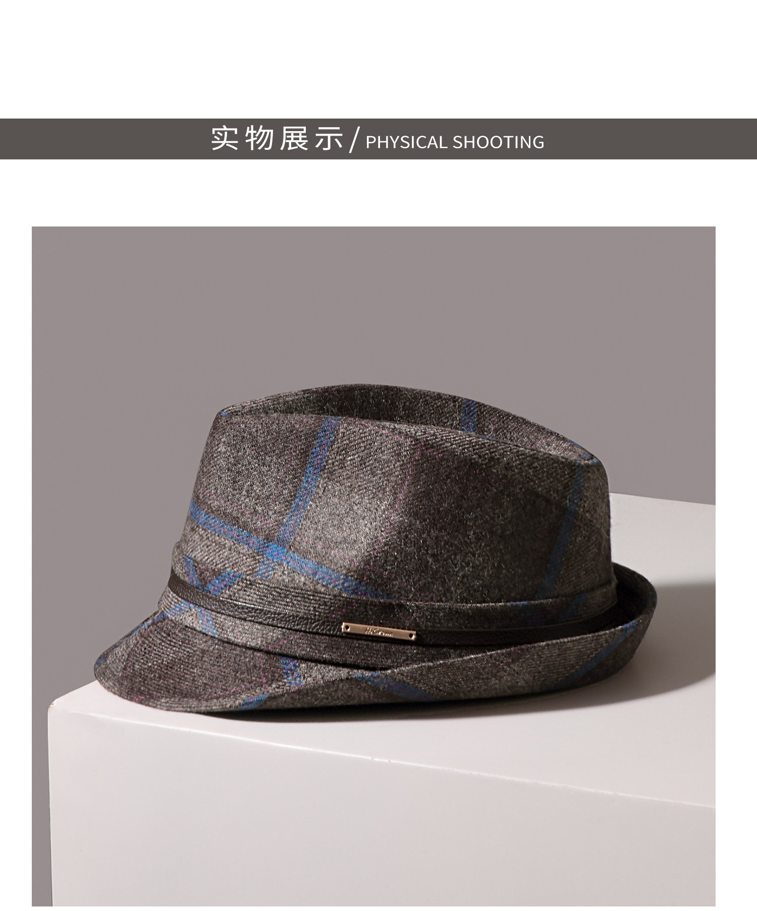 British style patterned wool top hat men's autumn and winter retro curly hat large head circumference gentleman jazz hat travel