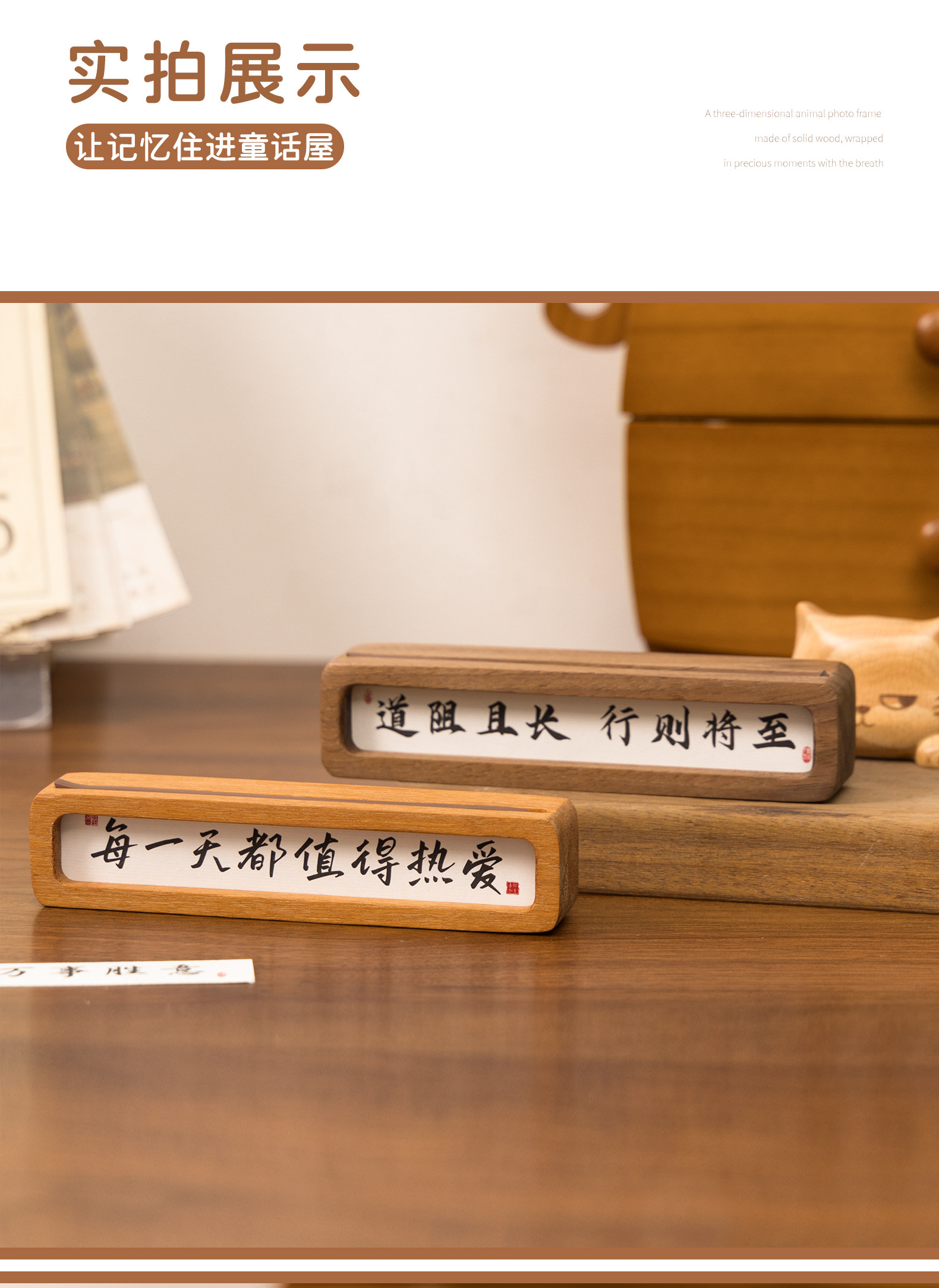 Black Walnut Mini Photo Frame, High-End Creative Calligraphy Display Stand, Cute Gift, Solid Wood Cultural and Creative DIY Car Decoration
