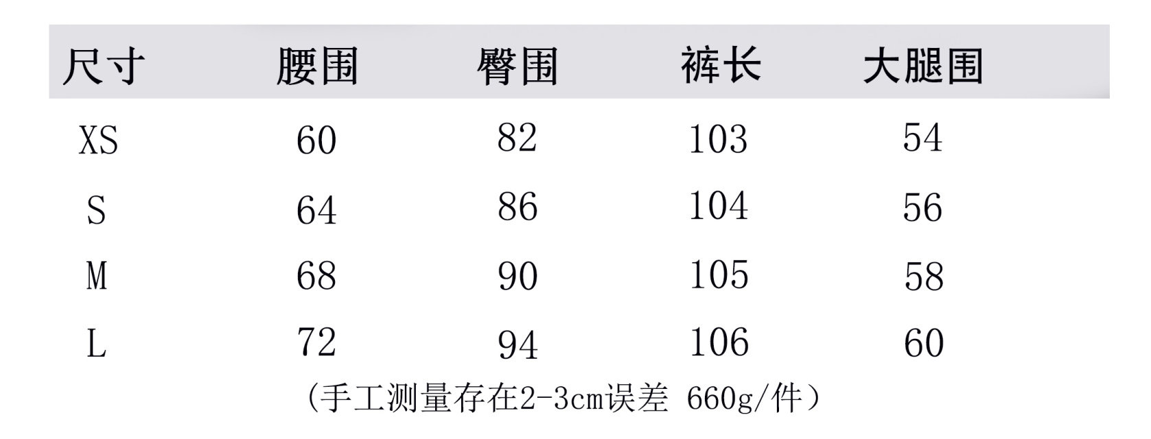Outseam (cm) 99 cm 101.5 cm 104 cm 106.5 cm 109 cm