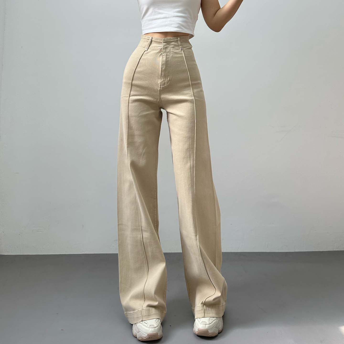 2026 New Ultra High Waist Stitched Loose Straight Wide Leg Jeans Slimming Versatile Stretch Mild Pants Women