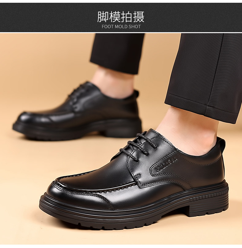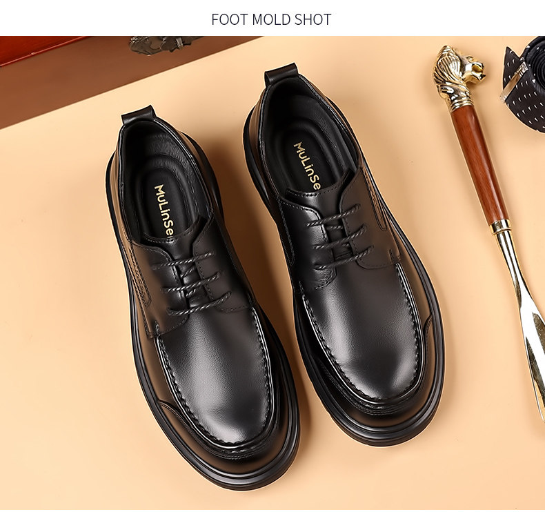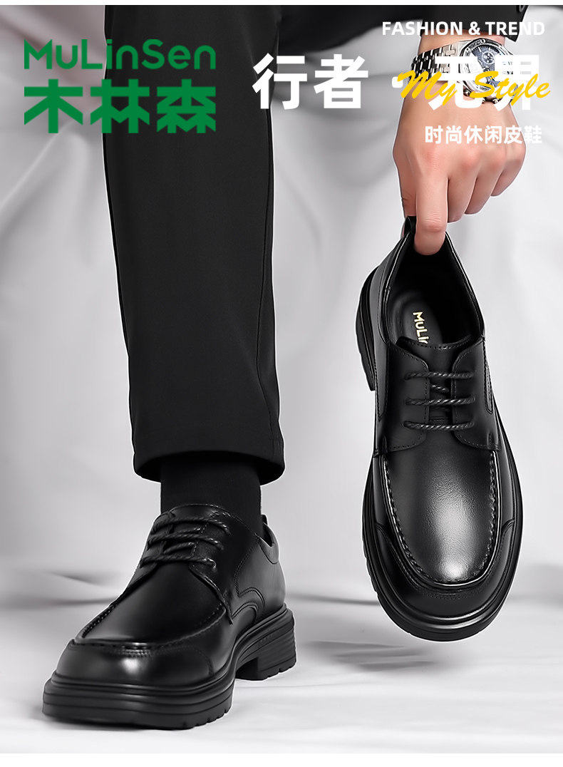 Mulinsen leather shoes men's genuine leather top layer cowhide formal business casual shoes autumn and winter lace-up versatile derby shoes