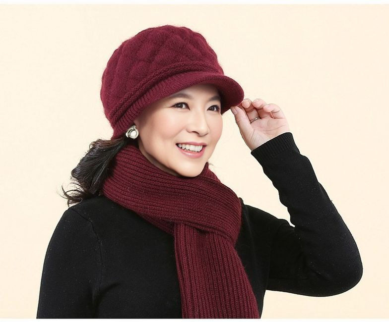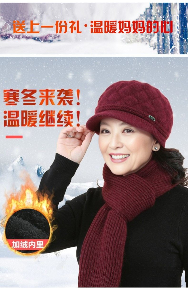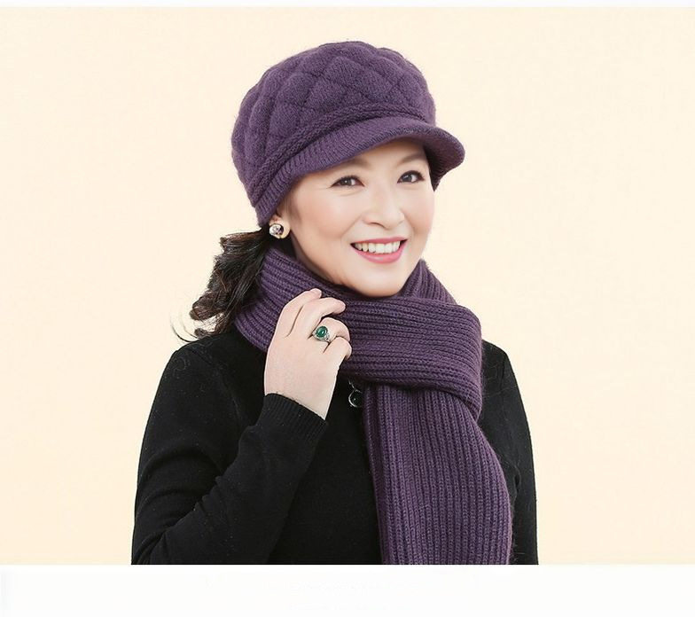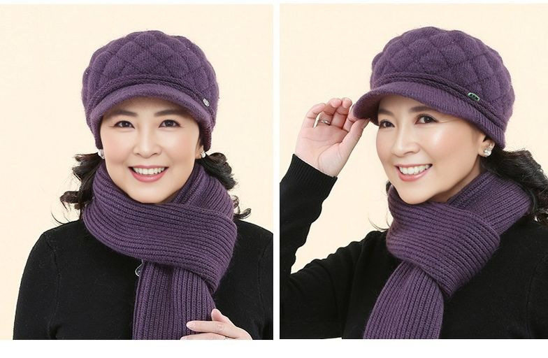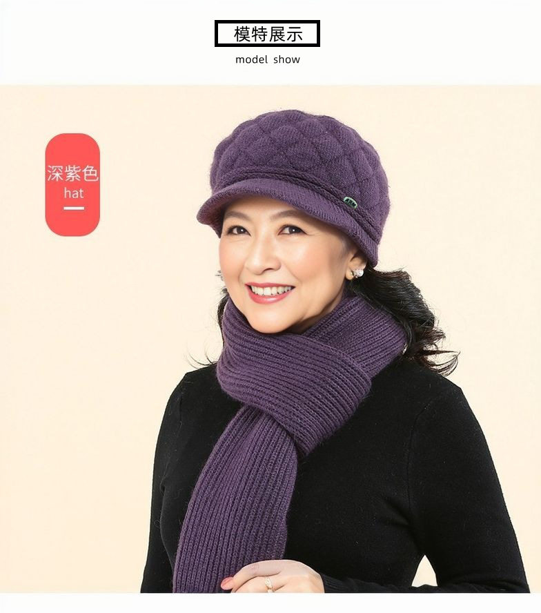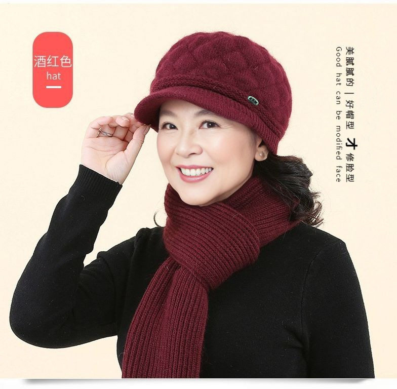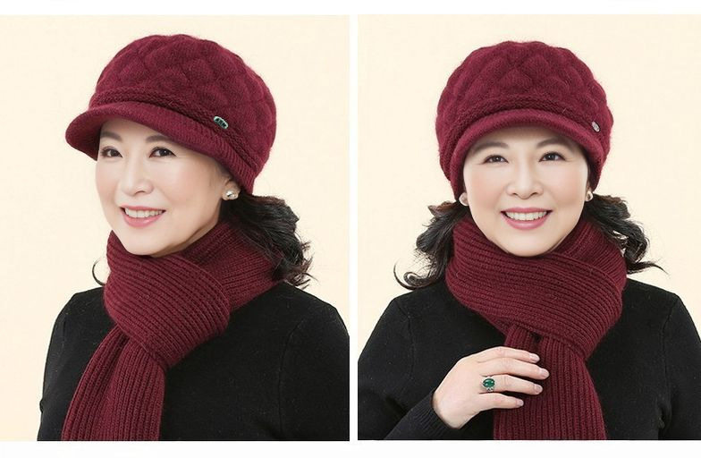 New Style Mom Hat for Middle-Aged and Elderly People, Warm Hat and Scarf All-In-One, Thickened for Warmth and Cold Protection, Grandma Hat, Beret for Women