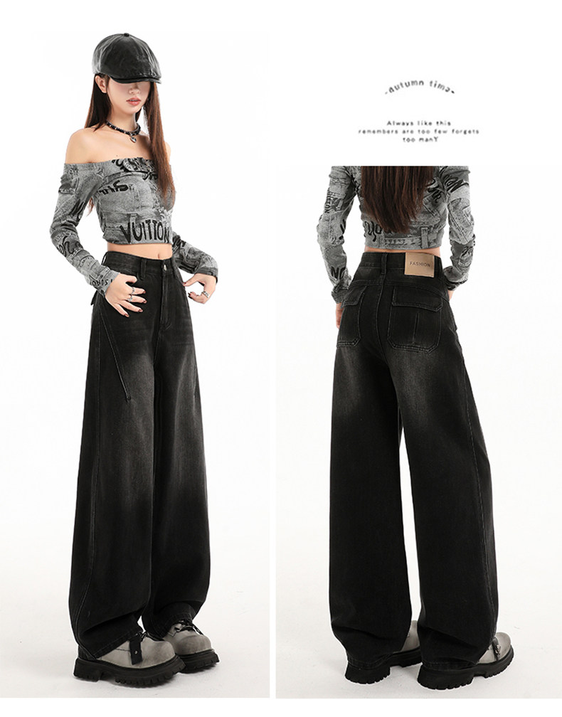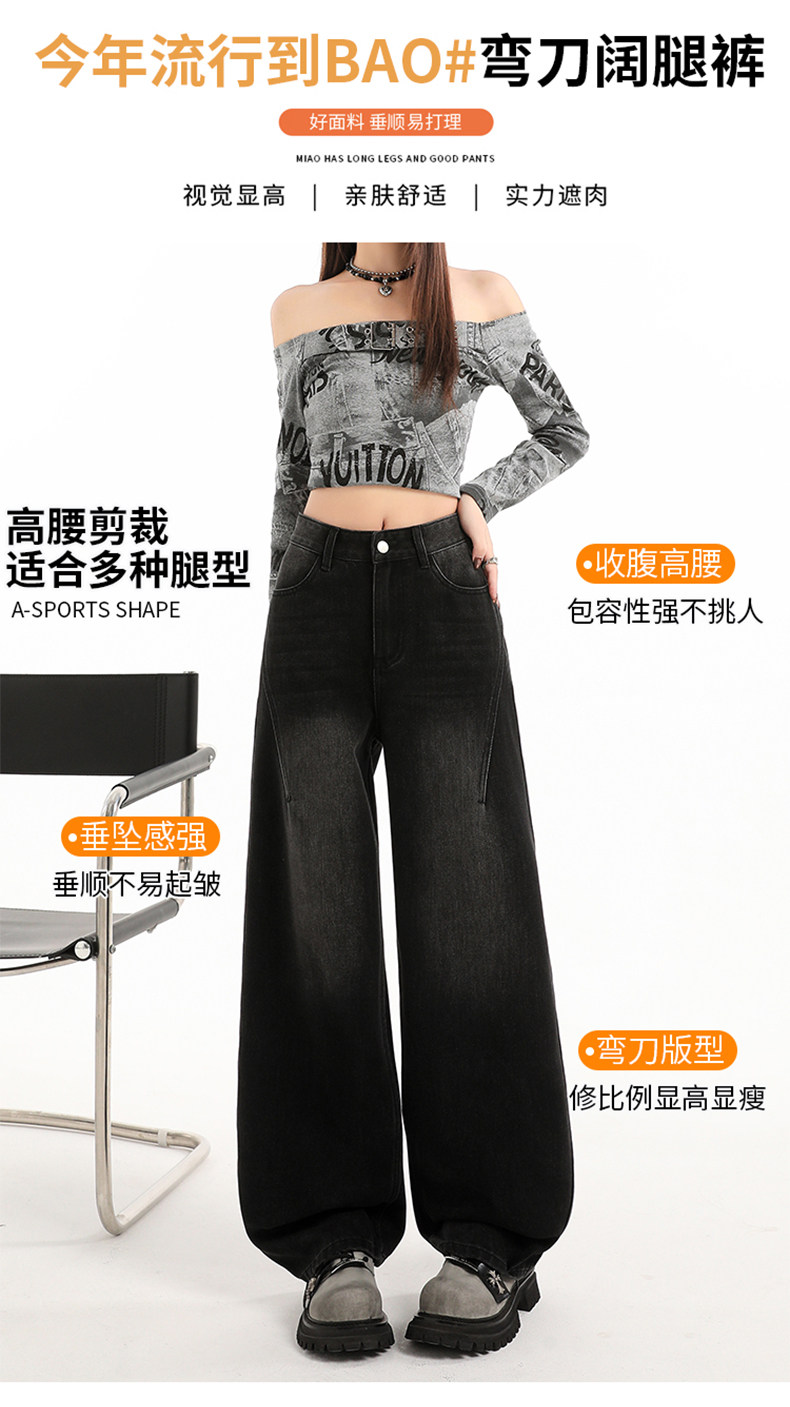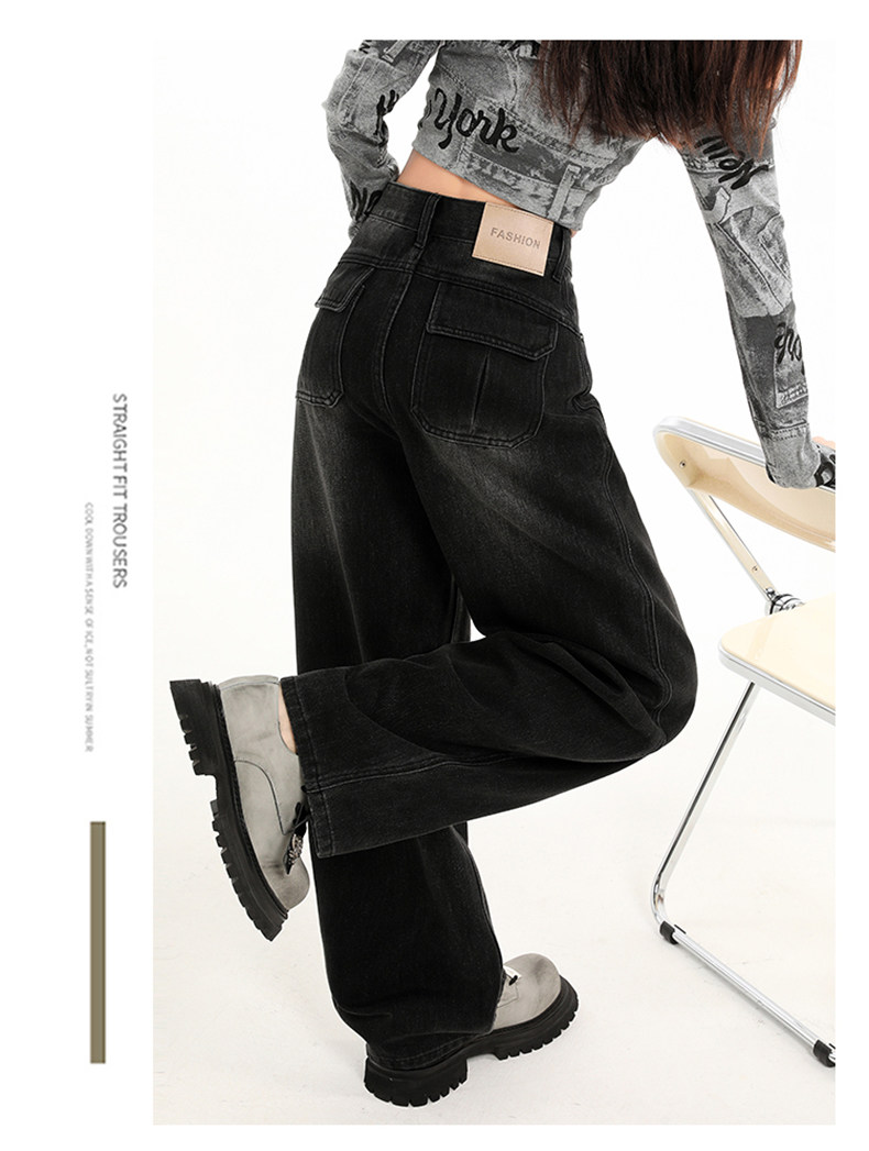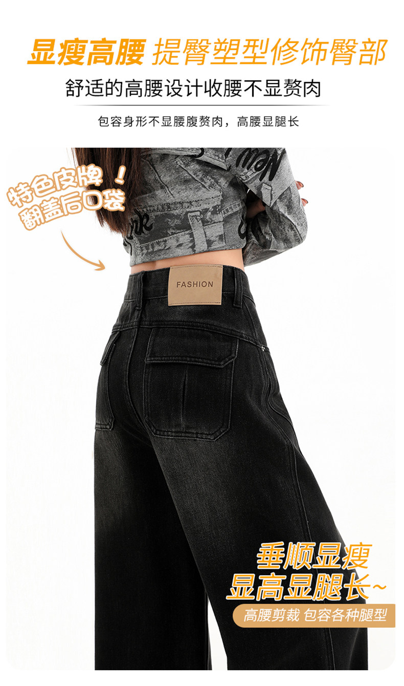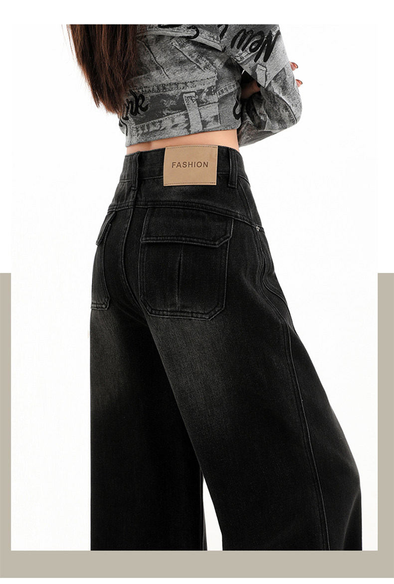 Minimalist Style Black High-Waisted Wide-Leg Jeans for Women, Loose Fit, Slimming Straight Cut, High-End Feel, Warm, Fleece-Lined, Thickened Pants