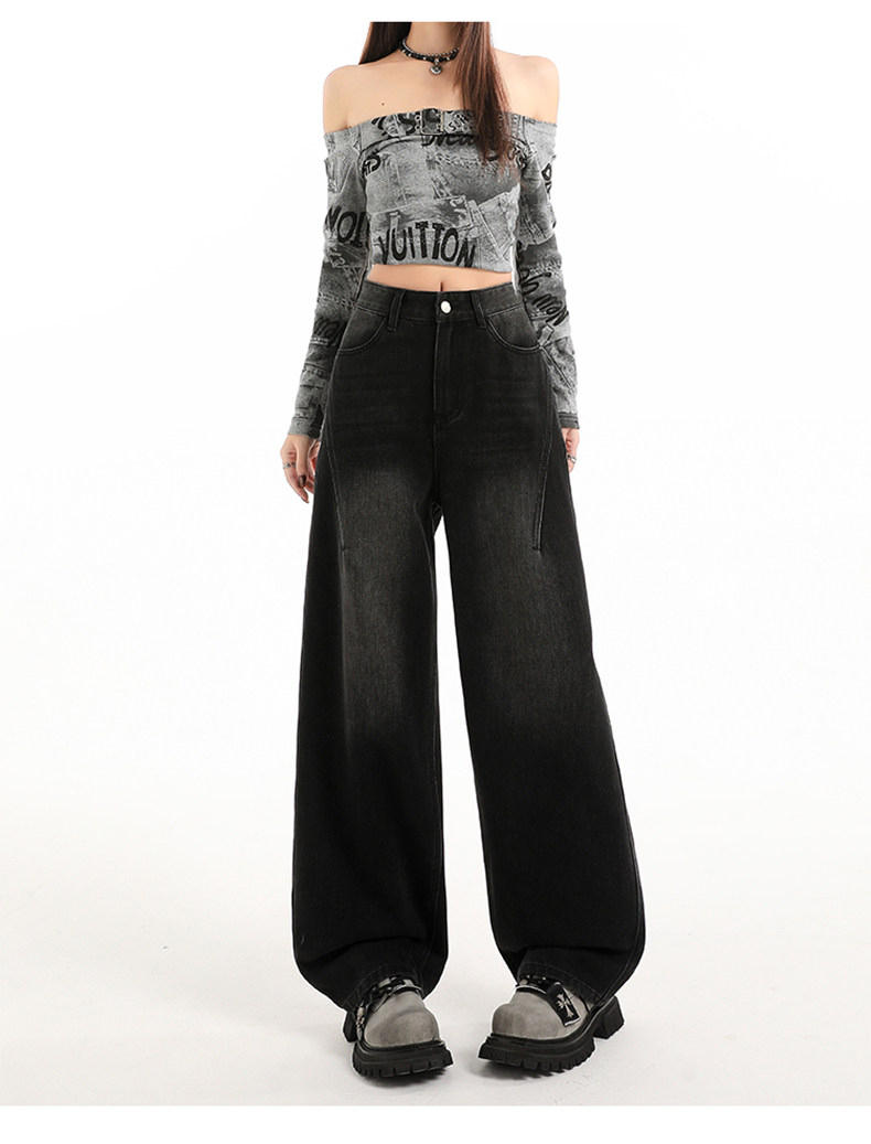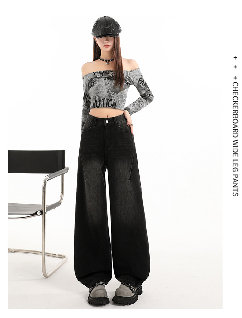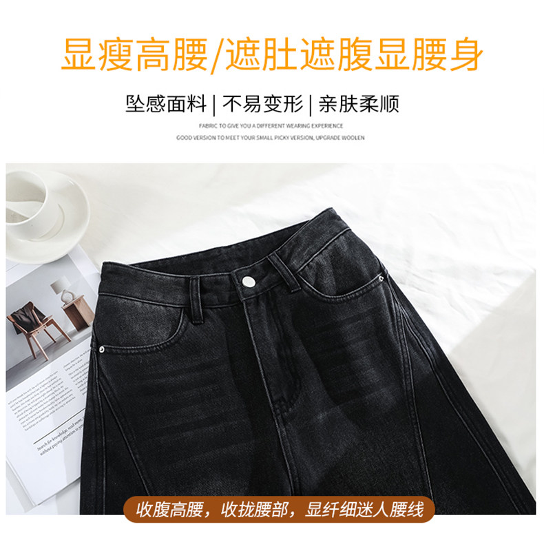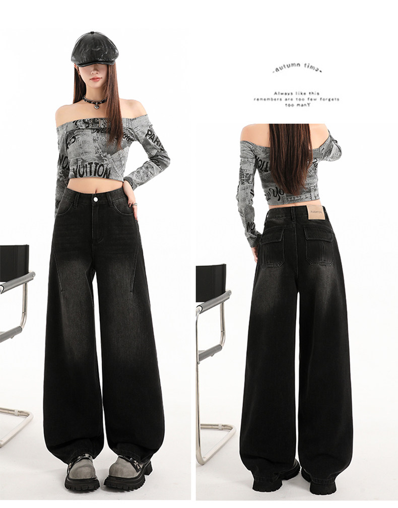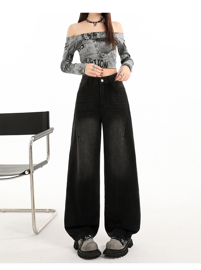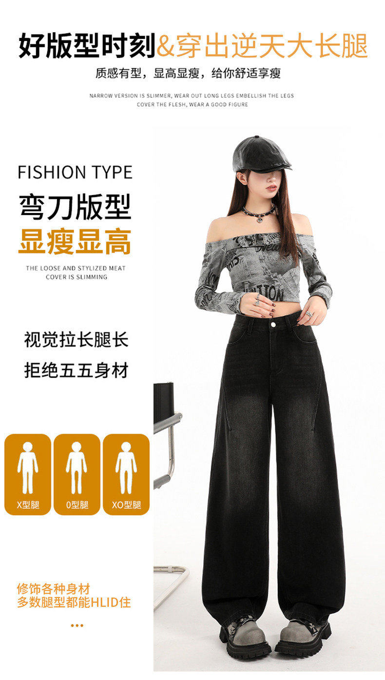 Minimalist Style Black High-Waisted Wide-Leg Jeans for Women, Loose Fit, Slimming Straight Cut, High-End Feel, Warm, Fleece-Lined, Thickened Pants