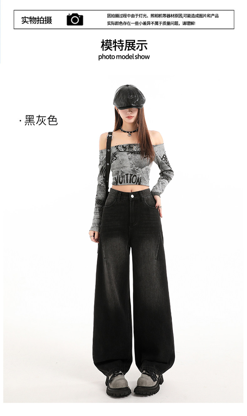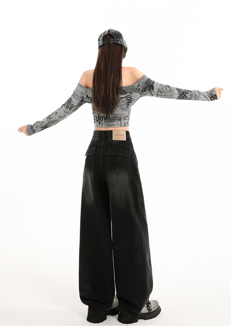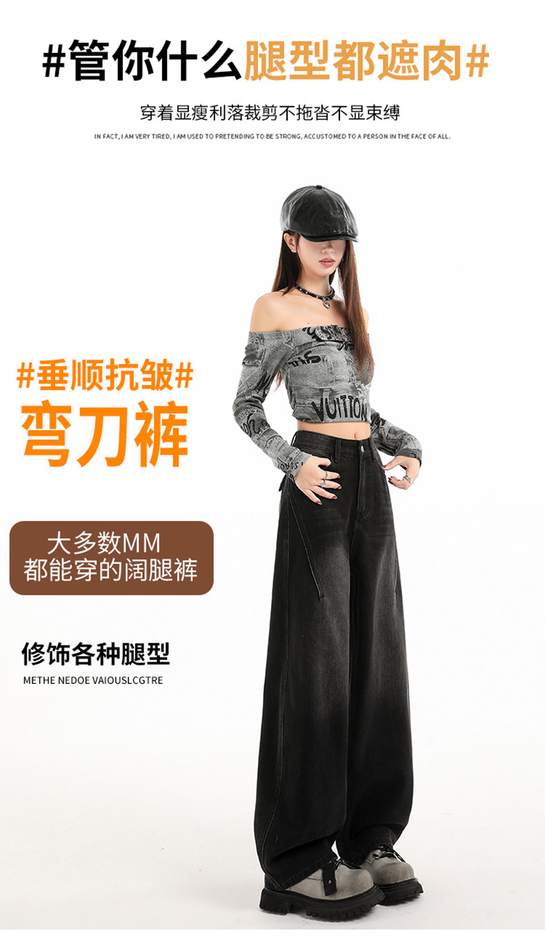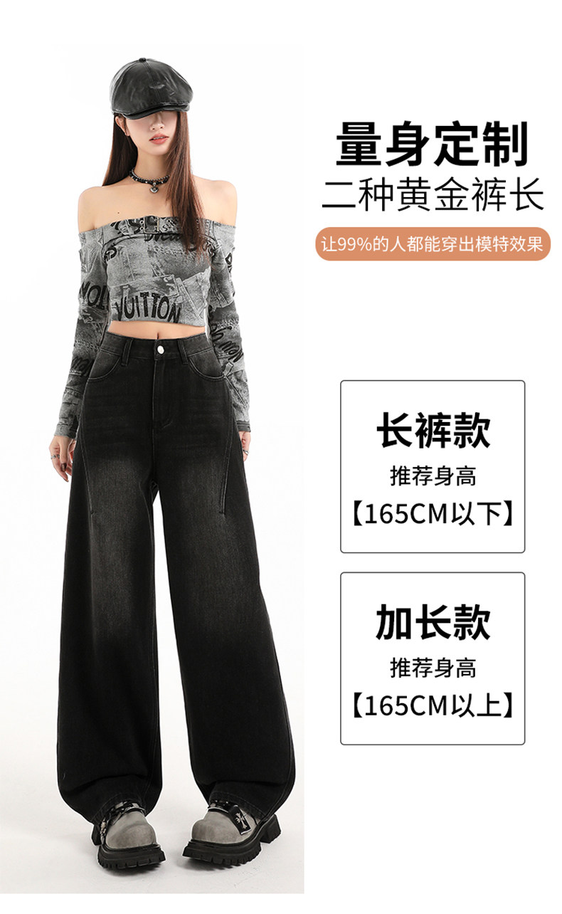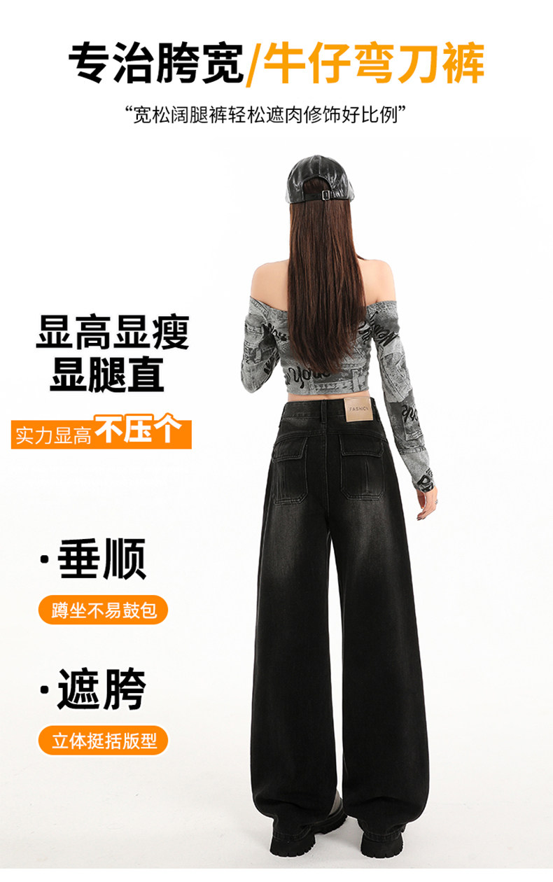 Minimalist Style Black High-Waisted Wide-Leg Jeans for Women, Loose Fit, Slimming Straight Cut, High-End Feel, Warm, Fleece-Lined, Thickened Pants