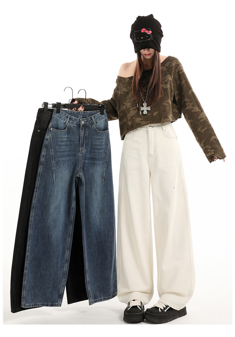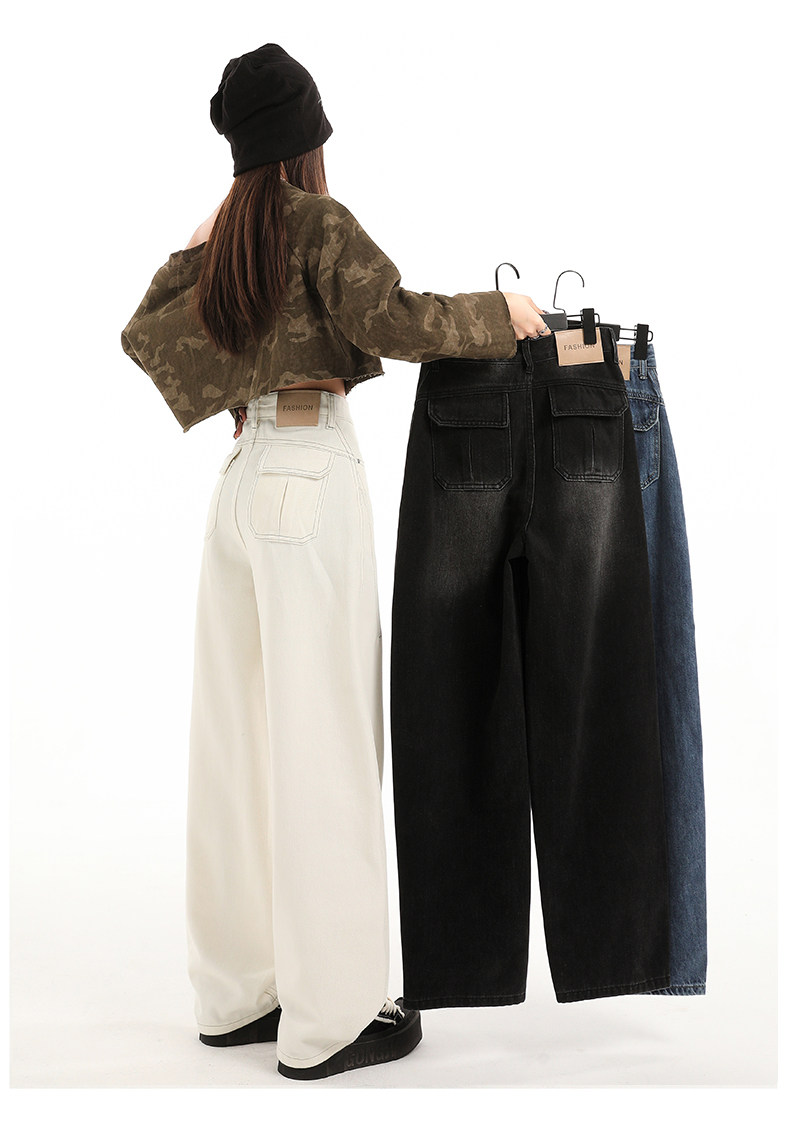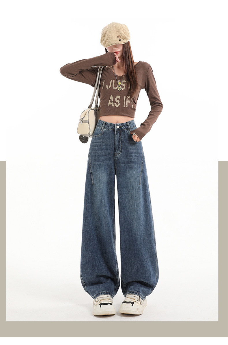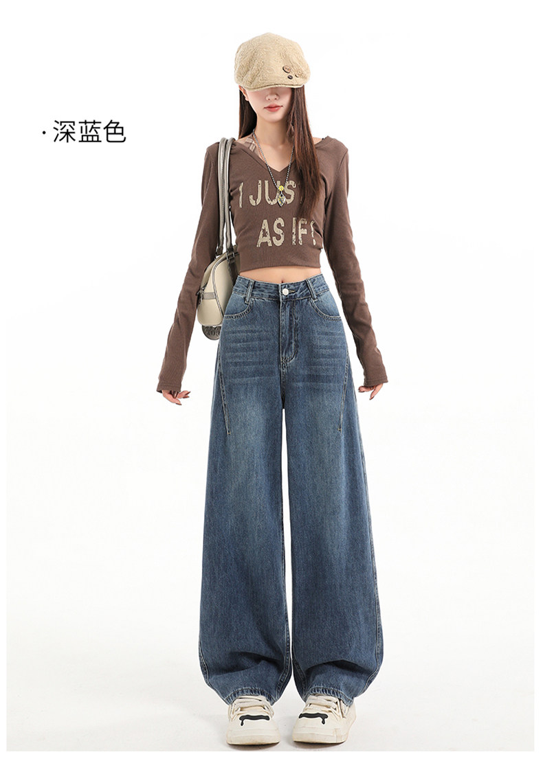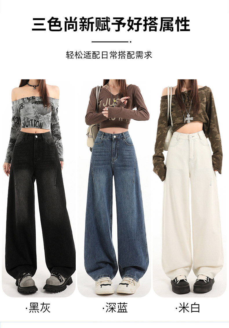 Minimalist Style Black High-Waisted Wide-Leg Jeans for Women, Loose Fit, Slimming Straight Cut, High-End Feel, Warm, Fleece-Lined, Thickened Pants