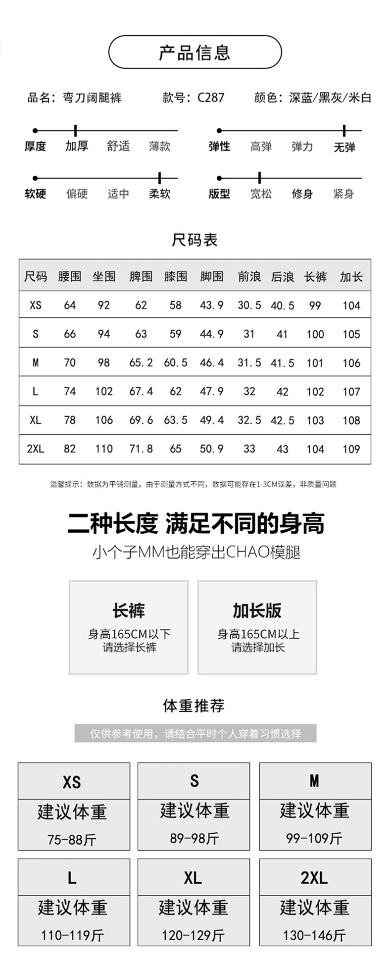 Color Classification Black and Gray Regular Trousers,Black and Gray Lengthened,Dark Blue Regular Trousers,Deep Blue, Extended Length,Off-White Regular Trousers,Off-White, Extended Length,Black and Gray Trousers with Fleece,Black and Gray, Extra-Long, Fleece-Lined.,Blue Trousers with Fleece,Deep Navy, Extra Long, Fleece-Lined,Off-White Trousers,Off-White, Extra-Long, Fleece-Lined.