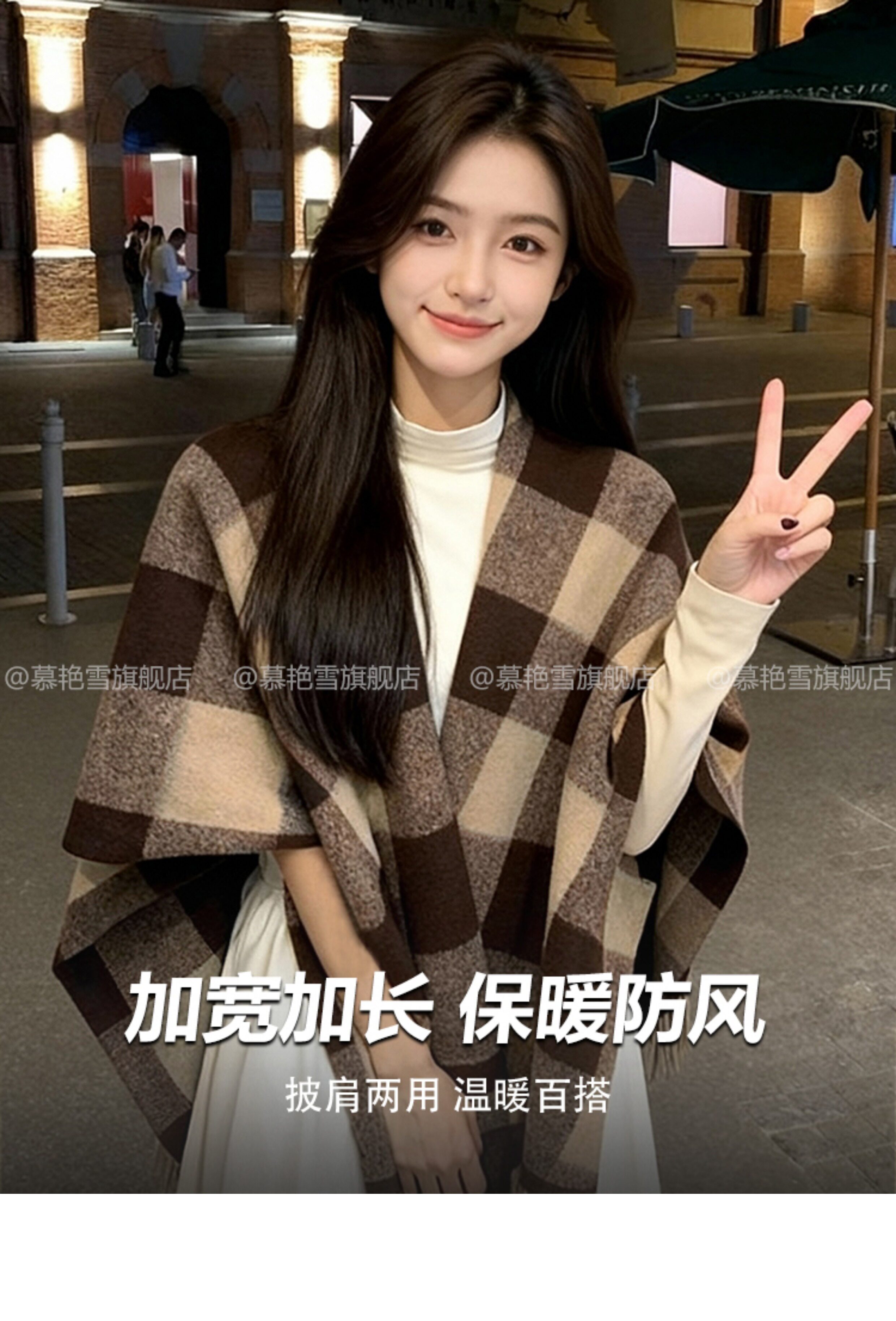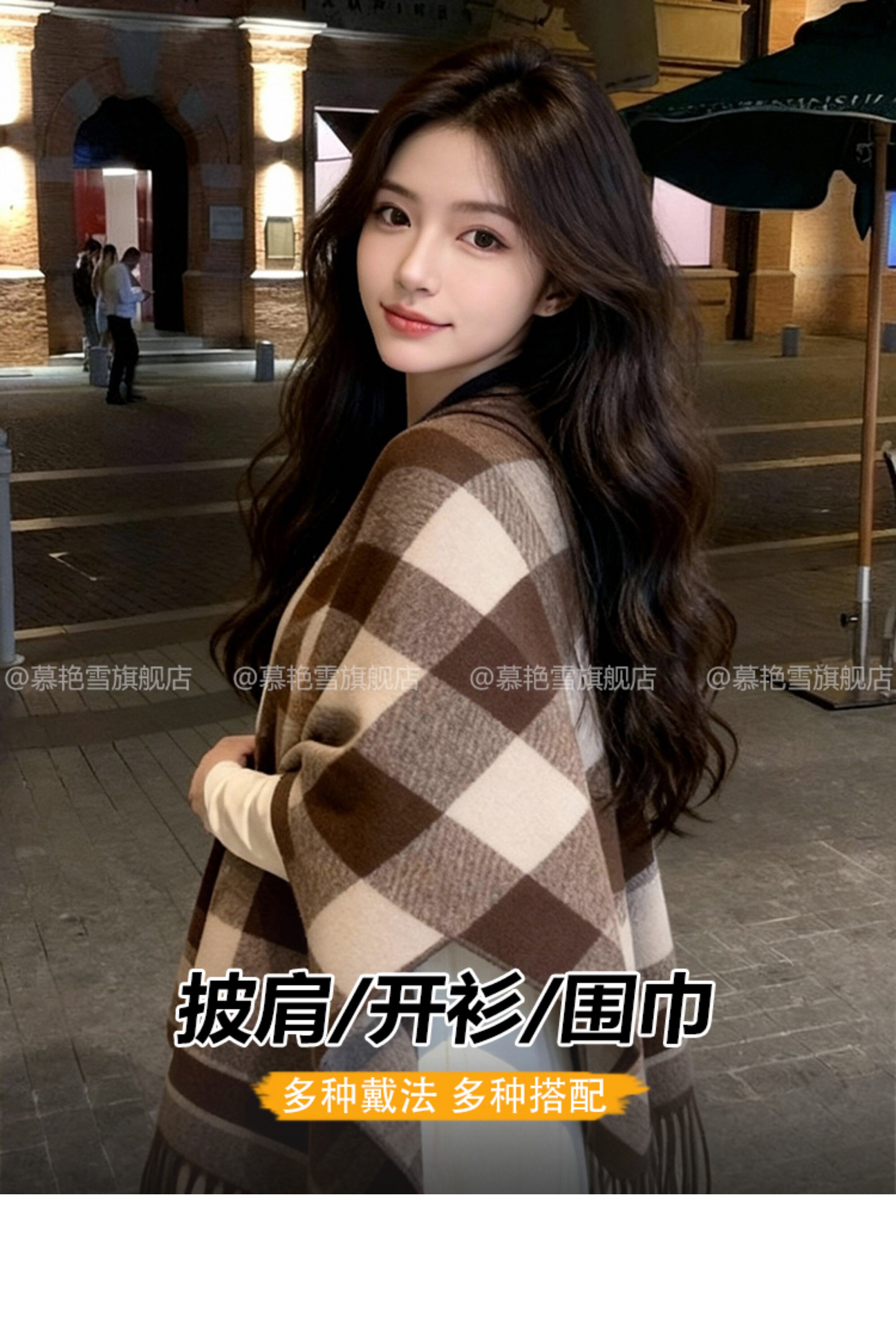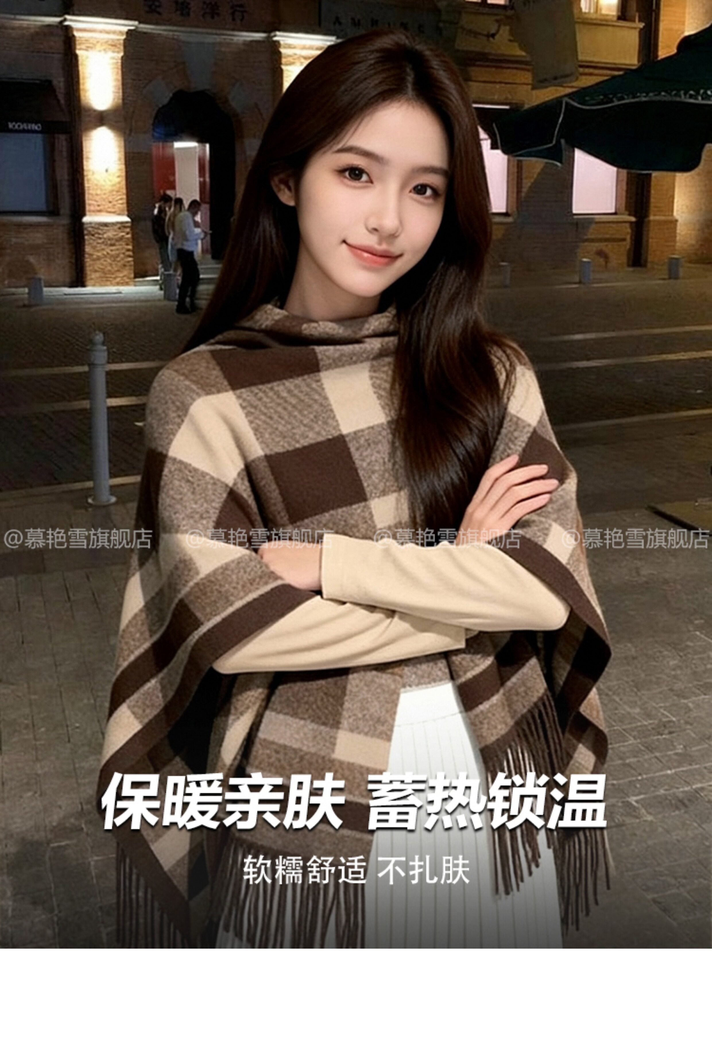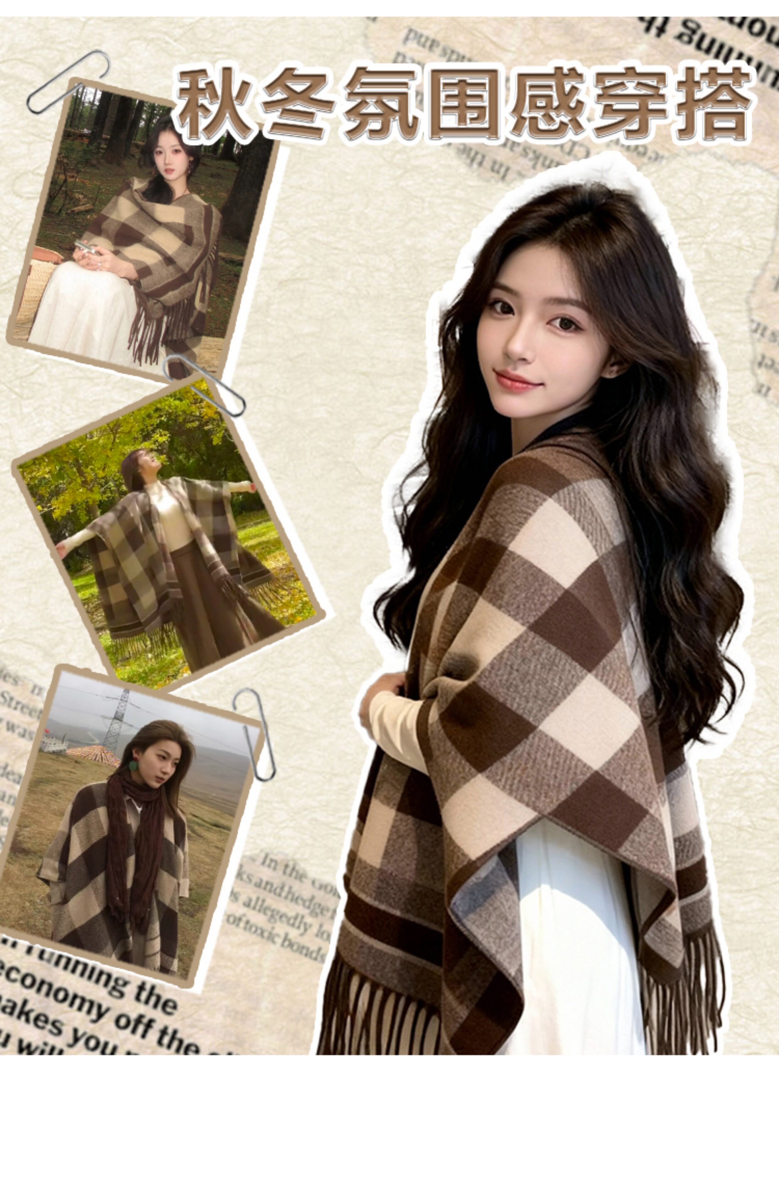 Melard Plaid Shawl for Women, Winter Thickened Warm High-End Faux Cashmere Scarf, Cape-Style Tassel Cardigan