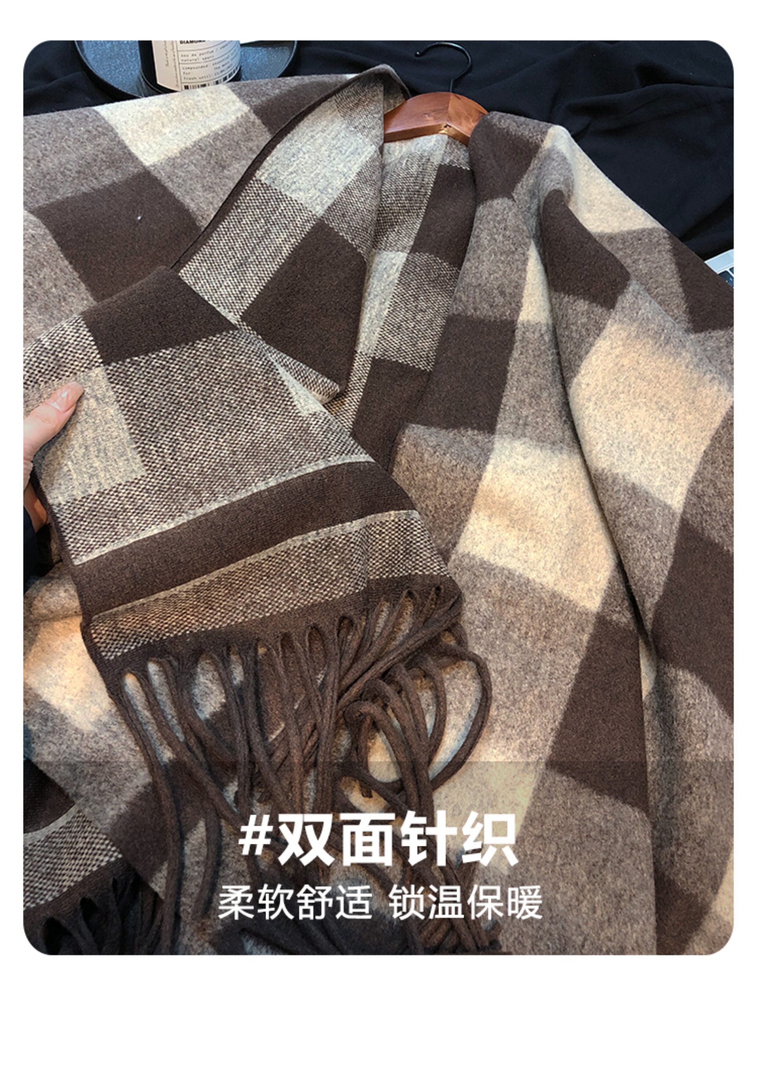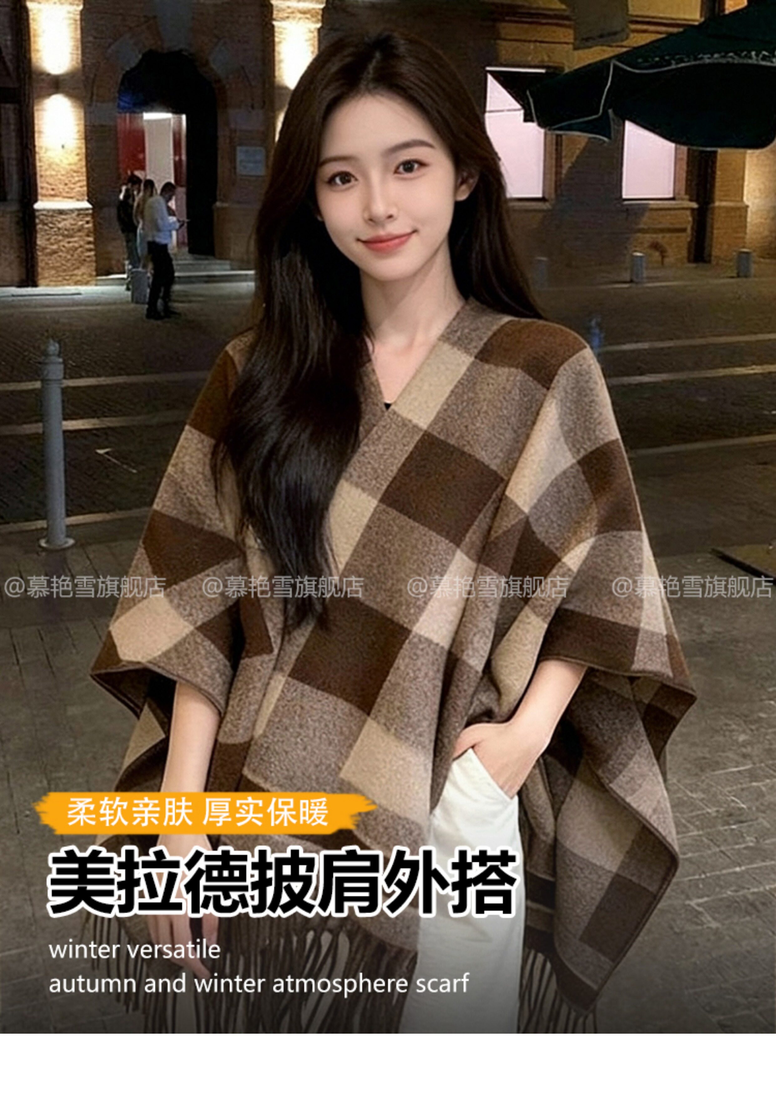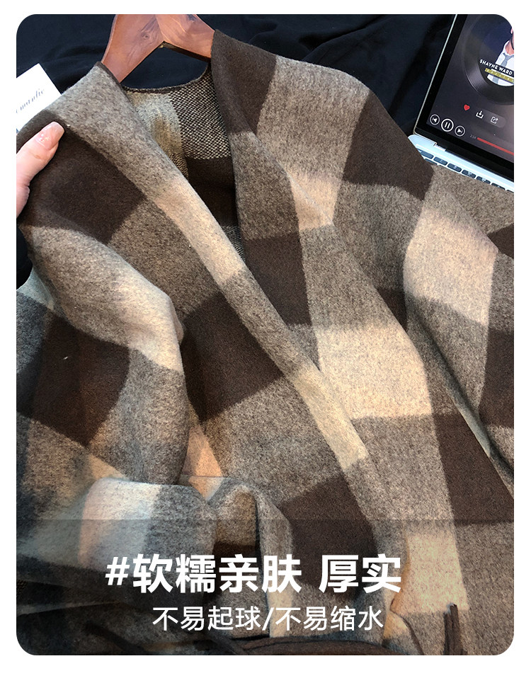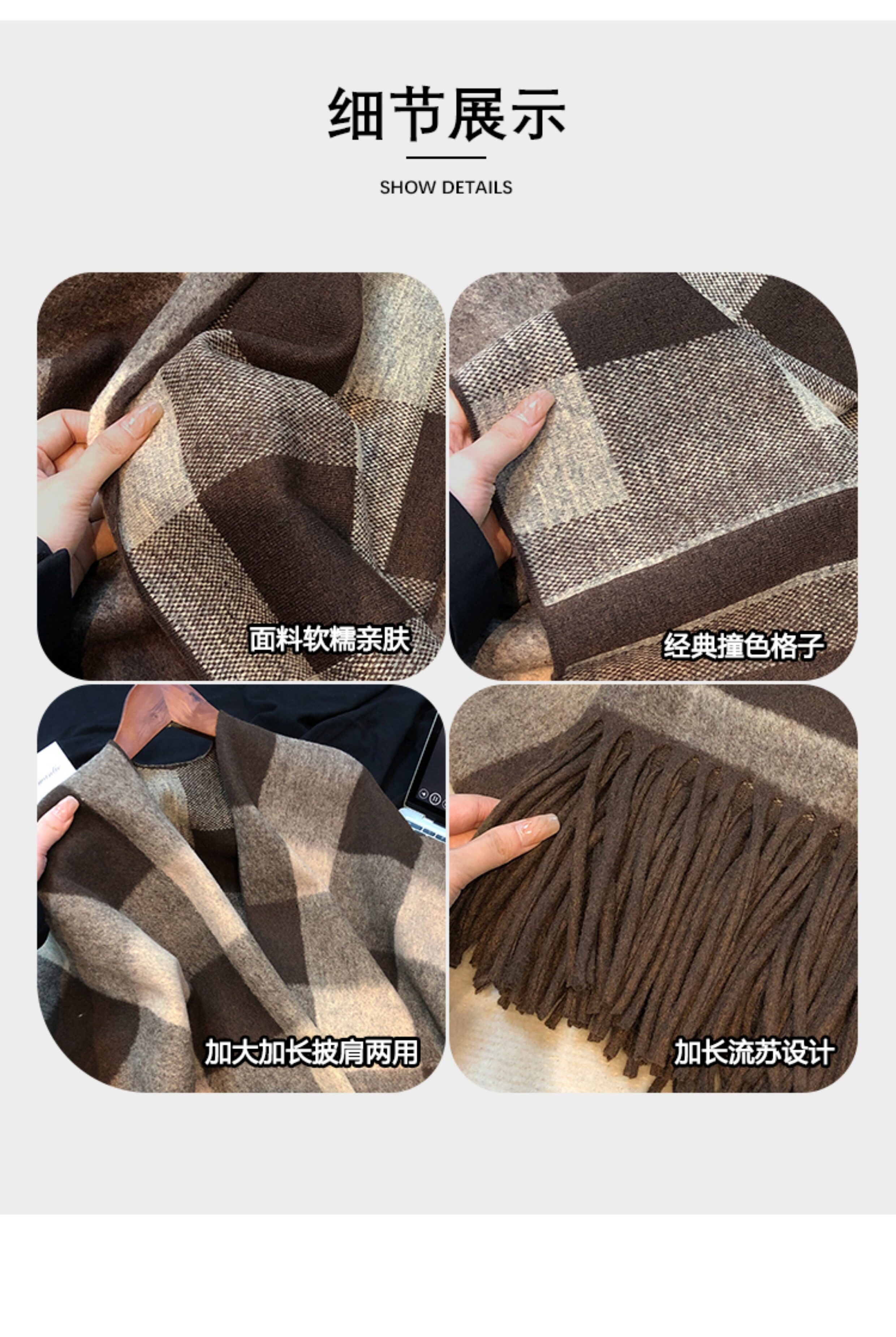Melard Plaid Shawl for Women, Winter Thickened Warm High-End Faux Cashmere Scarf, Cape-Style Tassel Cardigan