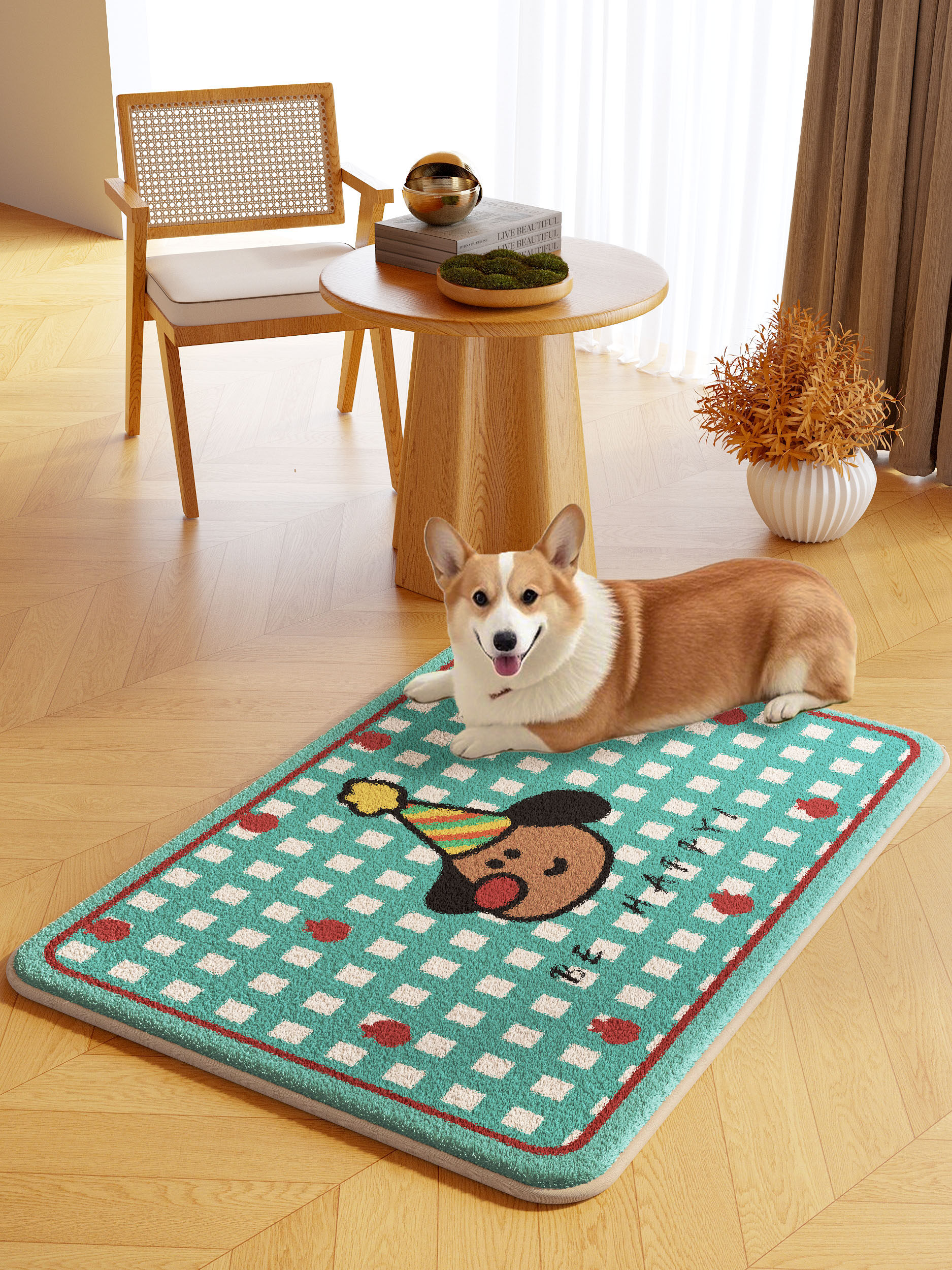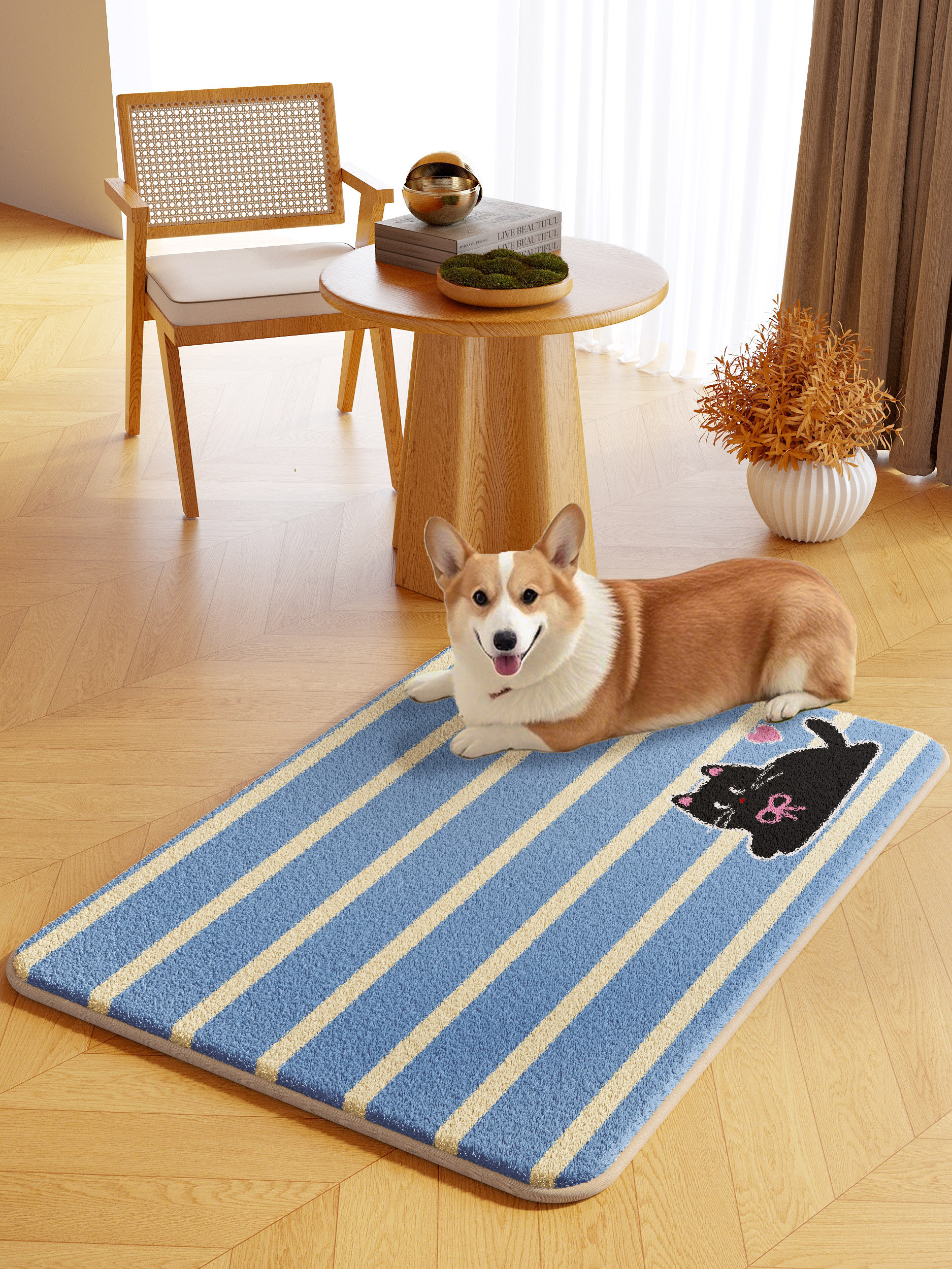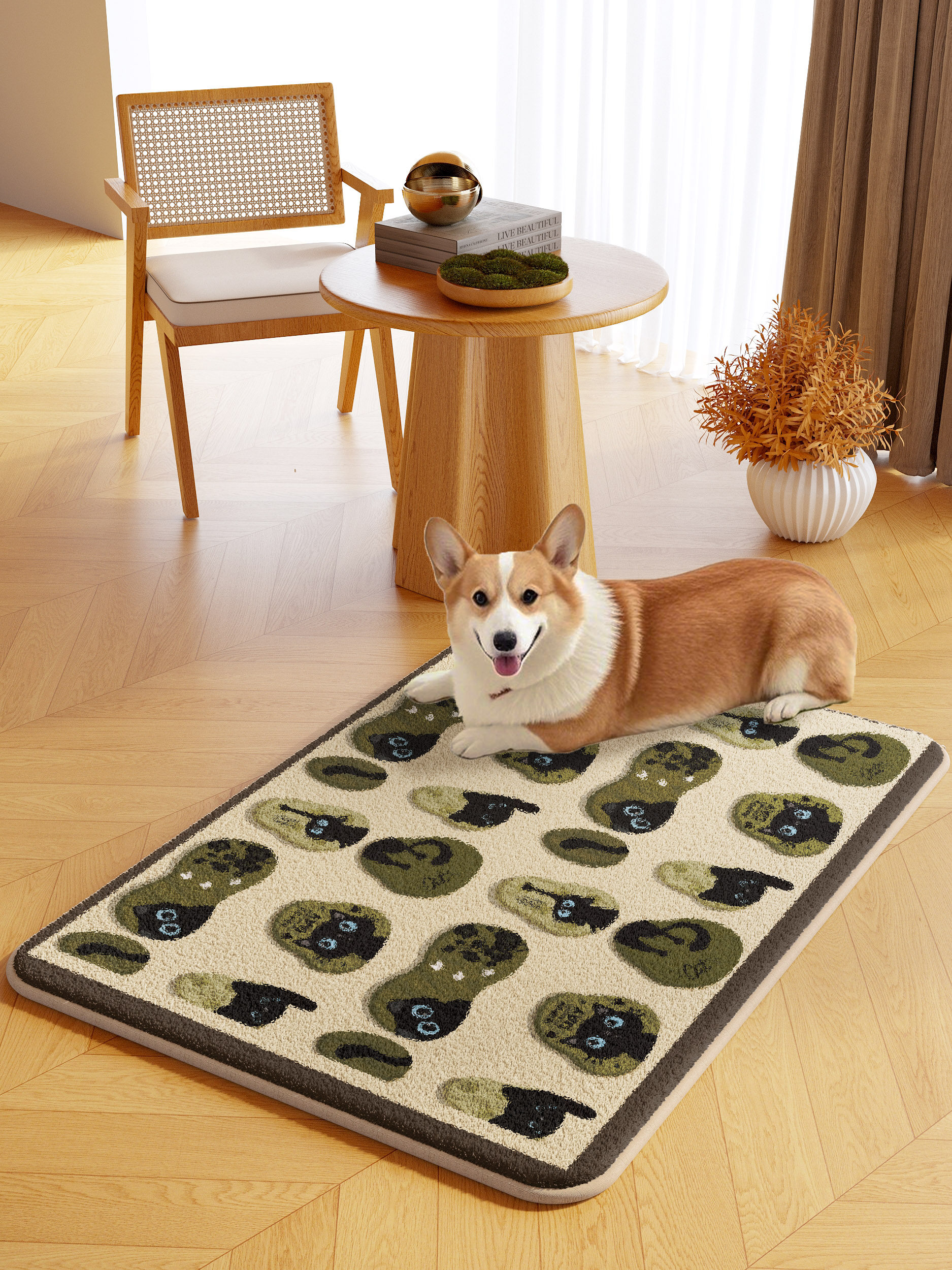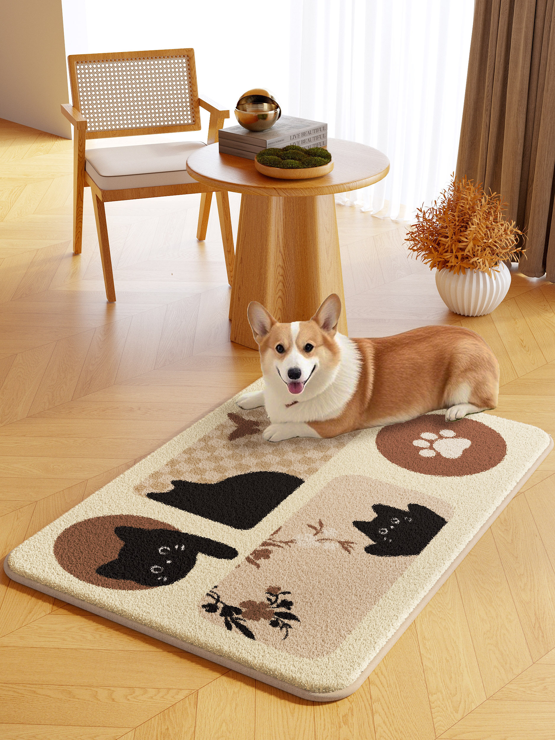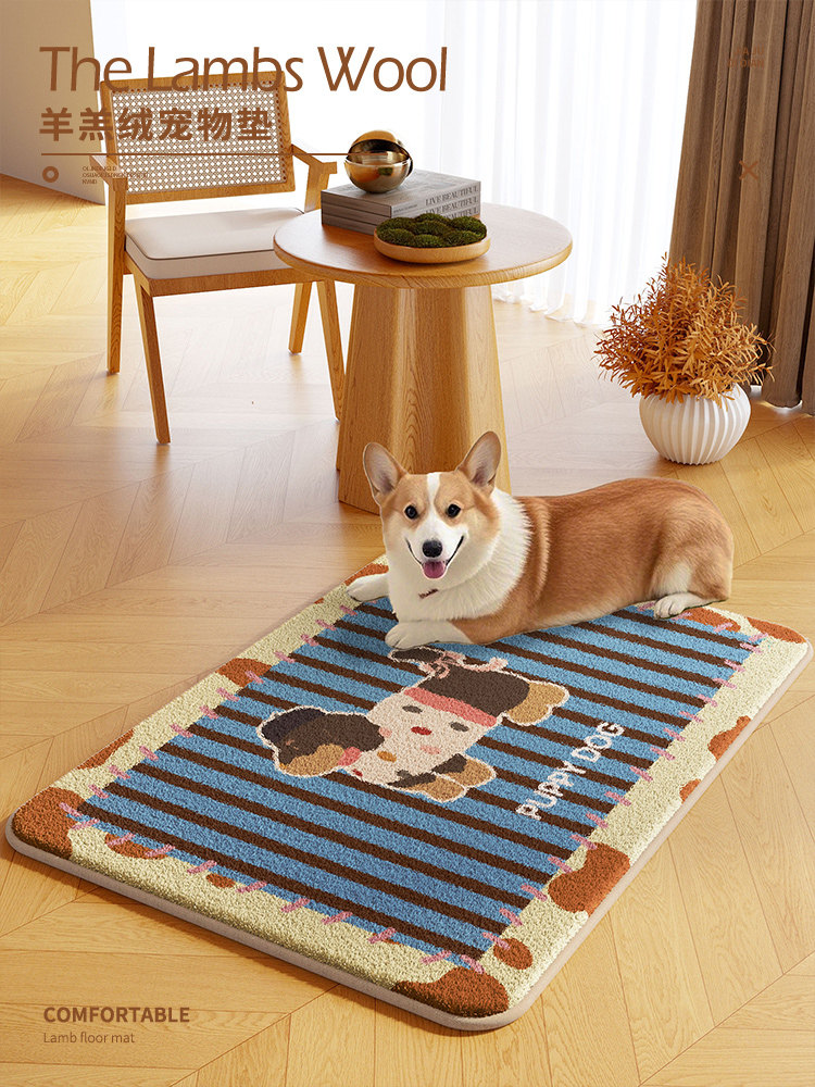 Cartoon pet floor mat machine washable autumn and winter plush warm carpet dog and kitten eating thickened non-slip mat