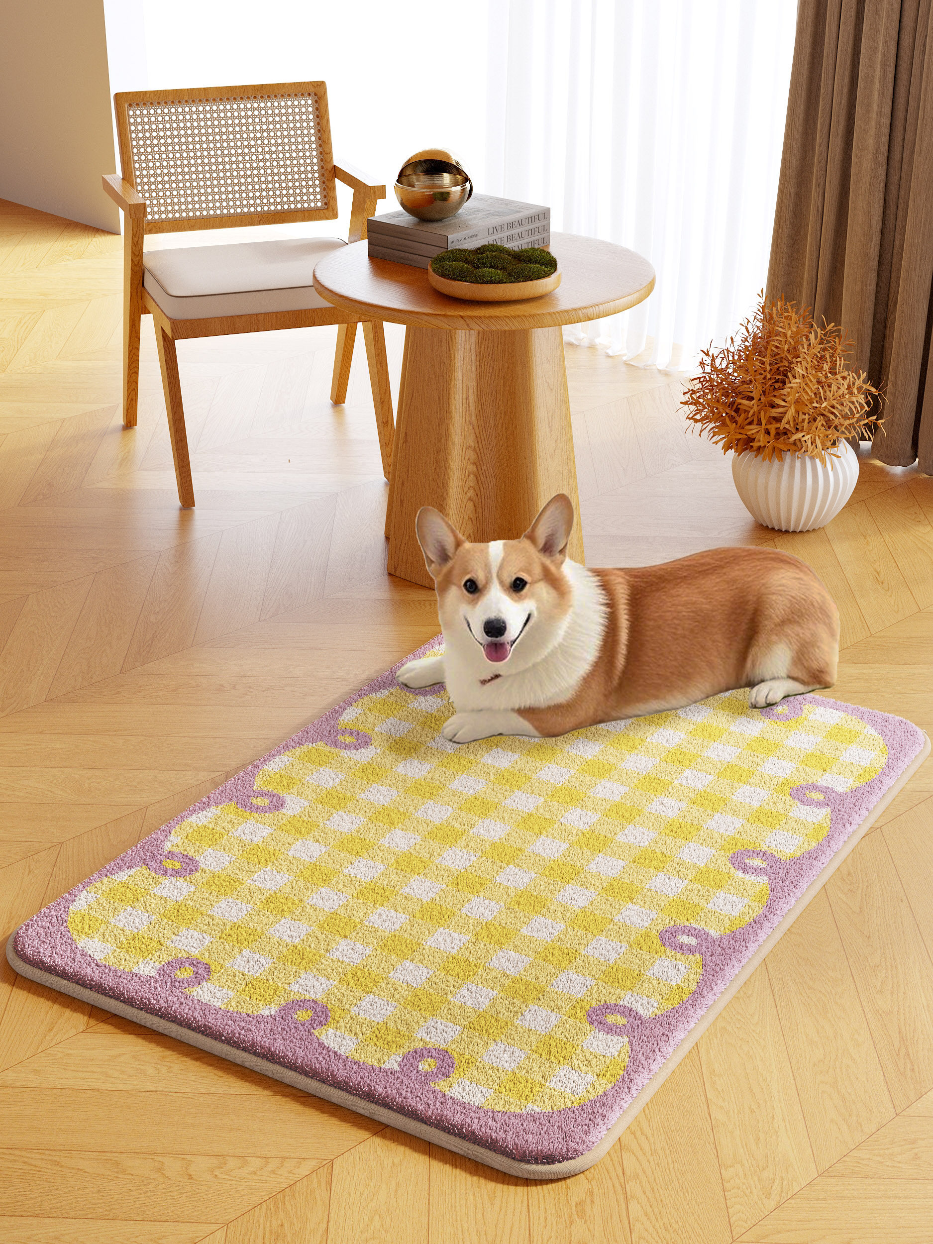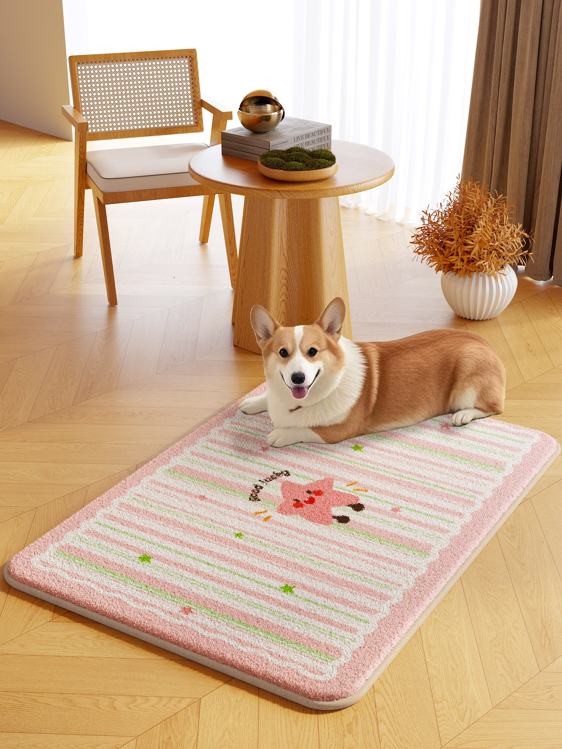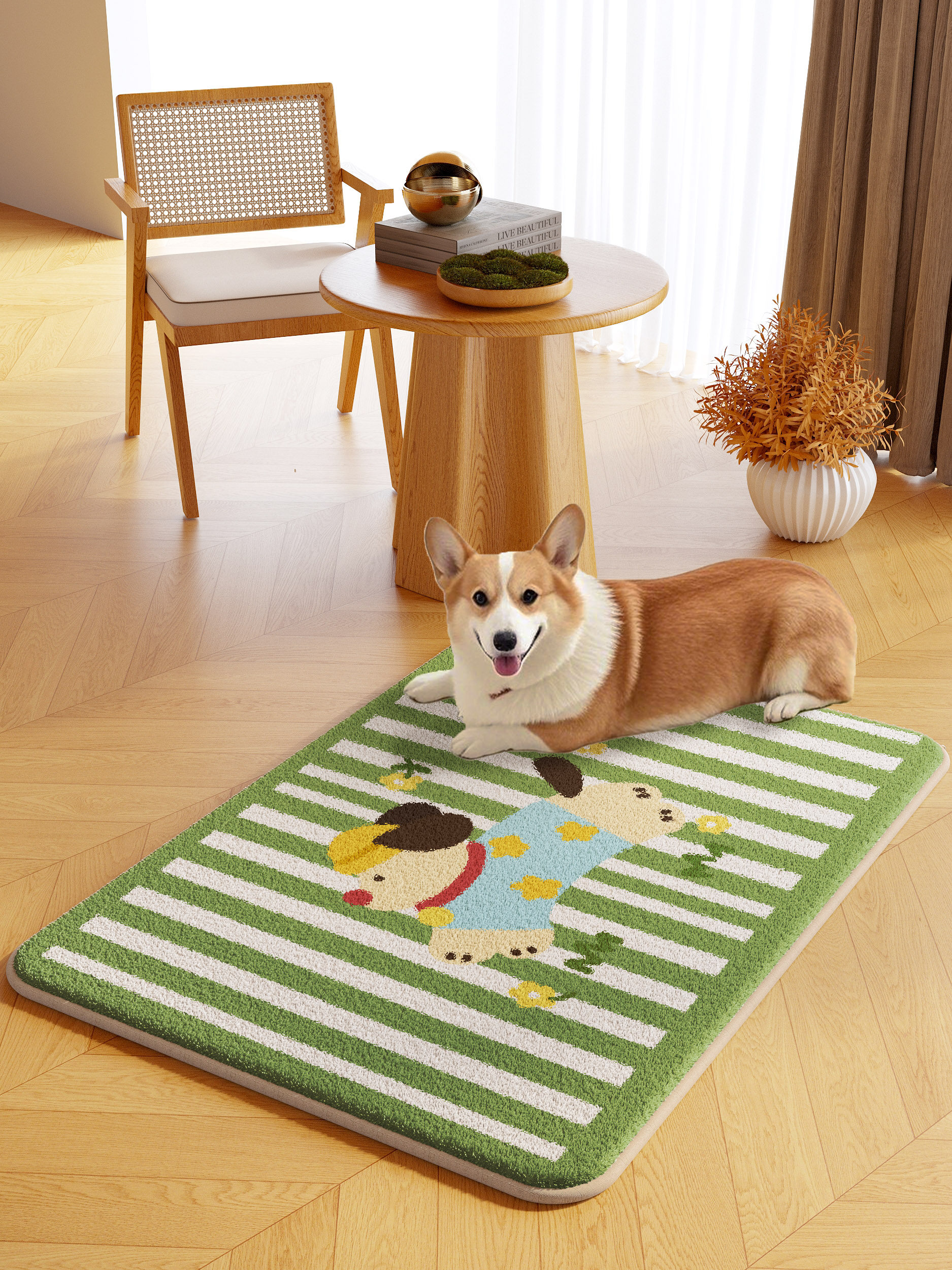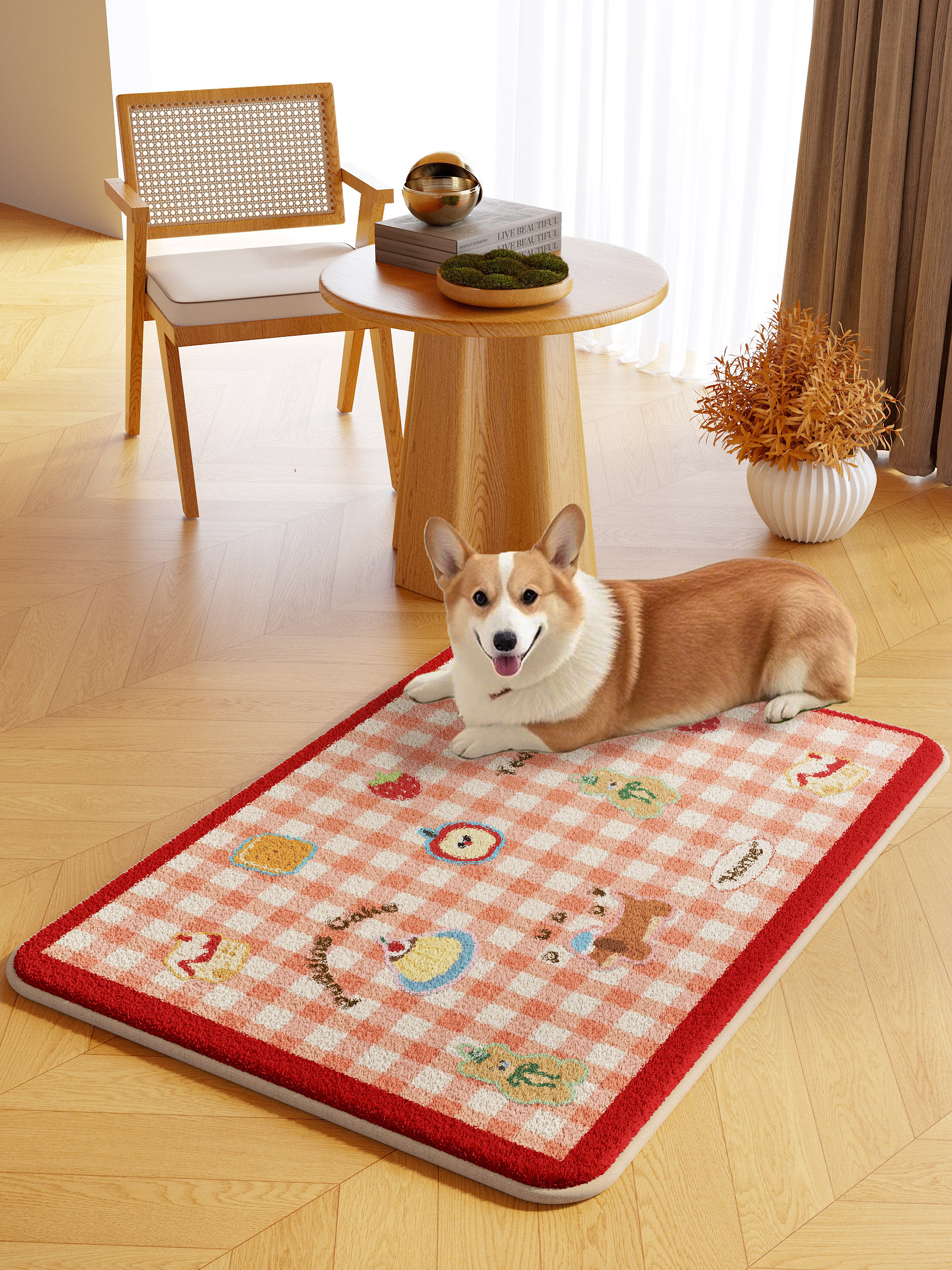 Cartoon pet floor mat machine washable autumn and winter plush warm carpet dog and kitten eating thickened non-slip mat