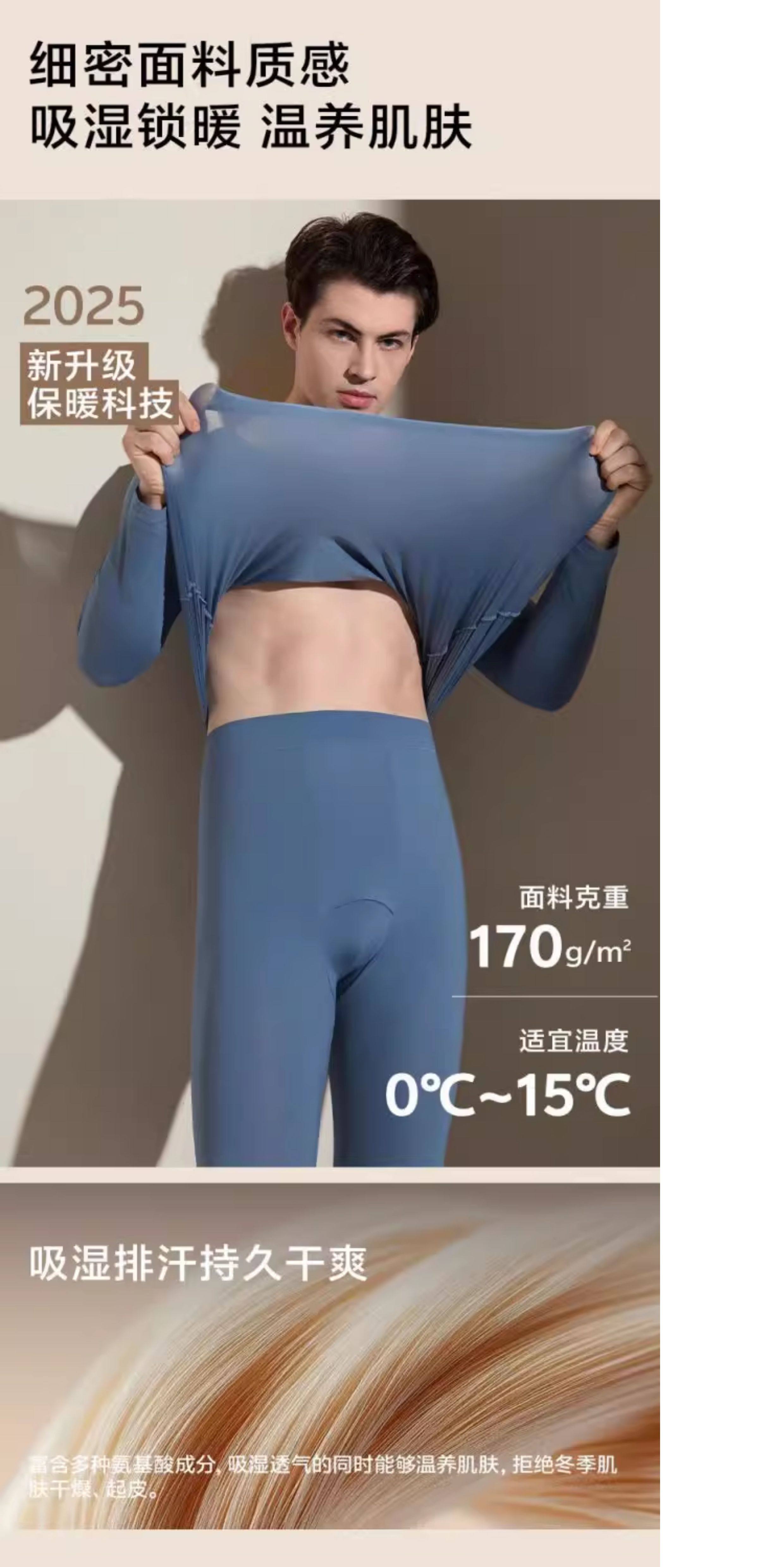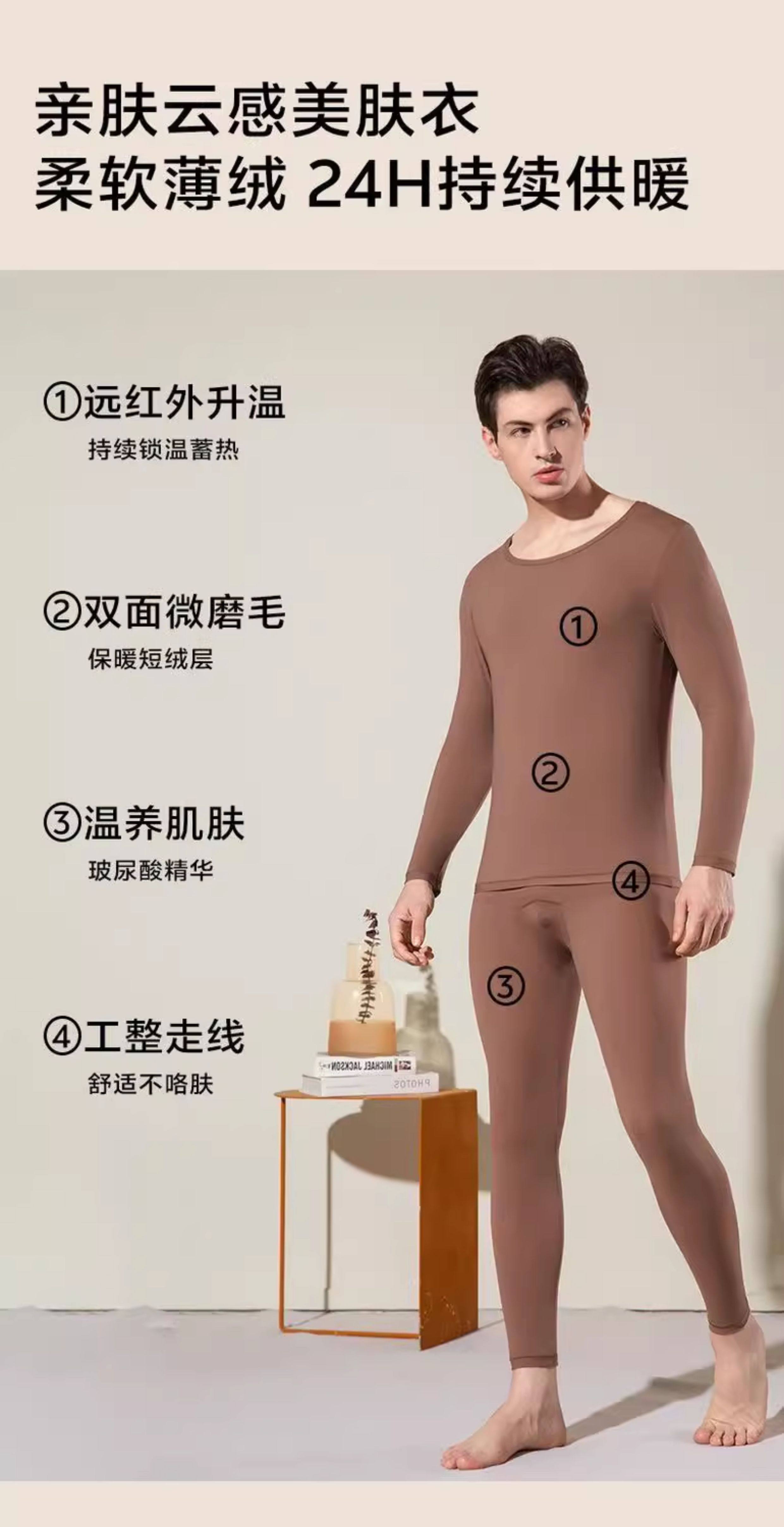 Beijiaofen boys' thermal underwear ultra-thin and ultra-light hyaluronic acid moisturizing underwear men's slim inner base set