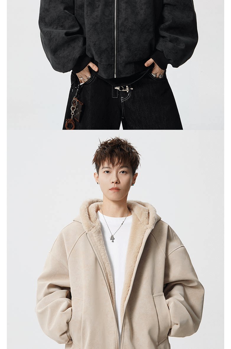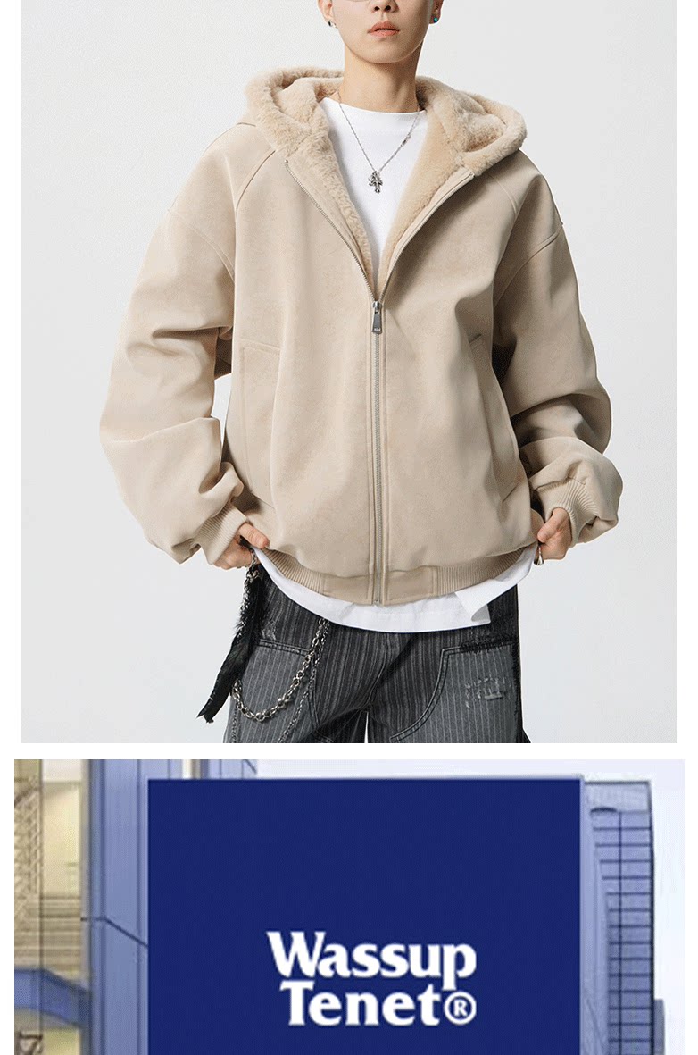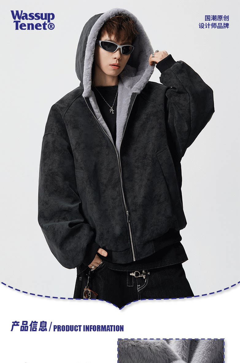 Wassup Tenet American-Style Faux Rabbit Fur Cotton Jacket for Men, Winter Trendy Brand, Fleece-Lined, Thickened, Warm, Hooded Cotton Coat