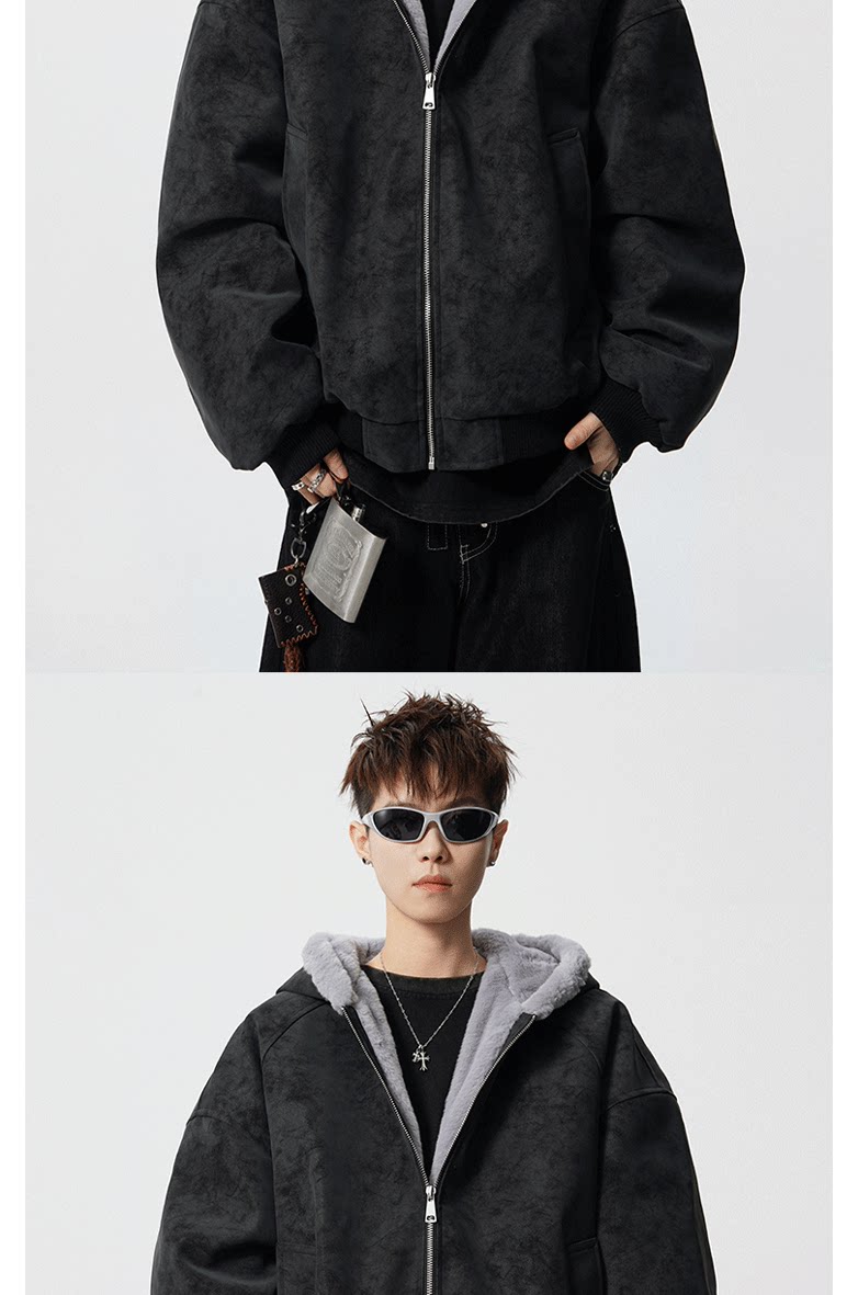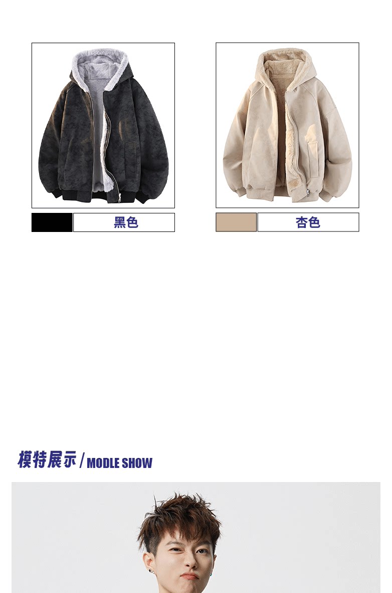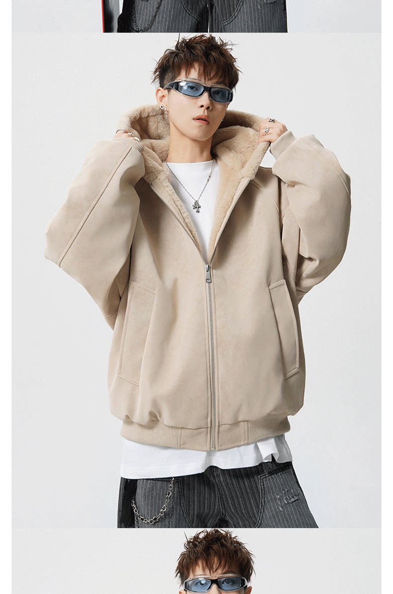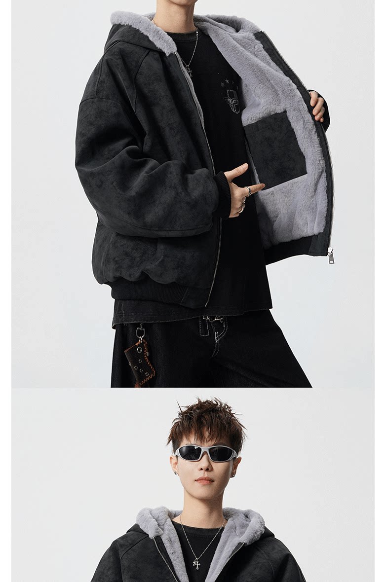 Wassup Tenet American-Style Faux Rabbit Fur Cotton Jacket for Men, Winter Trendy Brand, Fleece-Lined, Thickened, Warm, Hooded Cotton Coat