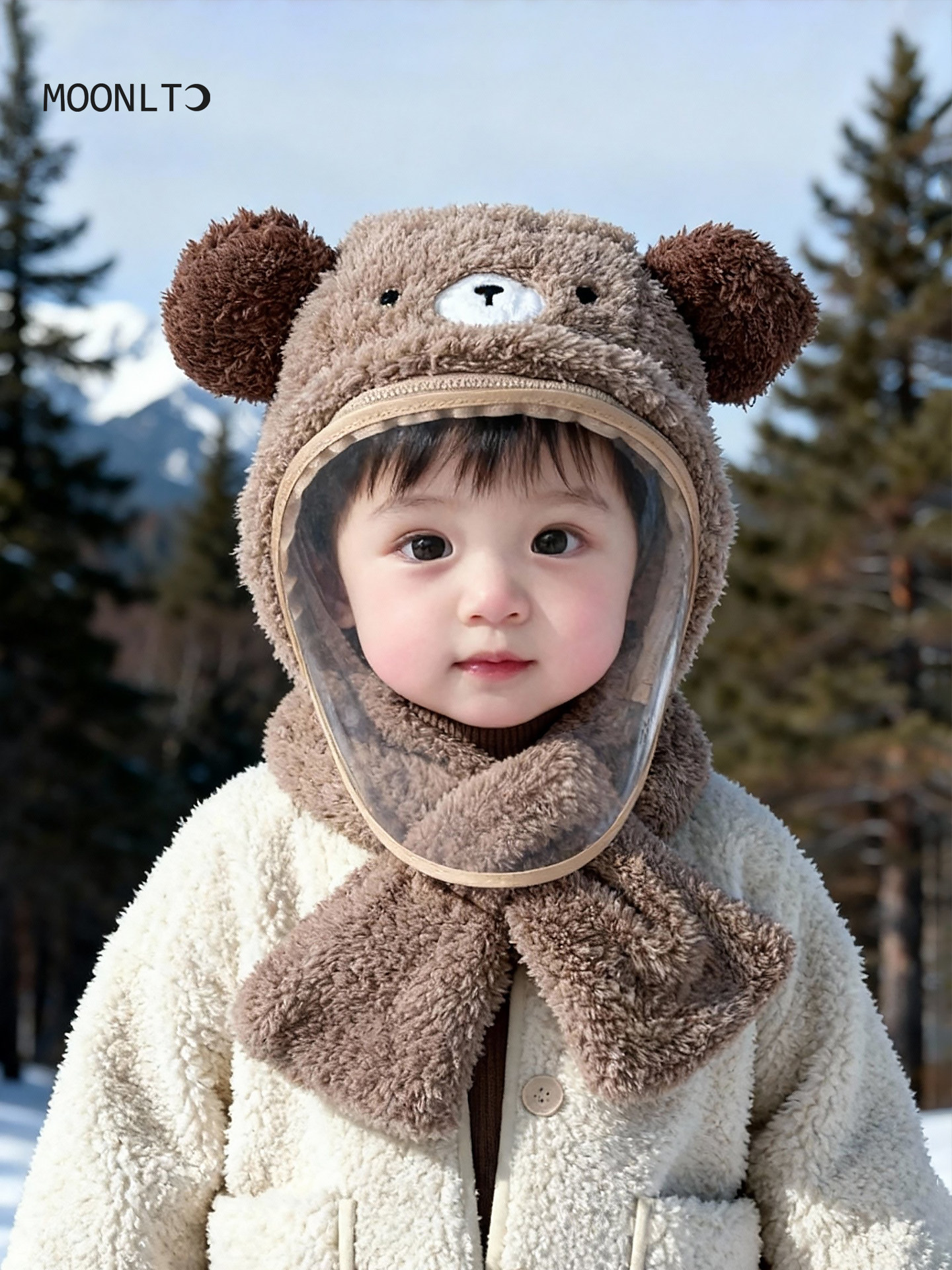 Baby hat winter outdoor warm cycling for men and women, children's ear protection hat, windproof mask, baby scarf all in one