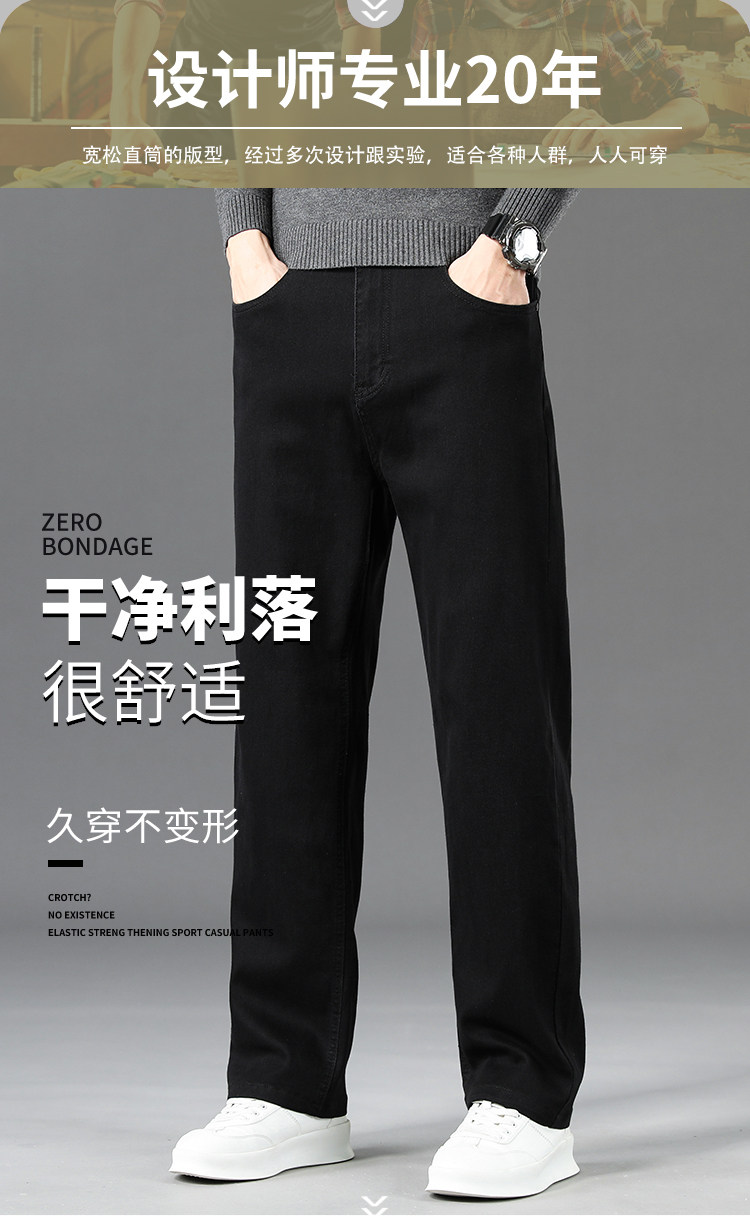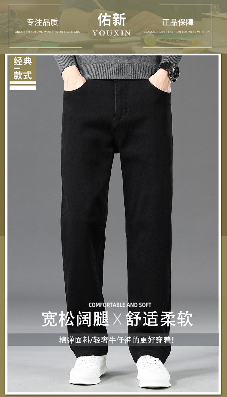 Guangzhou Xintang High-End Black Jeans for Men 2026 New Spring and Autumn Style Loose Straight Elastic Pants for Men
