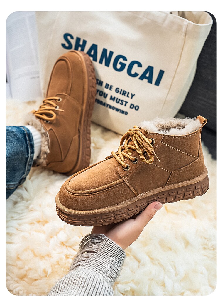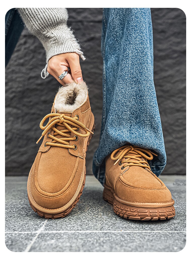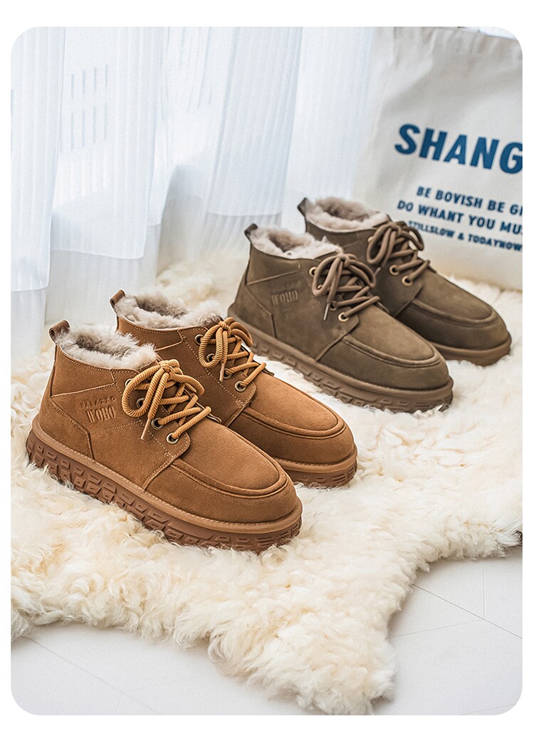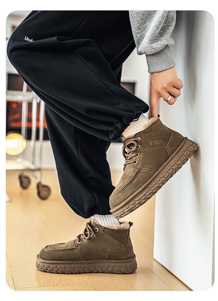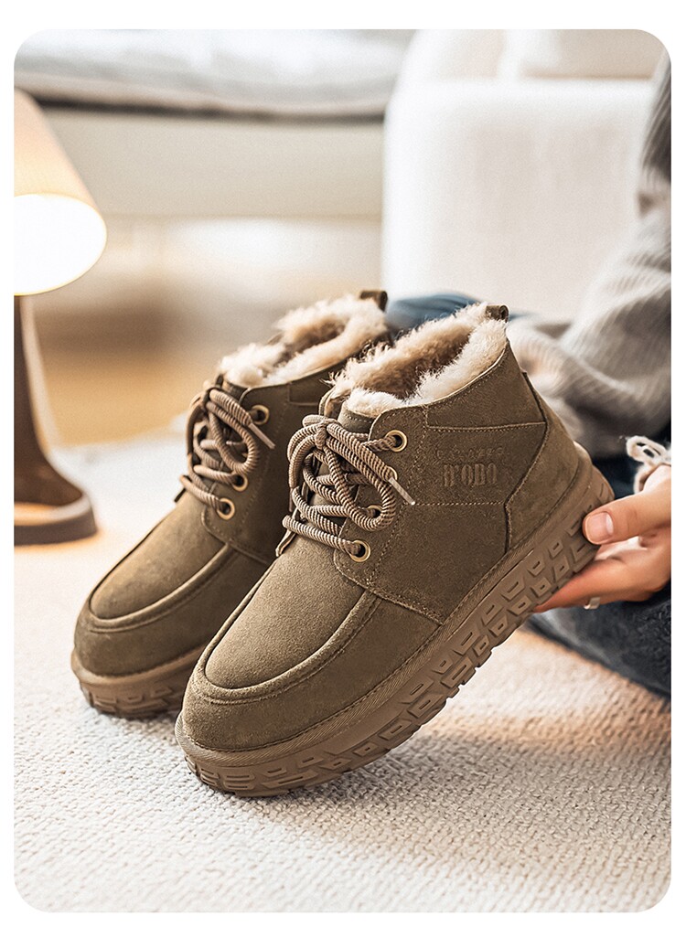 Men's Wool Snow Boots, Cold-Resistant and Warm, Outdoor Non-Slip Cotton Boots, Genuine Leather, Winter Fleece-Lined and Thickened, Northeast-Style Large Cotton Shoes