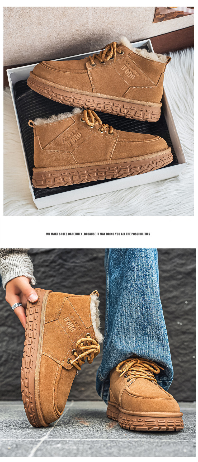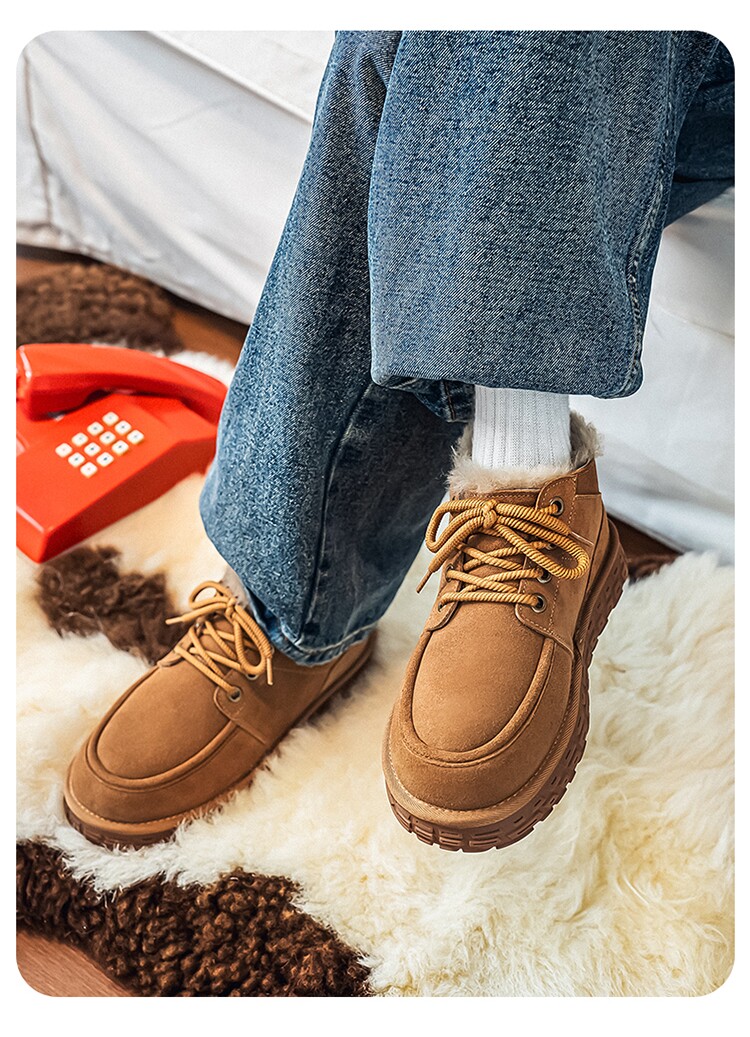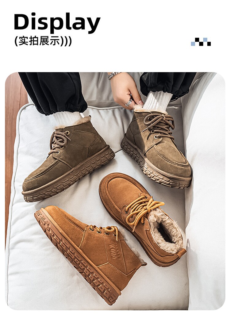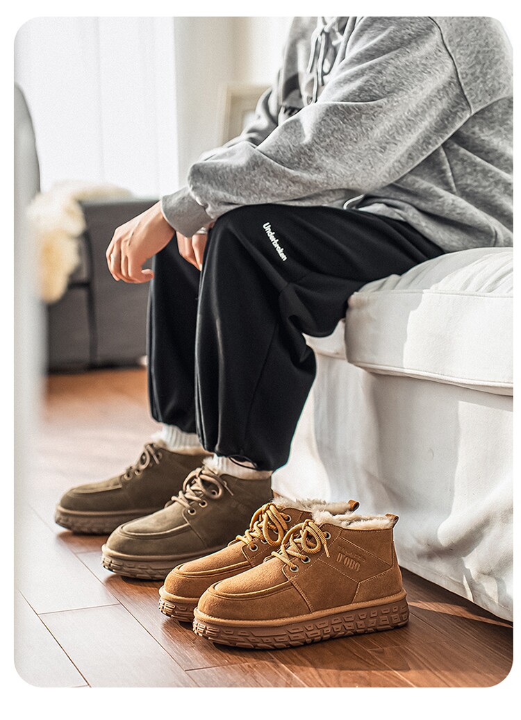 Men's Wool Snow Boots, Cold-Resistant and Warm, Outdoor Non-Slip Cotton Boots, Genuine Leather, Winter Fleece-Lined and Thickened, Northeast-Style Large Cotton Shoes