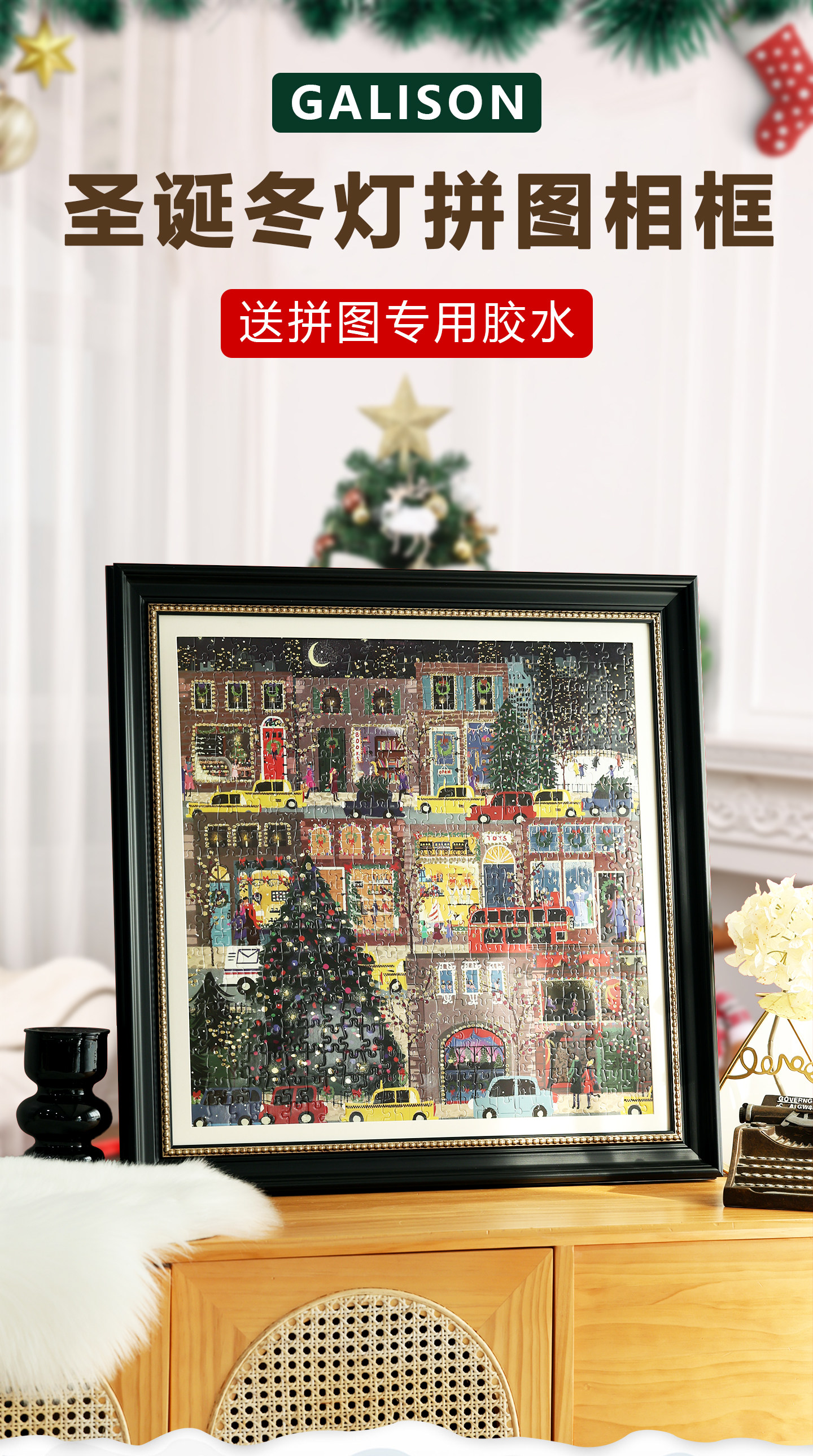 Galison Winter Lights Christmas Puzzle Frame Square Picture Frame Empty Frame 500 Pieces 1000 Pieces Puzzle Frame 70