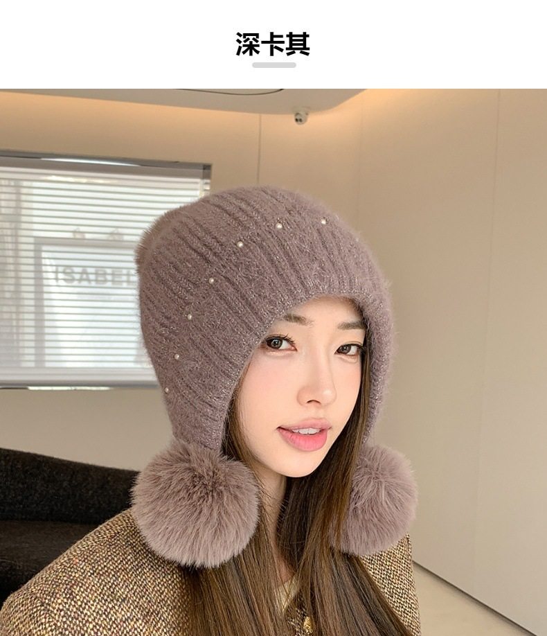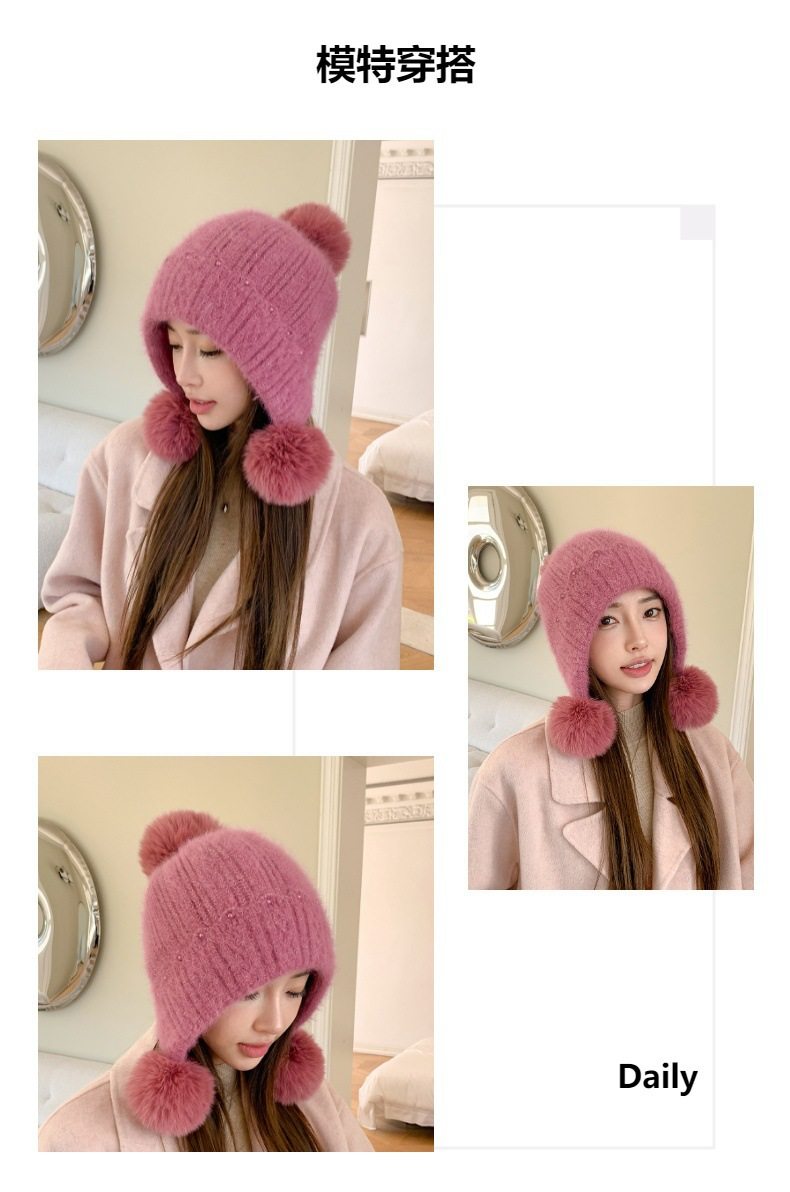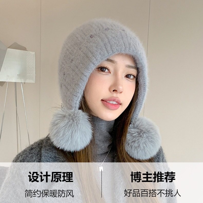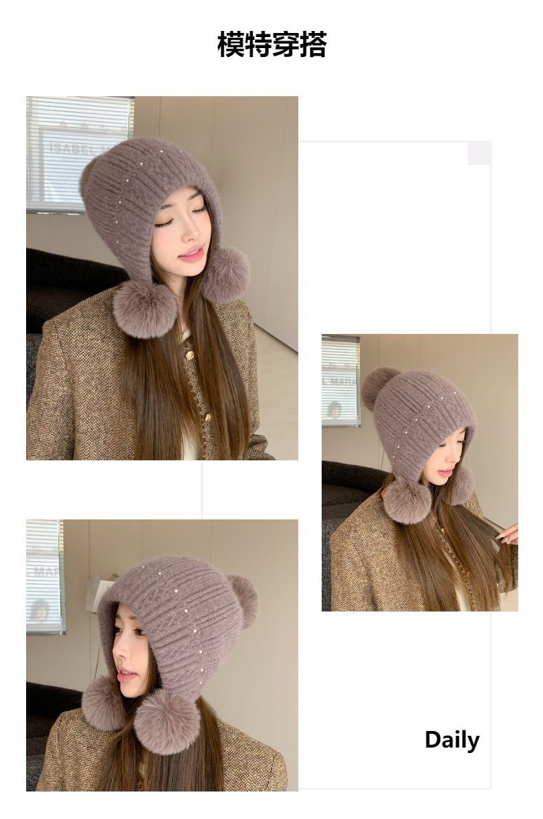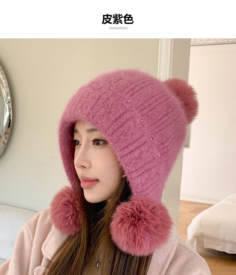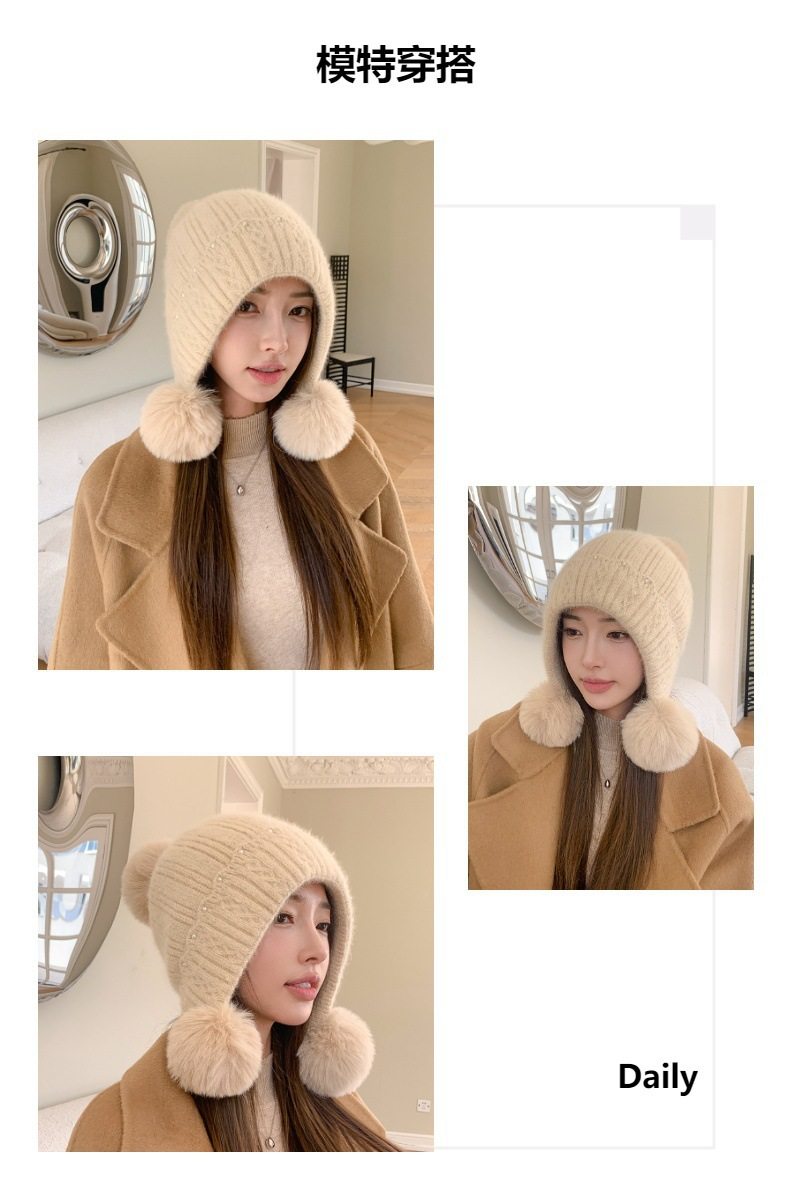 Fur Ball Hat Northeast Harbin Cold-Proof Gear Ear Protection Warm Fleece Cute Women's Mom Hat Headwrap Hat Autumn and Winter