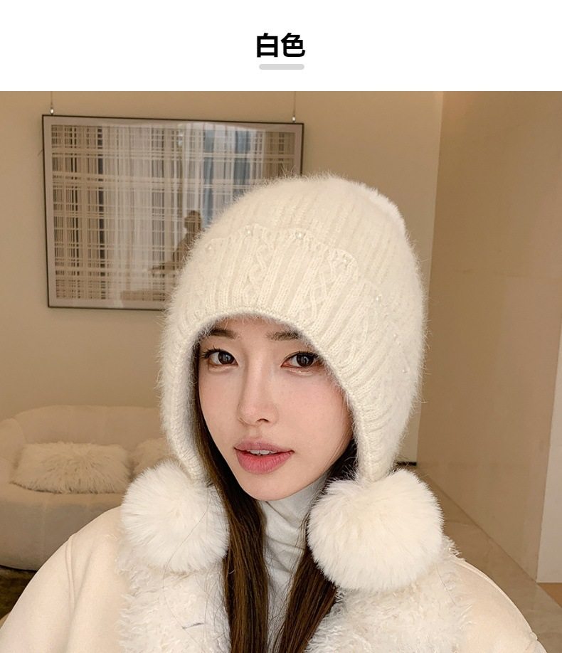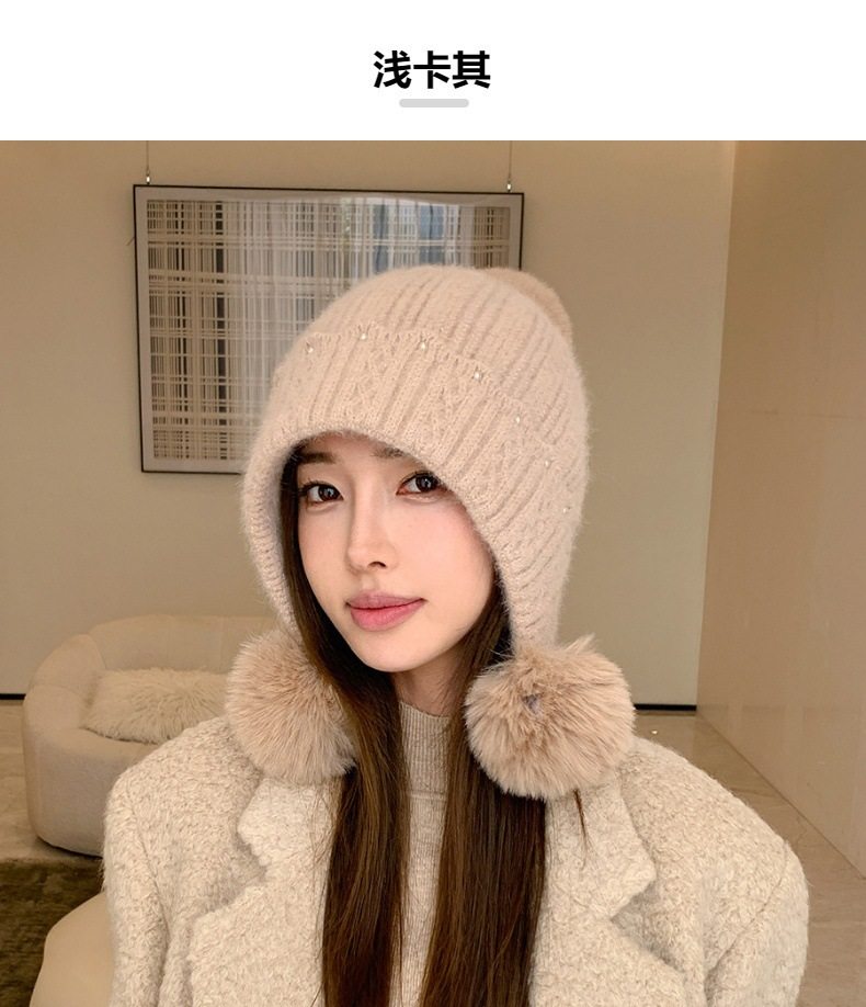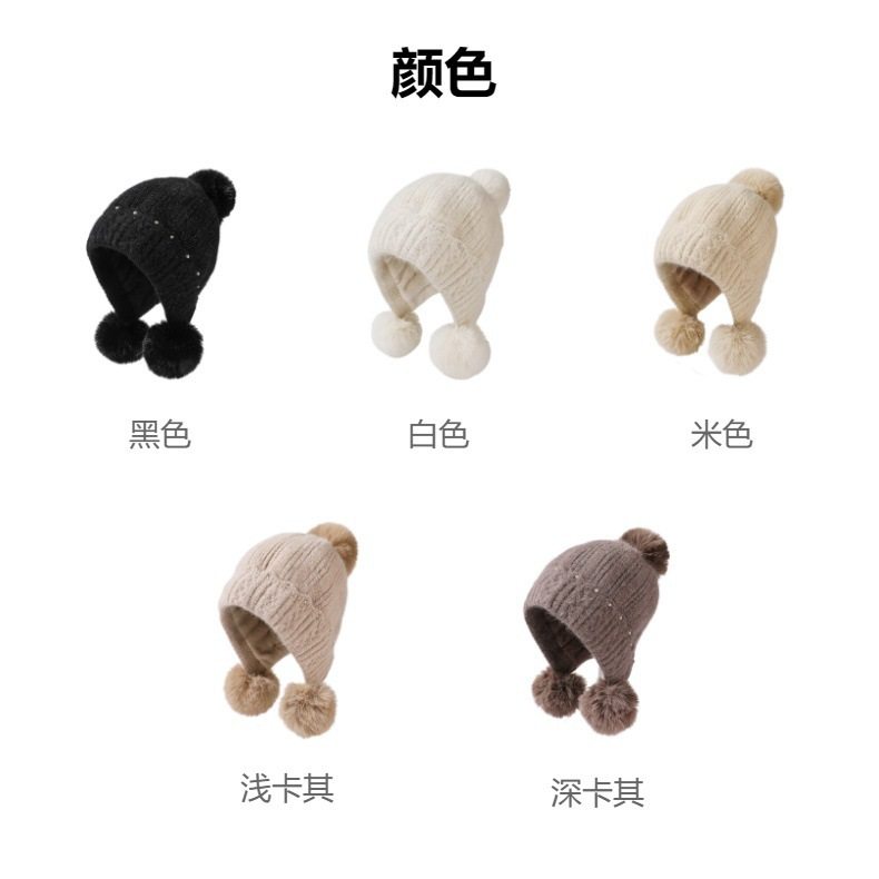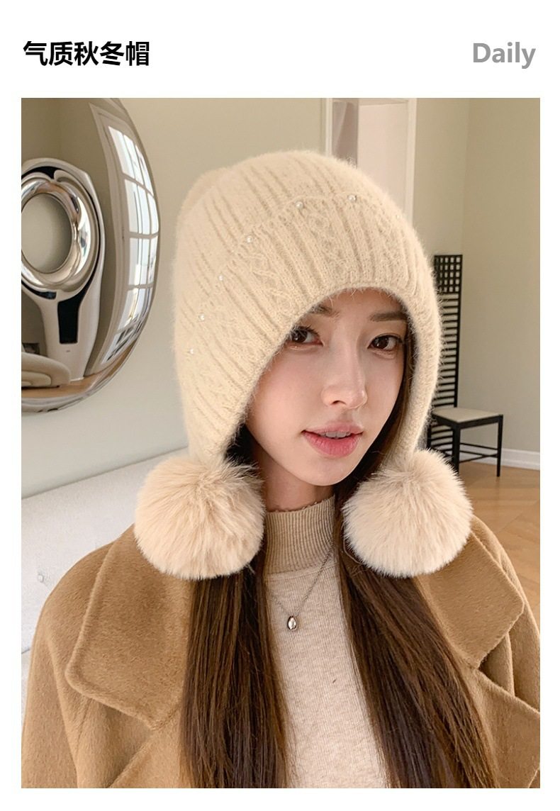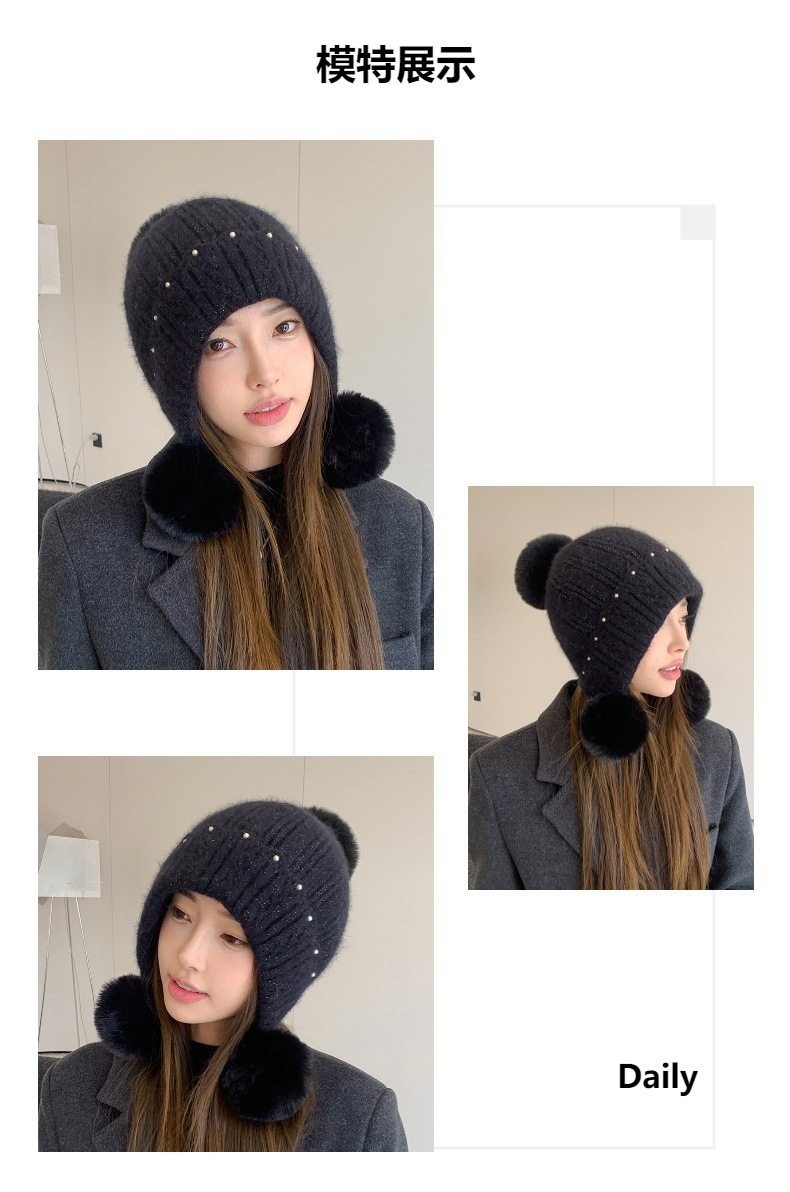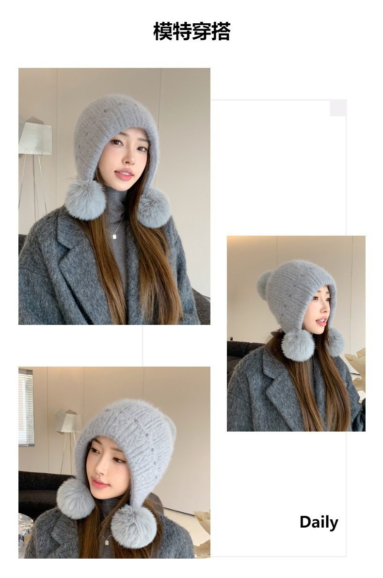 Fur Ball Hat Northeast Harbin Cold-Proof Gear Ear Protection Warm Fleece Cute Women's Mom Hat Headwrap Hat Autumn and Winter