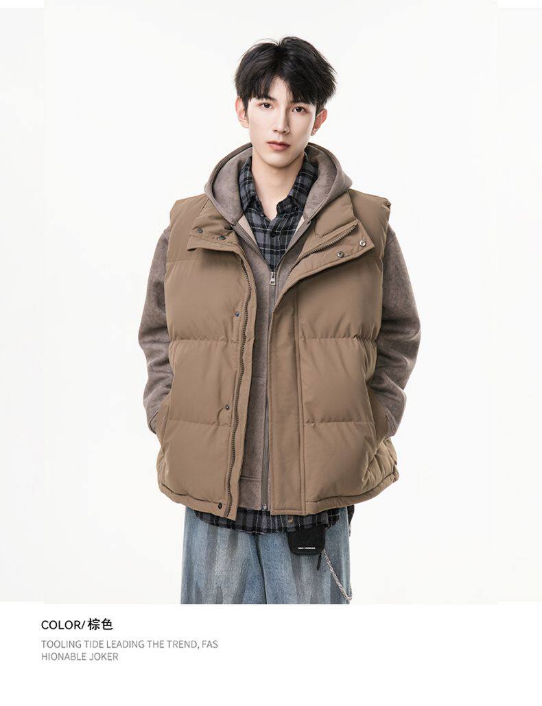 Down cotton work vest men's autumn and winter 2025 new trendy brand loose sleeveless outer vest vest jacket